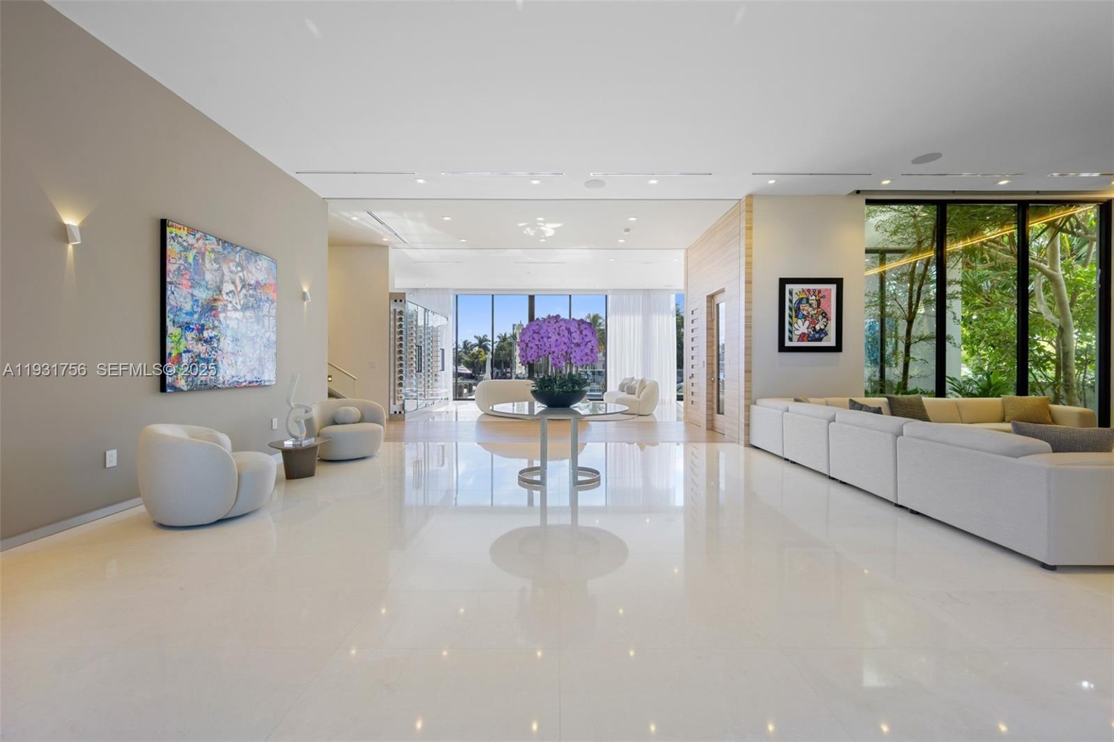 Introducing a rare ultra-luxury waterfront home within the gated Eastern Shores community. This fully furnished Artefacto-designed property offers four bedrooms and four and a half bathrooms, plus maid’s quarters with a full bathroom, across approximately 5, 500 SF of refined modern living space. Dramatic 14-foot ceilings, elegant marble flooring, and private elevator access define the residence, enhanced by a glass-enclosed wine display and custom bar. The home is equipped with advanced smart home technology and a whole-home SONOS audio system for seamless living and entertainment. The primary suite is a private haven, featuring a spa-style bathroom, outdoor sauna, and private balcony. Thoughtfully designed bathrooms include premium smart toilets throughout. Designed for effortless indoor-outdoor living, the property showcases a rooftop terrace with sweeping water views, a resort-style pool, and a fully equipped summer kitchen ideal for entertaining. An 80-foot private dock provides direct access to the Intracoastal and Atlantic Ocean. Offered turnkey and impeccably furnished, this is an exceptional opportunity to experience elevated waterfront living.
