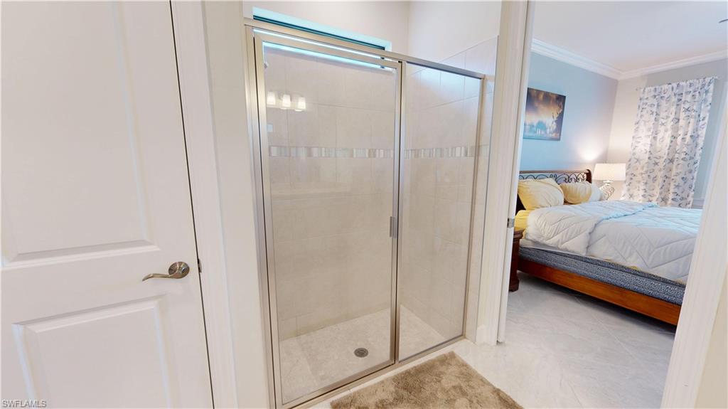 Del Webb Naples, Exceptionally Optioned “Stardom” Model Estate/Echelon Series Home w/Heated Custom Pool & Spa, Impact Windows & Doors, on Premium Water Lot, Stunning Lake Views, Stone Front Elevation, 2318 Sq. Ft. 2815 Total Sq. Ft. 2 Bedrooms, Den, 2 Full Baths, 1 Half Bath, 20’ x 20’1” 2 Car Garage with additional 11’2” x 14’8” Garage Storage Area Perfect for Golf Cart or Workshop. Options; Heated Pool & Spa w/Saltwater System, Panoramic Rear Screen Enclosure, Impact Zero Corner Sliders, Whole House Impact Glass, Walk-In Shower at Master Bath, Shower ILO Tub Bath 2, Gourmet Kitchen Option, SS Kitchen Aid Appliances & Exhaust Hood, 42” Kitchen Cabinets w/Crown/Convenience Pckg/Soft-Close/Rollout Trays, Quartz Tops, Tile Backsplash, 20” Porcelain Tiles on Diagonal Throughout, 8’ Interior Doors, Glass French Doors at Den, Finished Laundry Rm w/Utility Sink, Epoxied Garage Floor, Overhead Storage. Too Many Options to List. Property Complimented by Oasis Club Resort Style Amenity Center, Resort Pool/Lap Pool/Jacuzzi, Fitness Center, 12 Pickleball Courts/Tennis Courts/Bocce Courts, Hall, Golf Sim, Movement Rm, Activities Director. Championship Golf Course, Pro Shop. “Come Experience the Beauty that is Ave Maria”