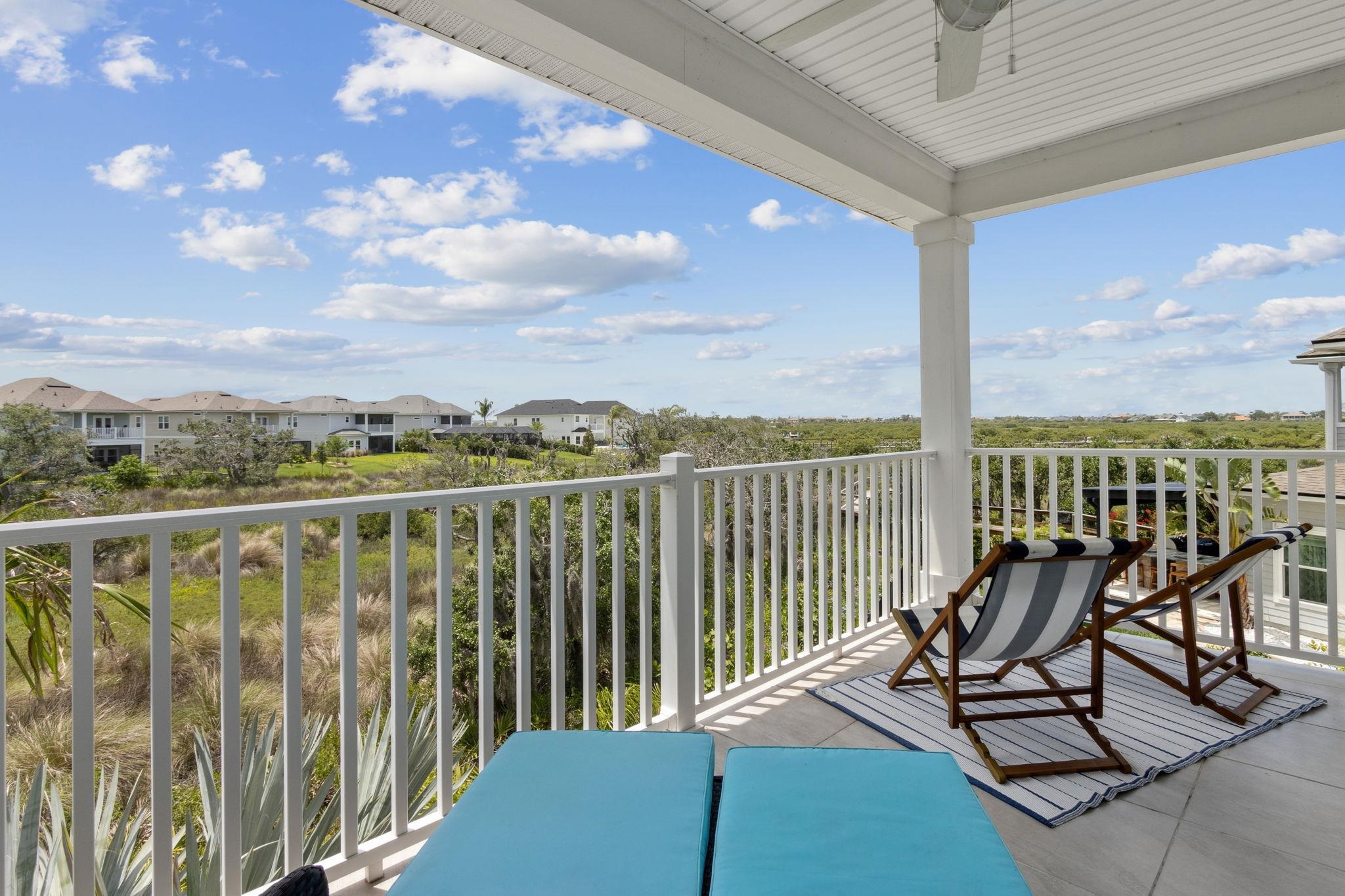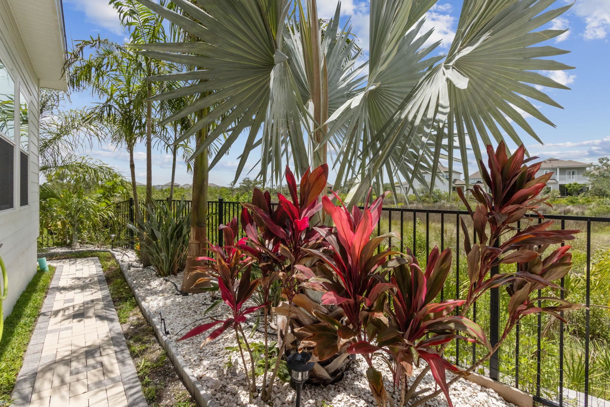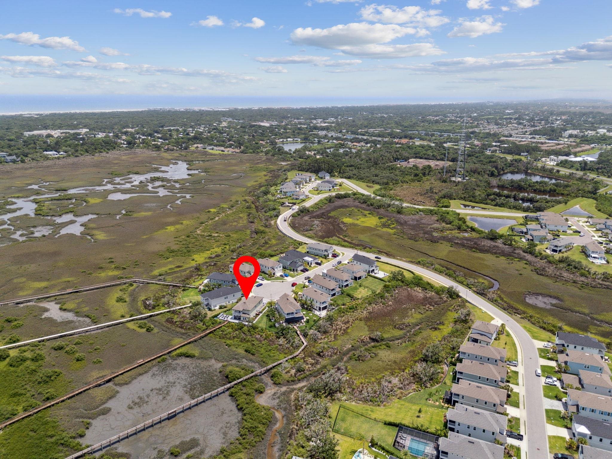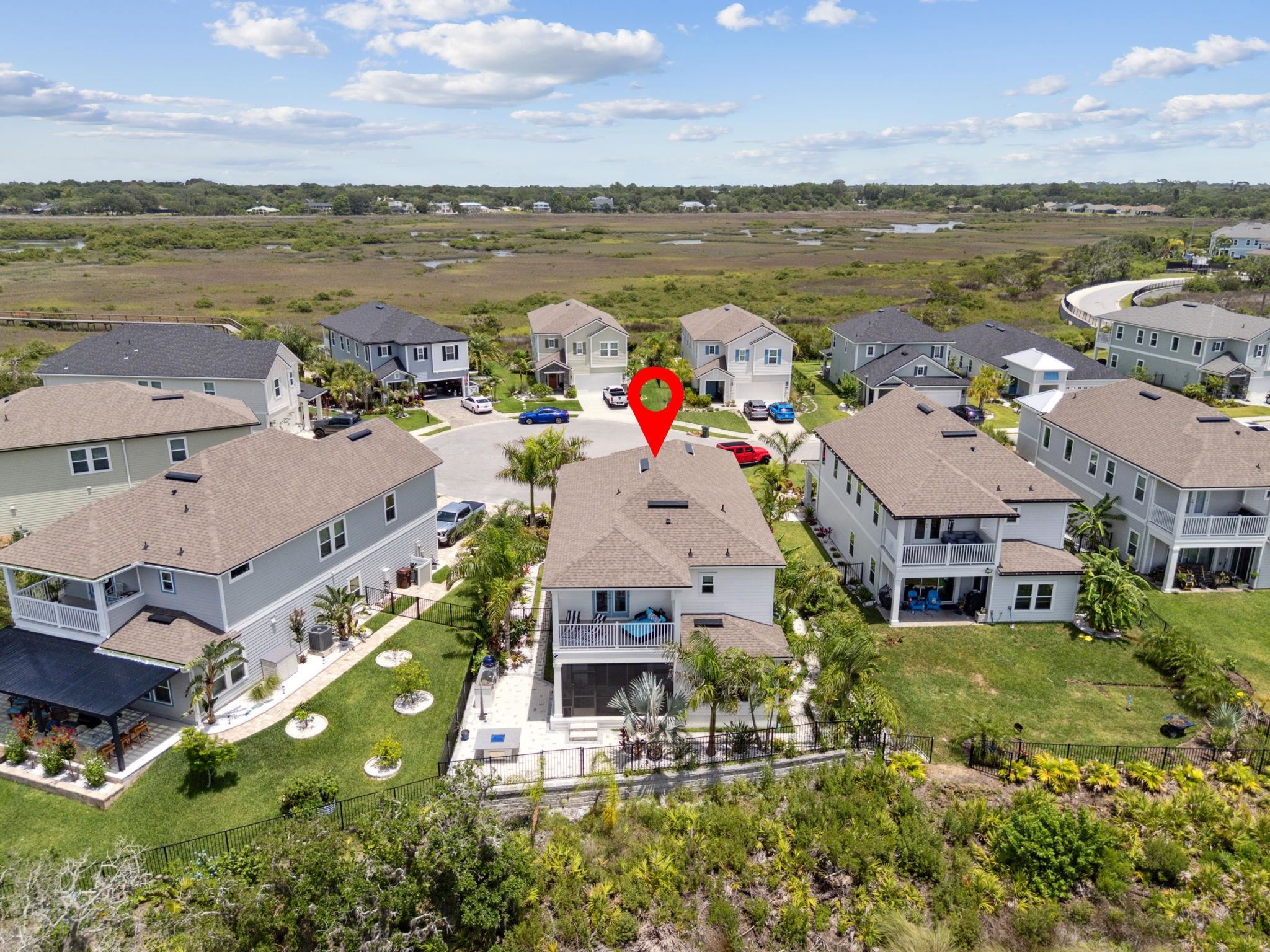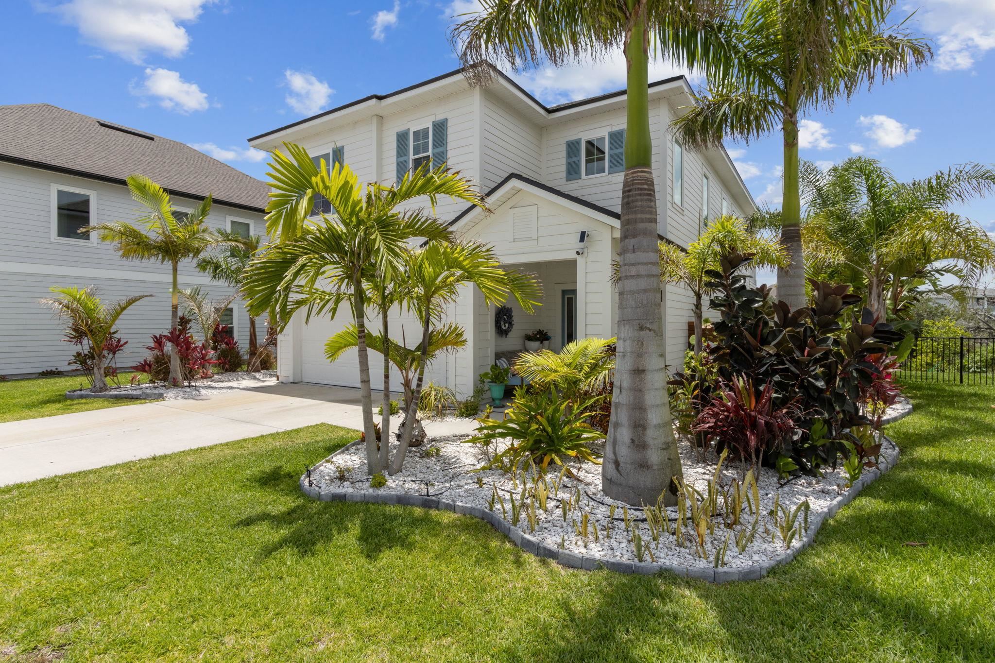 Welcome to Antigua on Anastasia Island! This stunning 4BR/3BA + loft home, built in 2022, is nestled on a quiet cul-de-sac and offers breathtaking marsh and sunset views from nearly every room. Designed for both comfort and style, the home is filled with natural light and surrounded by lush tropical scenery. In the backyard —enjoy a screened-in patio, smokeless fire table, built-in grill, and a premium Egg smoker, all set amidst beautifully landscaped coquina beds. The tropical oasis features over 15 species of palm trees from four continents, creating a resort-like atmosphere without all the maintenance. Located just minutes from pristine beaches, historic downtown St. Augustine, and top-rated schools, this move-in-ready home offers premium finishes, exceptional outdoor living, and a rare opportunity to own a slice of paradise. Beautiful community pool and clubhouse, walk-in closets, gas stove, quartz countertops, whole house water softener system, Samsung Bespoke Appliances, and luxury vinyl flooring throughout, landscape lighting, bird watching, and more!