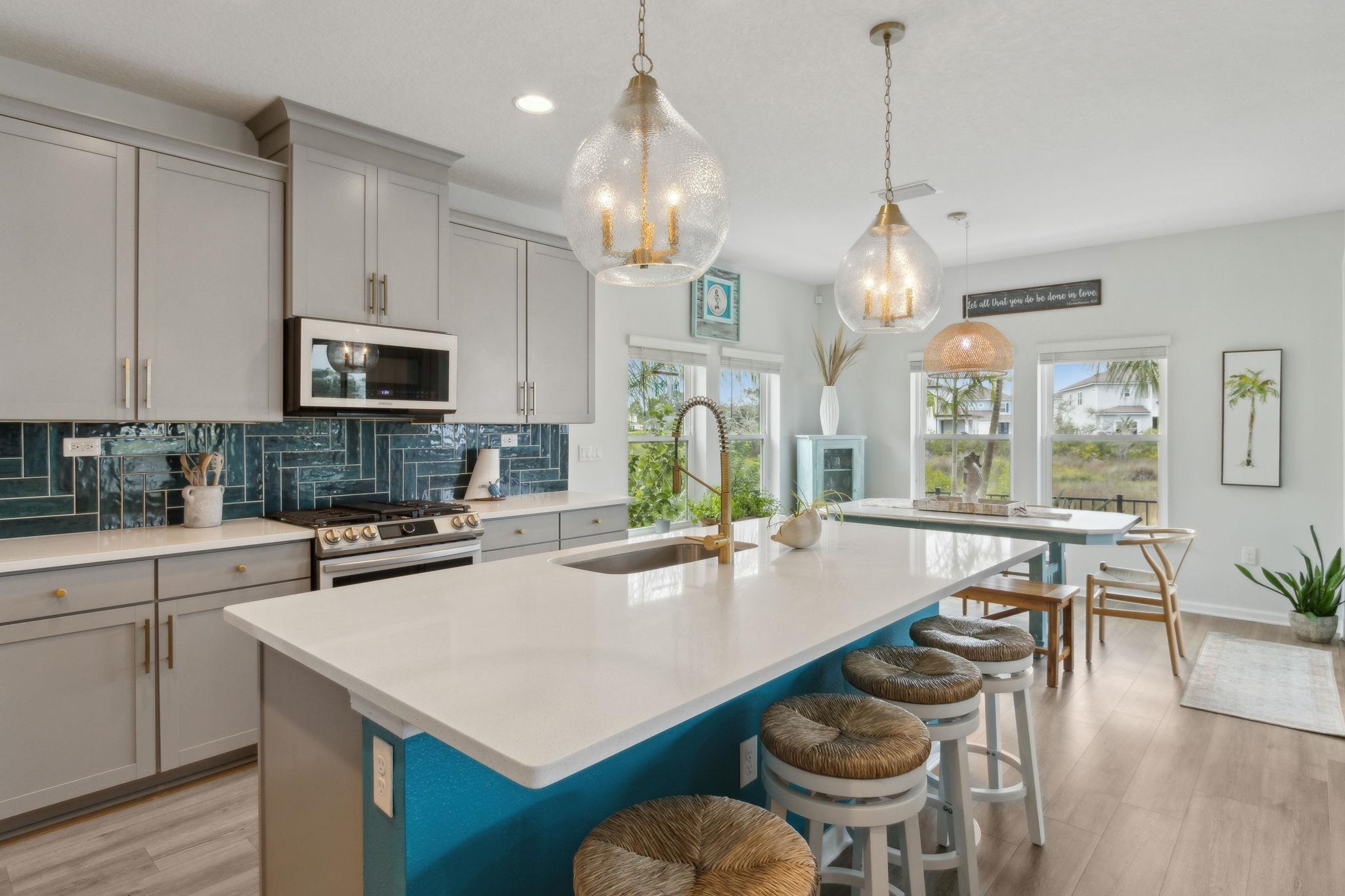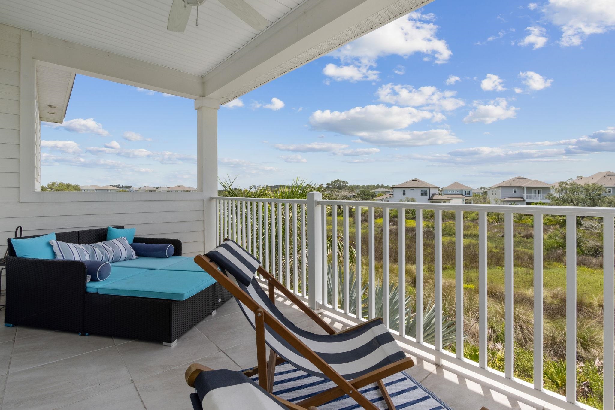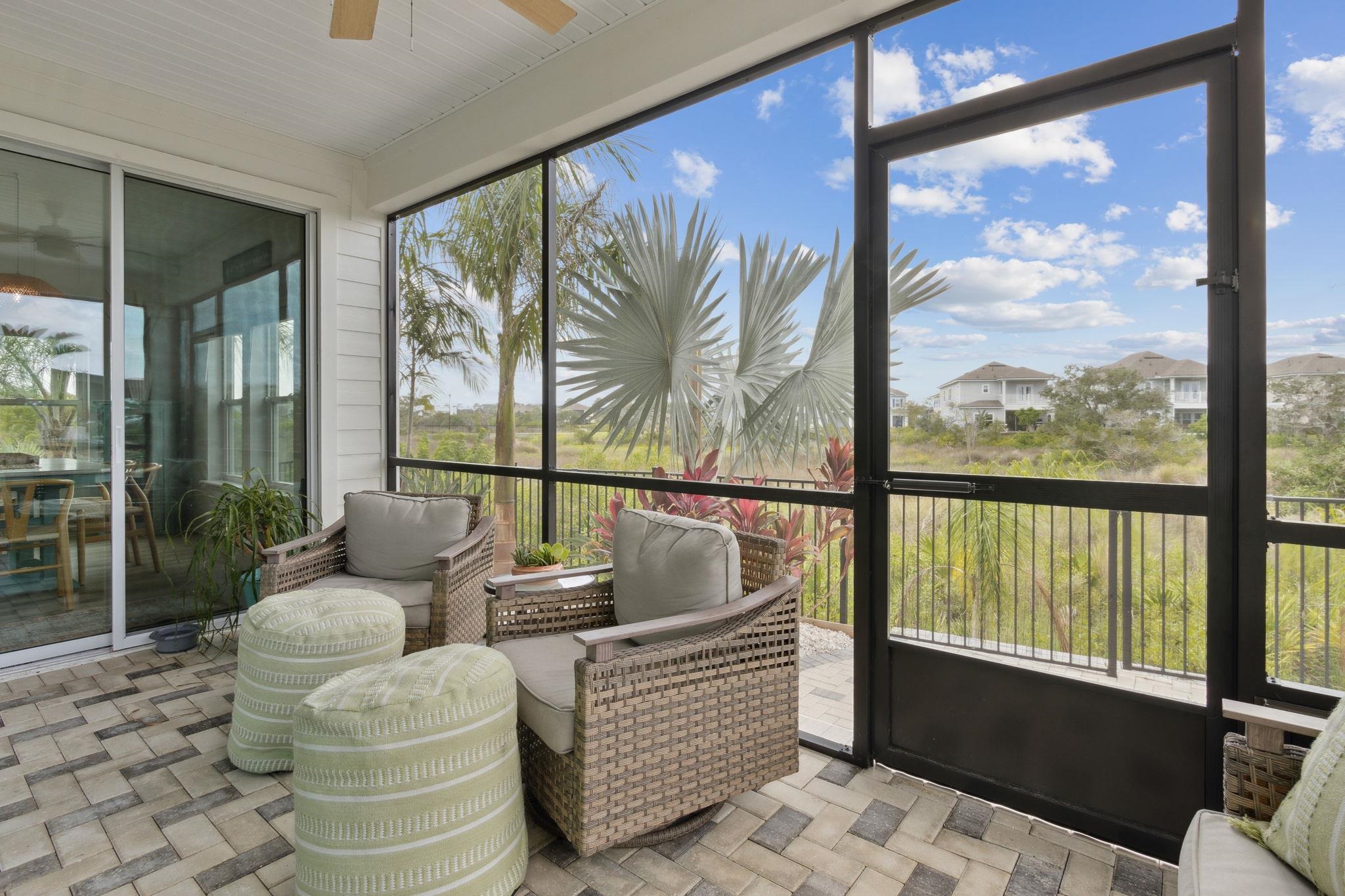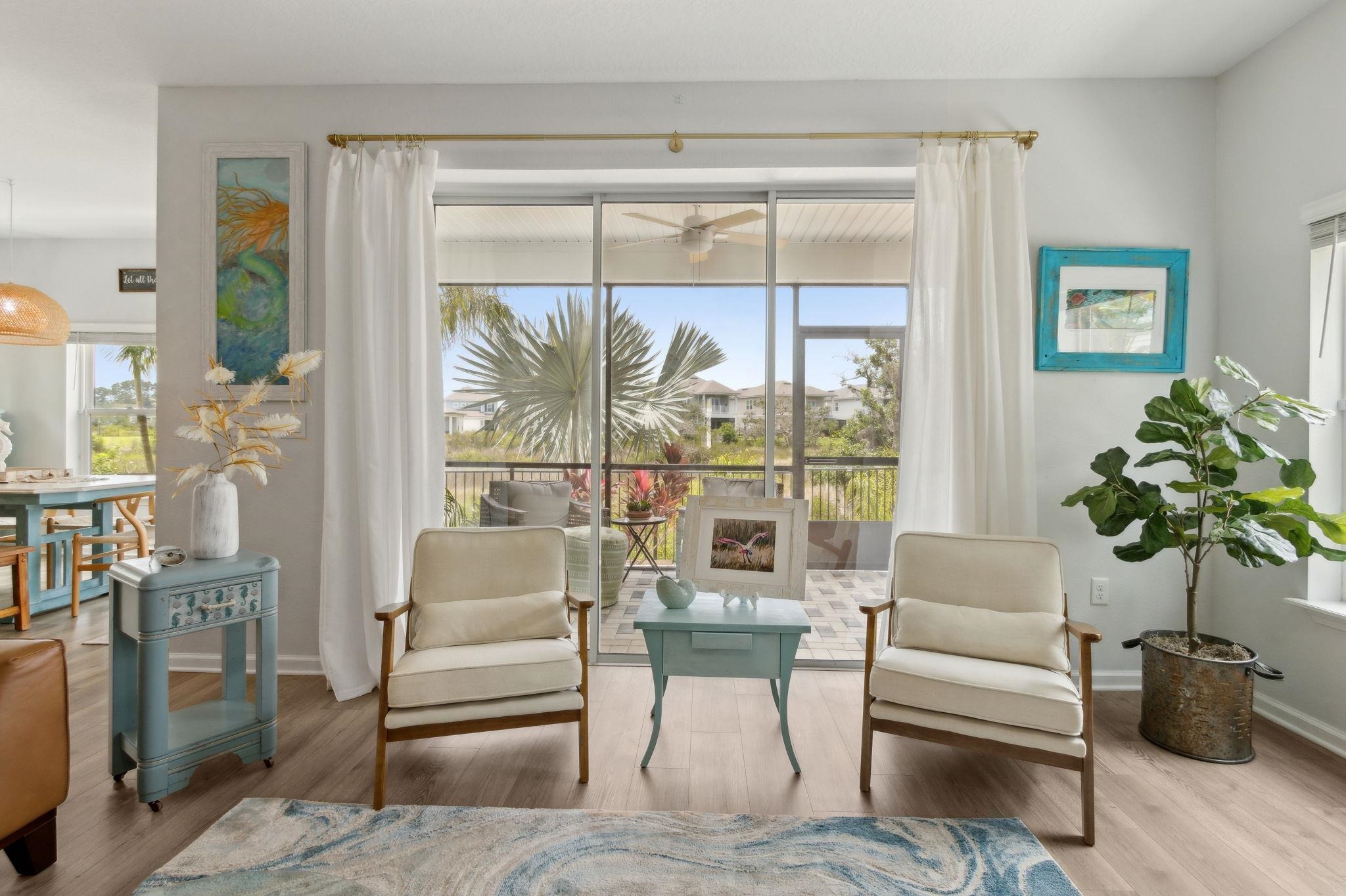 Welcome to Antigua on Anastasia Island! This stunning 4BR/3BA + loft home, built in 2022, is nestled on a quiet cul-de-sac and offers breathtaking marsh and sunset views from nearly every room. Designed for both comfort and style, the home is filled with natural light and surrounded by lush tropical scenery. In the backyard —enjoy a screened-in patio, smokeless fire table, built-in grill, and a premium Egg smoker, all set amidst beautifully landscaped coquina beds. The tropical oasis features over 15 species of palm trees from four continents, creating a resort-like atmosphere without all the maintenance. Located just minutes from pristine beaches, historic downtown St. Augustine, and top-rated schools, this move-in-ready home offers premium finishes, exceptional outdoor living, and a rare opportunity to own a slice of paradise. Beautiful community pool and clubhouse, walk-in closets, gas stove, quartz countertops, whole house water softener system, Samsung Bespoke Appliances, and luxury vinyl flooring throughout, landscape lighting, bird watching, and more!
