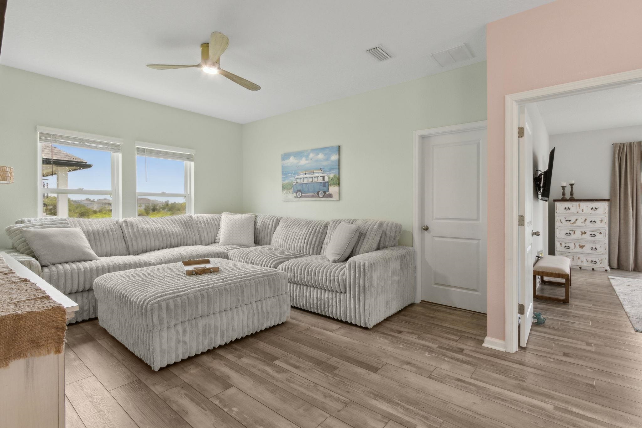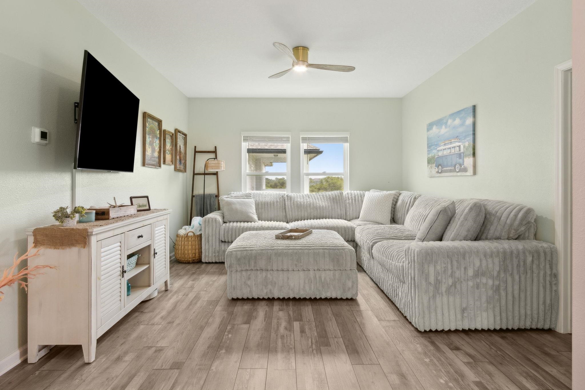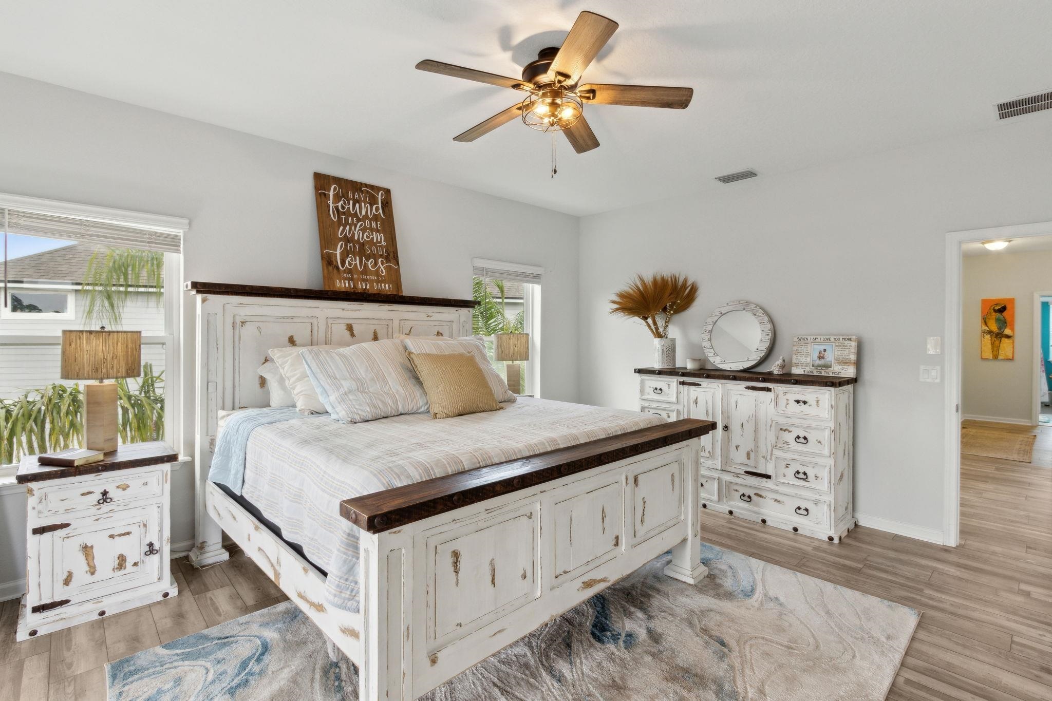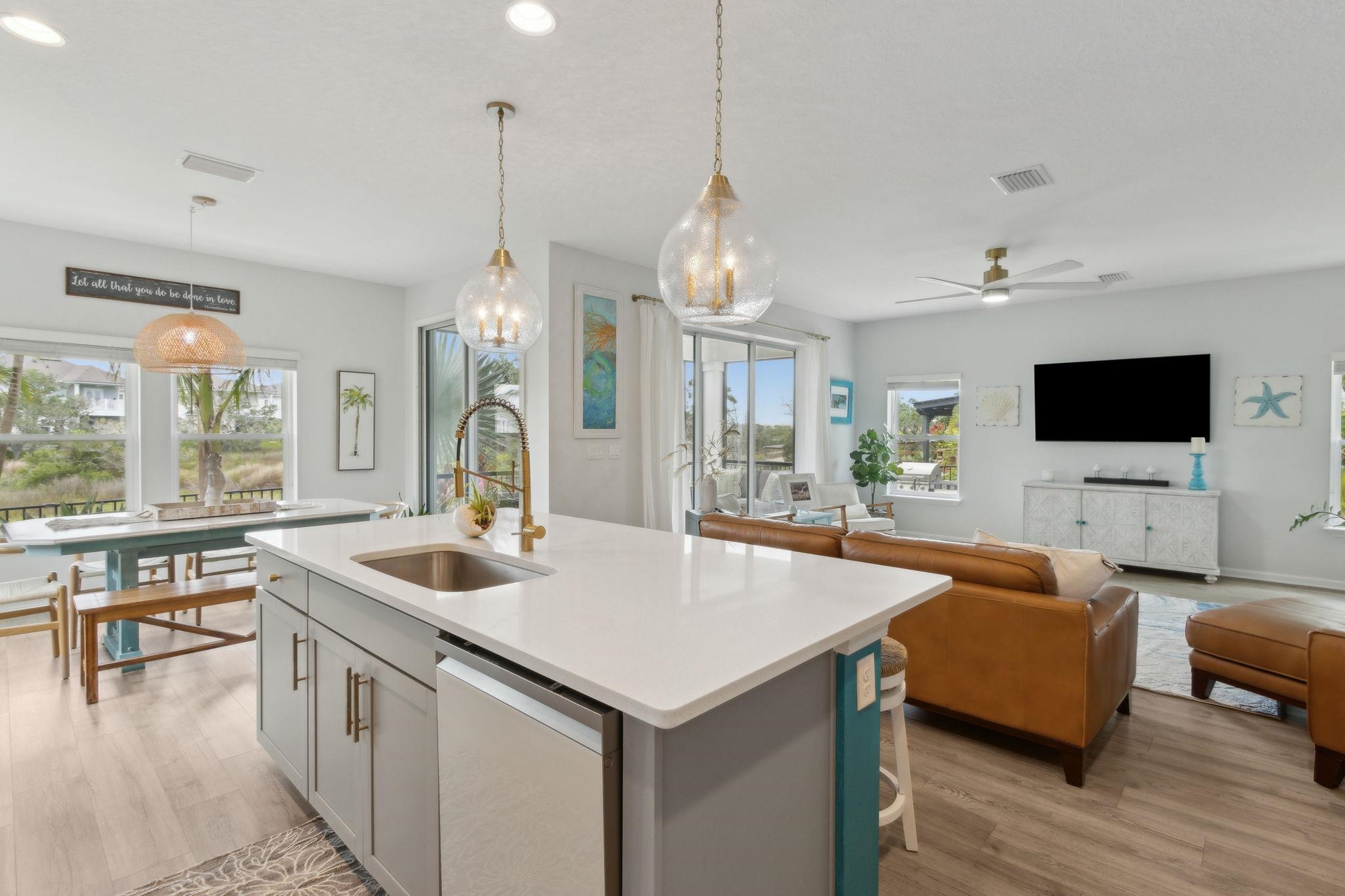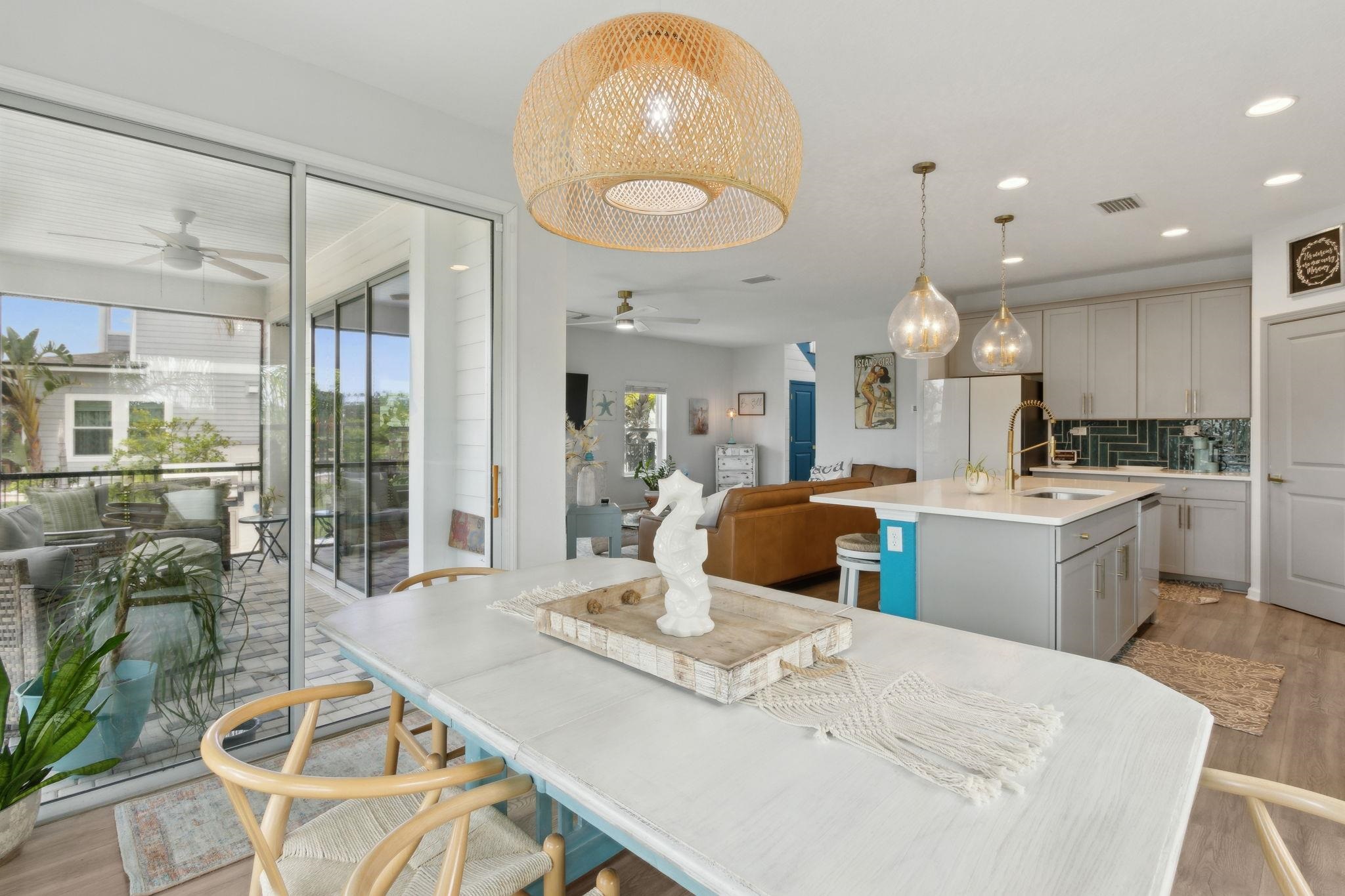 Welcome to Antigua on Anastasia Island! This stunning 4BR/3BA + loft home, built in 2022, is nestled on a quiet cul-de-sac and offers breathtaking marsh and sunset views from nearly every room. Designed for both comfort and style, the home is filled with natural light and surrounded by lush tropical scenery. In the backyard —enjoy a screened-in patio, smokeless fire table, built-in grill, and a premium Egg smoker, all set amidst beautifully landscaped coquina beds. The tropical oasis features over 15 species of palm trees from four continents, creating a resort-like atmosphere without all the maintenance. Located just minutes from pristine beaches, historic downtown St. Augustine, and top-rated schools, this move-in-ready home offers premium finishes, exceptional outdoor living, and a rare opportunity to own a slice of paradise. Beautiful community pool and clubhouse, walk-in closets, gas stove, quartz countertops, whole house water softener system, Samsung Bespoke Appliances, and luxury vinyl flooring throughout, landscape lighting, bird watching, and more!
