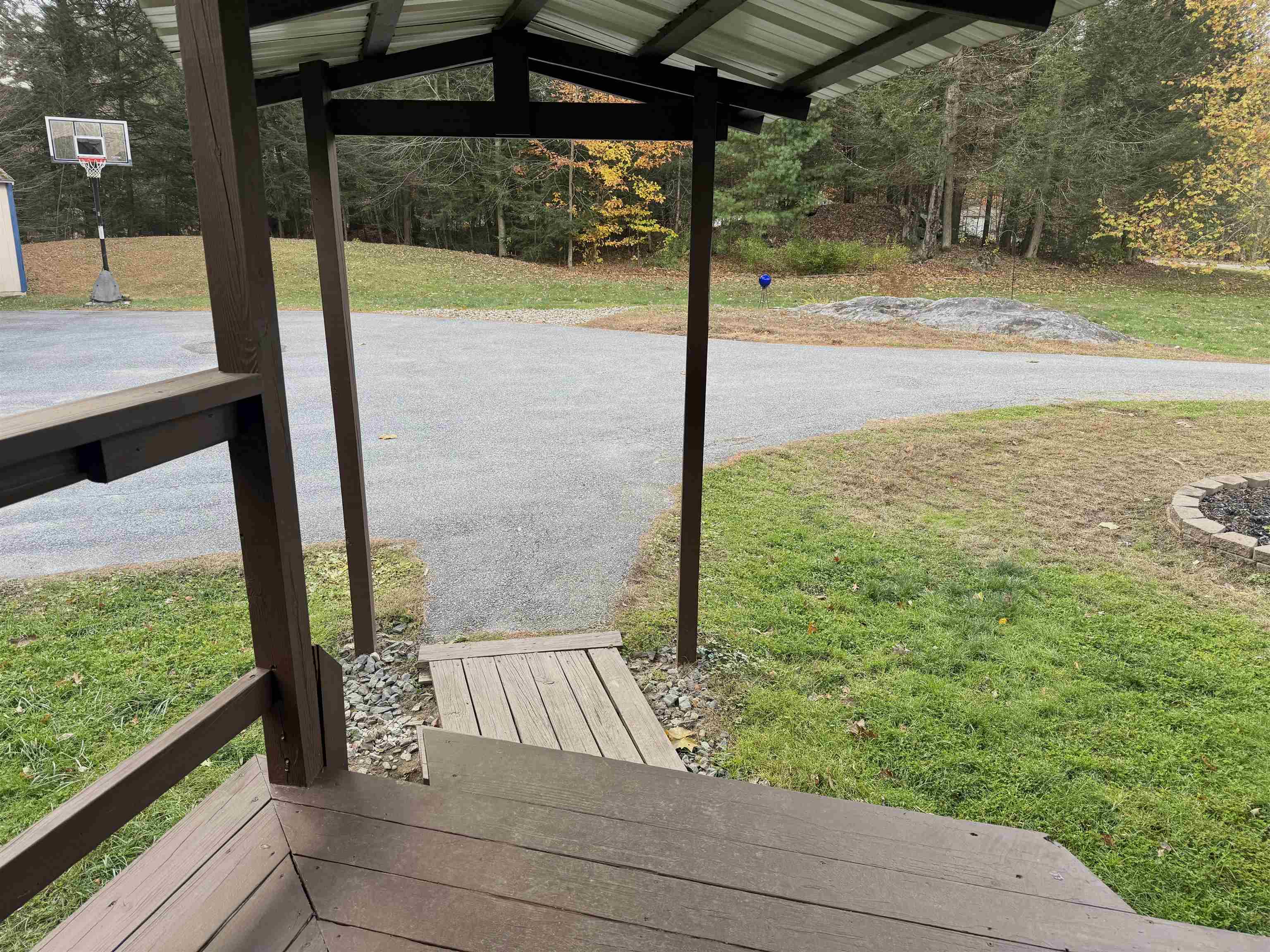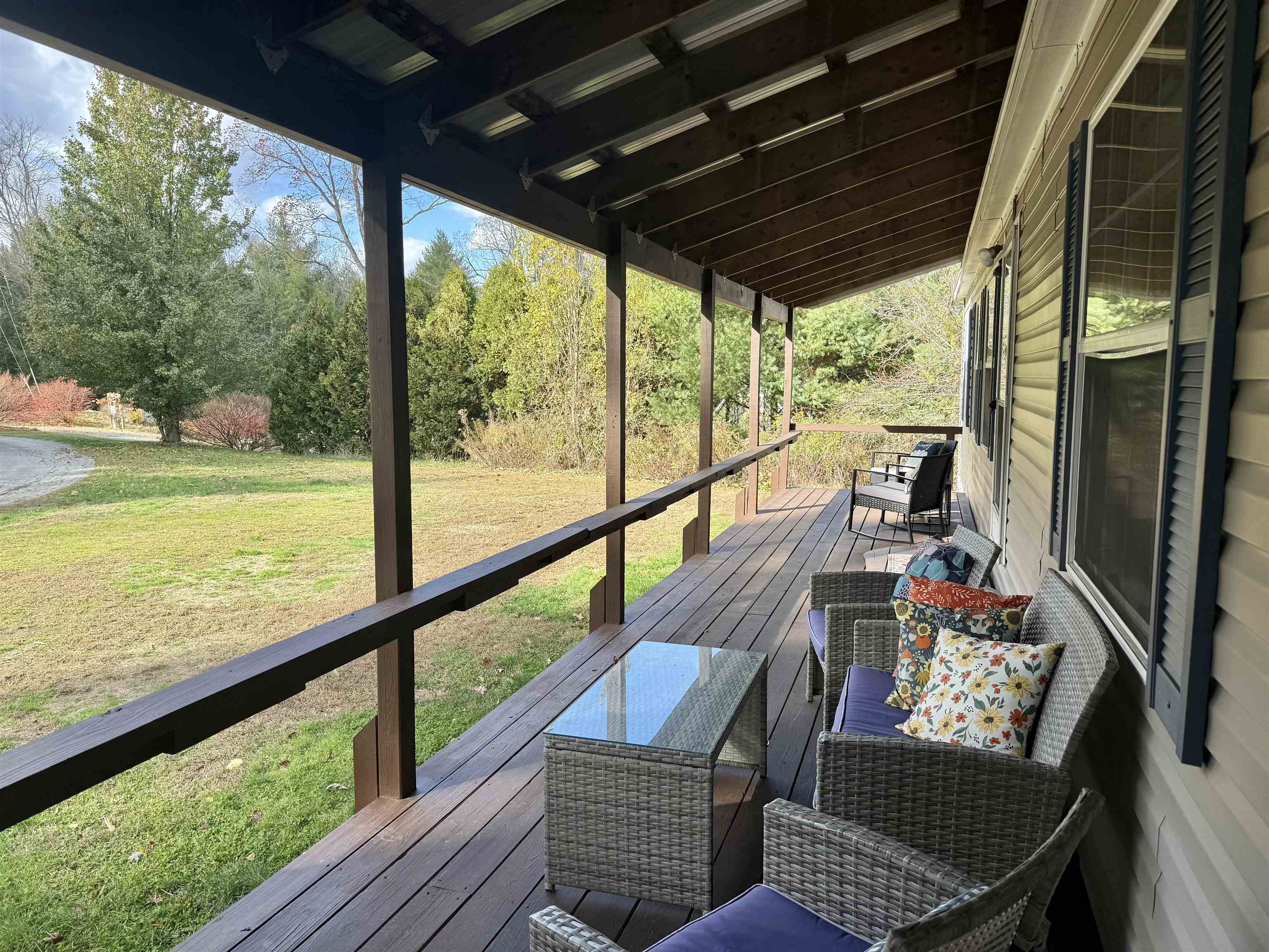 This beautifully maintained private home sits on a full walkout basement, complete with a wood stove and framing in place for future bonus space. Designed for true single-level living, the main floor features first-floor laundry, a spacious primary suite on one end of the home, and two additional bedrooms with a 2nd full bath on the other. The open-concept kitchen, dining, and living areas flow seamlessly together, with a walkout deck extending the living space outdoors. A covered front porch spanning the full length of the home offers another inviting place to relax and enjoy the peaceful setting. Set on nearly three private acres at the end of a quiet dead-end road, the property includes a paved driveway, buried power and an impressive four-car garage (24x52), ideal for vehicles, hobbies, or additional storage. Numerous recent updates—such as new appliances, hot water heater, septic pump, water softener, flooring, and fresh paint—make this home truly move-in ready. Vernon offers school choice for grades 7–12 and a variety of community amenities, including a recreation department with a pool, tennis and pickleball courts, basketball, a playground, and more, along with a town library and classic small-town charm. Conveniently located equidistant to Brattleboro and Greenfield, approximately two hours to Boston, one hour and ten minutes to Bradley International Airport, and about one hour to Mount Snow. Sale is subject to the sellers finding and securing suitable housing