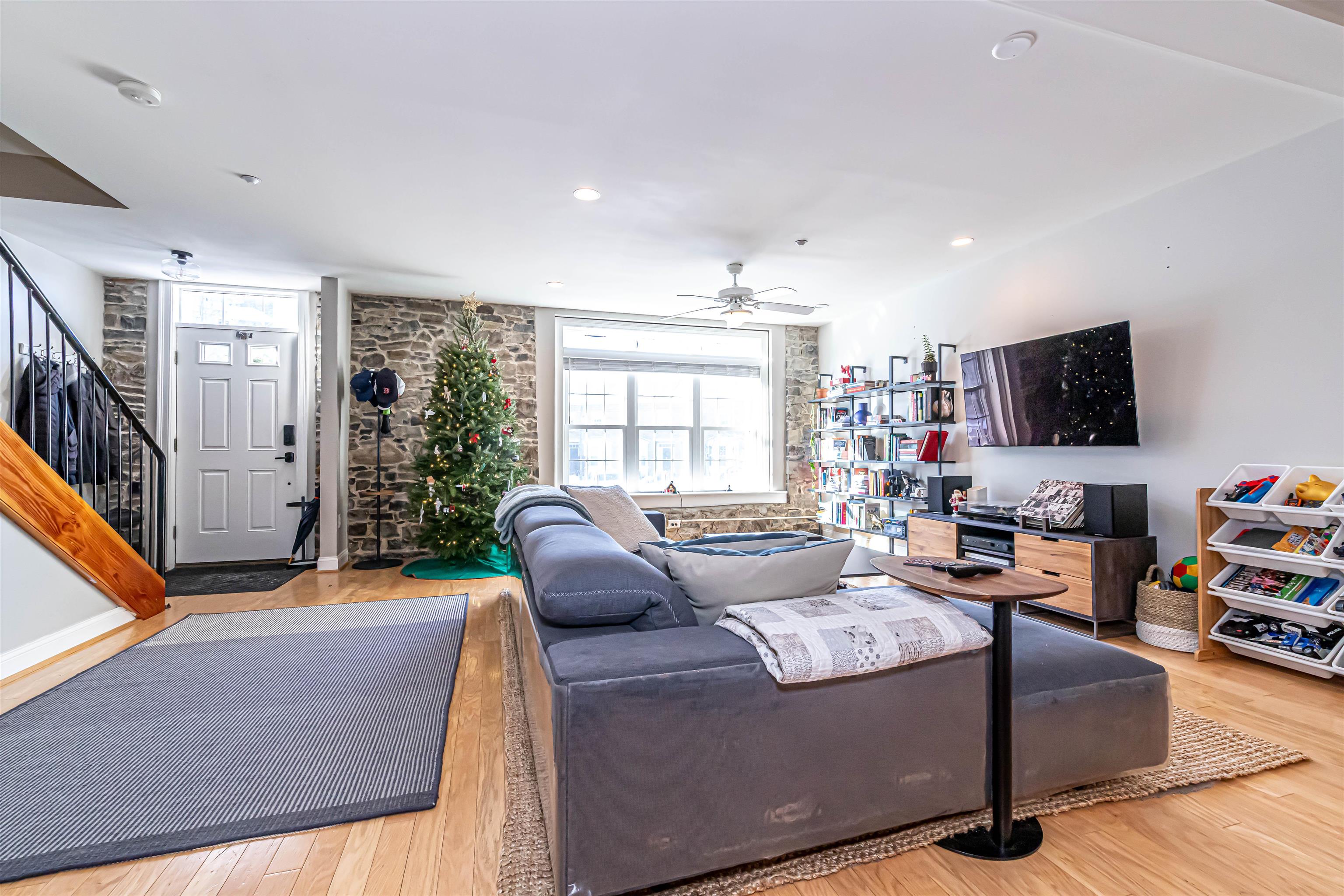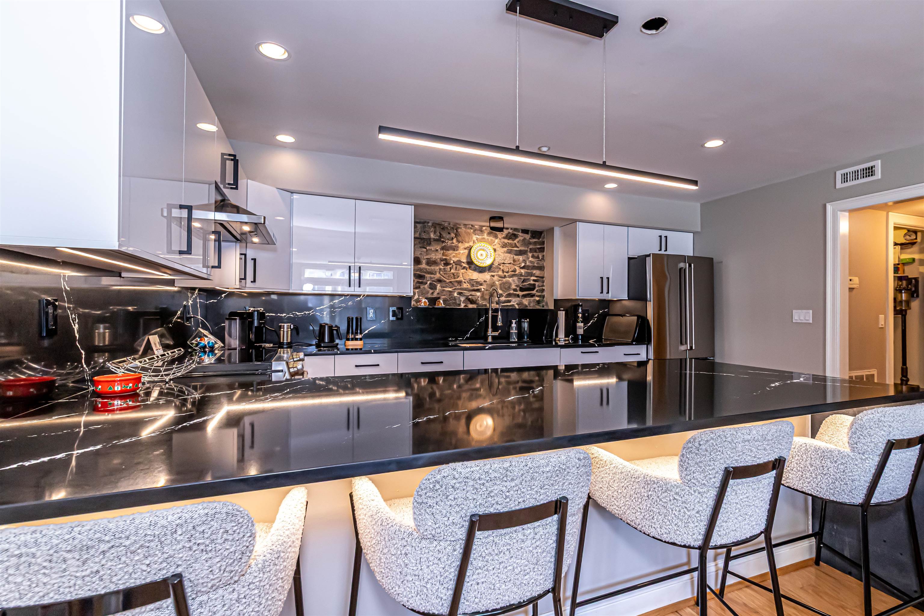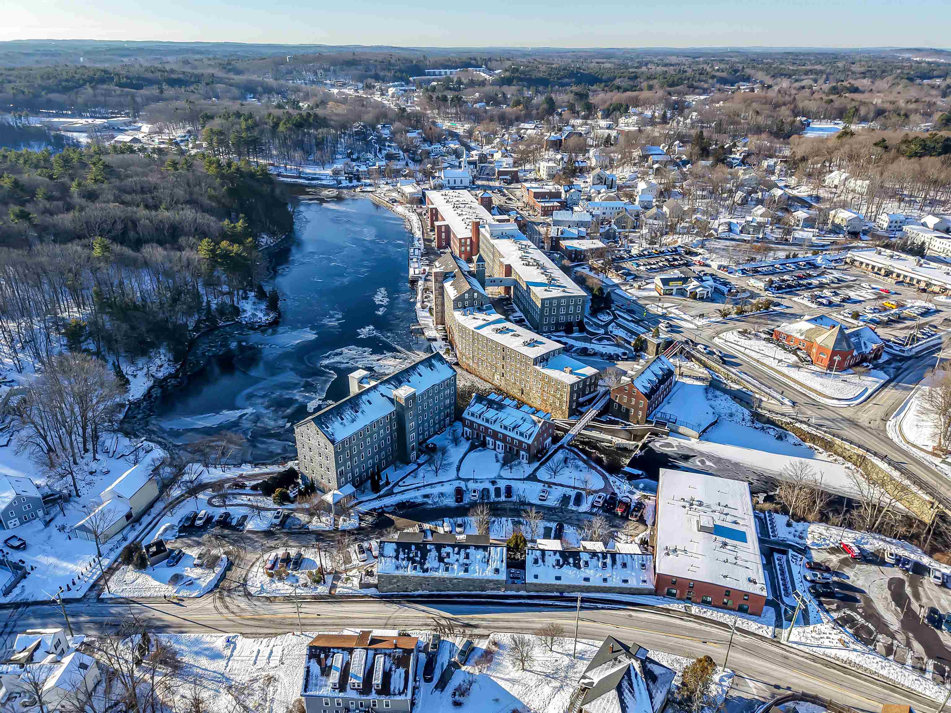 Discover a historic townhome-style condominium in the award-winning Bryant Rock Condominiums, steps from downtown Newmarket. This three-story residence is part of a beautifully converted former mill featuring exposed stone walls, wood beams, and preserved architectural character. The home offers 2 bedrooms and 2. 5 bathrooms with a multi-level layout. Fully renovated kitchen (1 year) includes Cambria quartz countertops, Fabuwood Catalina Bianco gloss cabinetry, Asko dishwasher, GE Café induction range and refrigerator, Sharp drawer microwave, modern lighting, and upgraded electrical with under-cabinet and under-bar lighting. Wood flooring enhances the main living areas, while luxury vinyl wood-grain floors are found in the bedrooms. The primary suite features a walk-in closet, electronic blackout shades, and a Jacuzzi tub. Additional highlights include three new toilets, an updated laundry room with added storage, and extensive third-floor storage. Enjoy a private southwest-facing 12’x12’ stone terrace overlooking beautiful historic stone buildings. Trails, parks, and water access right outside your door. Boat/kayak launch provides river access. Building amenities include a fitness room, secured kayak and bike storage, and deeded parking with guest options. HOA fees cover heat, hot water, central air, water, sewer, trash, recycling, landscaping, snow removal, and fitness access, and all special assessments, including the 2024 roof replacement, are fully paid.
