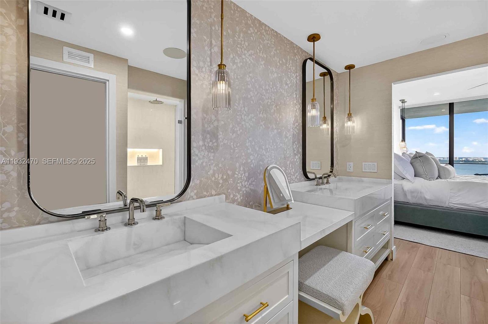 This ultra-luxury, fully furnished 4-bedroom waterfront residence is impeccably designed by award-winning interior designer DLT Interiors. Enjoy breathtaking, unobstructed views of Biscayne Bay through floor-to-ceiling windows, an open-concept layout ideal for entertaining, and a sleek modern kitchen with Thermador and Bosch appliances. A state of the art media room featuring a 100” TV, complete with surround sound and Sonos music system throughout home.