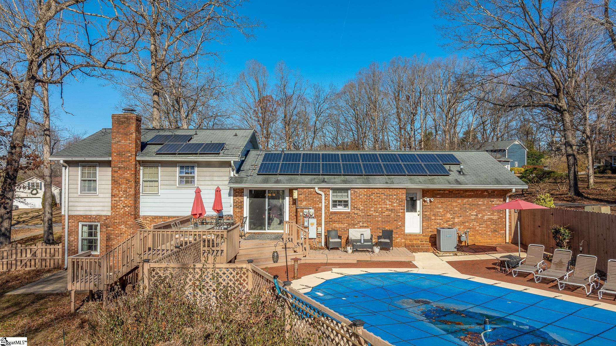 Must-see home in the desirable Chestnut Lake community, offering space, privacy, and exceptional flexibility. Situated on a . 88-acre wooded lot with a creek, this well-maintained residence provides room to spread out both inside and out. The main level features 3 bedrooms and 2 full bathrooms, an open kitchen with dining area, and a comfortable family room ideal for everyday living. The primary suite includes three closets and a private bath with a walk-in shower. The walk-out lower level feels like its own private apartment, making it ideal for an in-law suite, guest quarters, or multi-generational living. This level includes a large den with a wood-burning stove, a bedroom with full bath, and a flex room that can easily serve as a 5th bedroom, home office, study, or craft room, along with a separate exterior entrance and access to an additional patio area. Step outside and enjoy your own private retreat—relax by the in-ground pool, entertain on the spacious backyard deck, or unwind beneath the pergola surrounded by nature. The partially fenced backyard also includes a storage shed, blueberry and fig bushes, and plum and mulberry fruit trees. Additional highlights include: - Pool liner replaced in 2024 (pool vacuum hose, brushes, safety cover, and chemicals convey) - Gas furnace replaced in 2019 - GE electric range and primary bath shower updated in 2018 - Solar panels, gutter guards, and extra parking pad - Garage storage room - Pantry cabinet with swing-out storage - Corian countertops in the kitchen - Security cameras at the front of the home convey This property is being sold as-is and offers an exceptional opportunity for buyers seeking space, privacy, and flexible living options. Schedule your showing today—this Chestnut Lake gem truly lives larger than it looks.