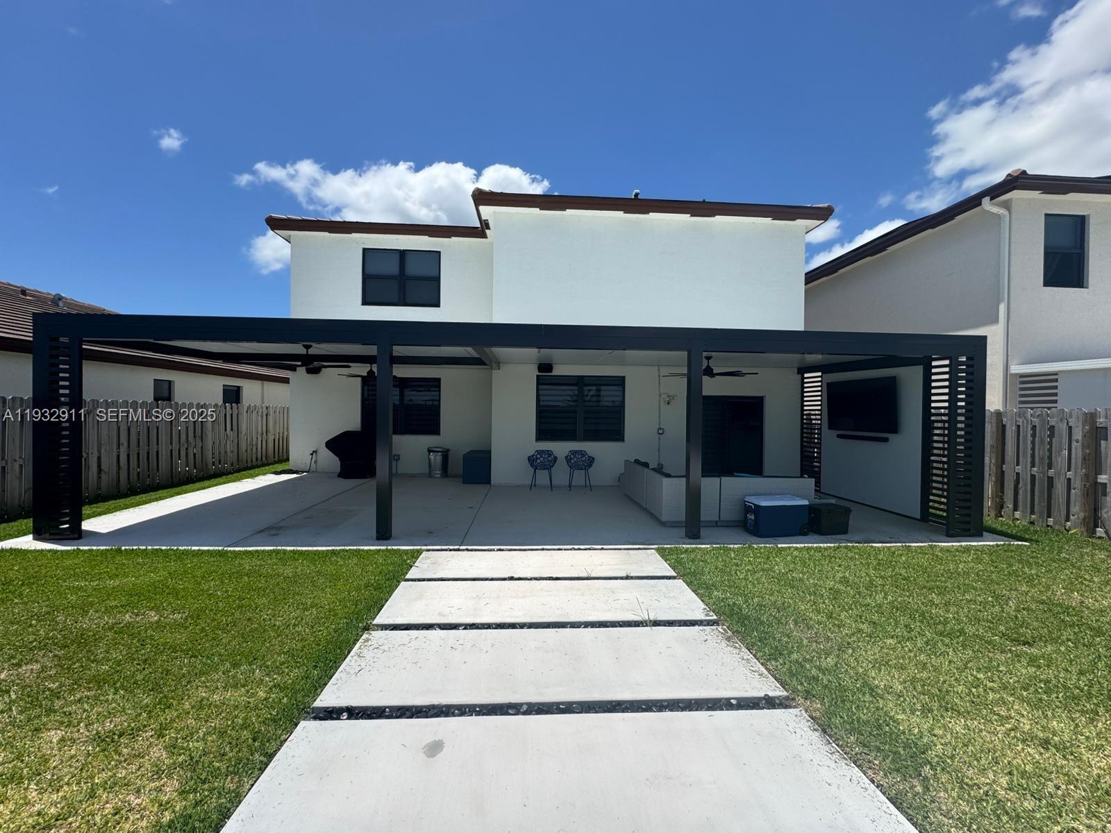 vanity sink, tub, and a walk-in shower. Outside, enjoy the spacious fenced backyard and the refreshing pool. This