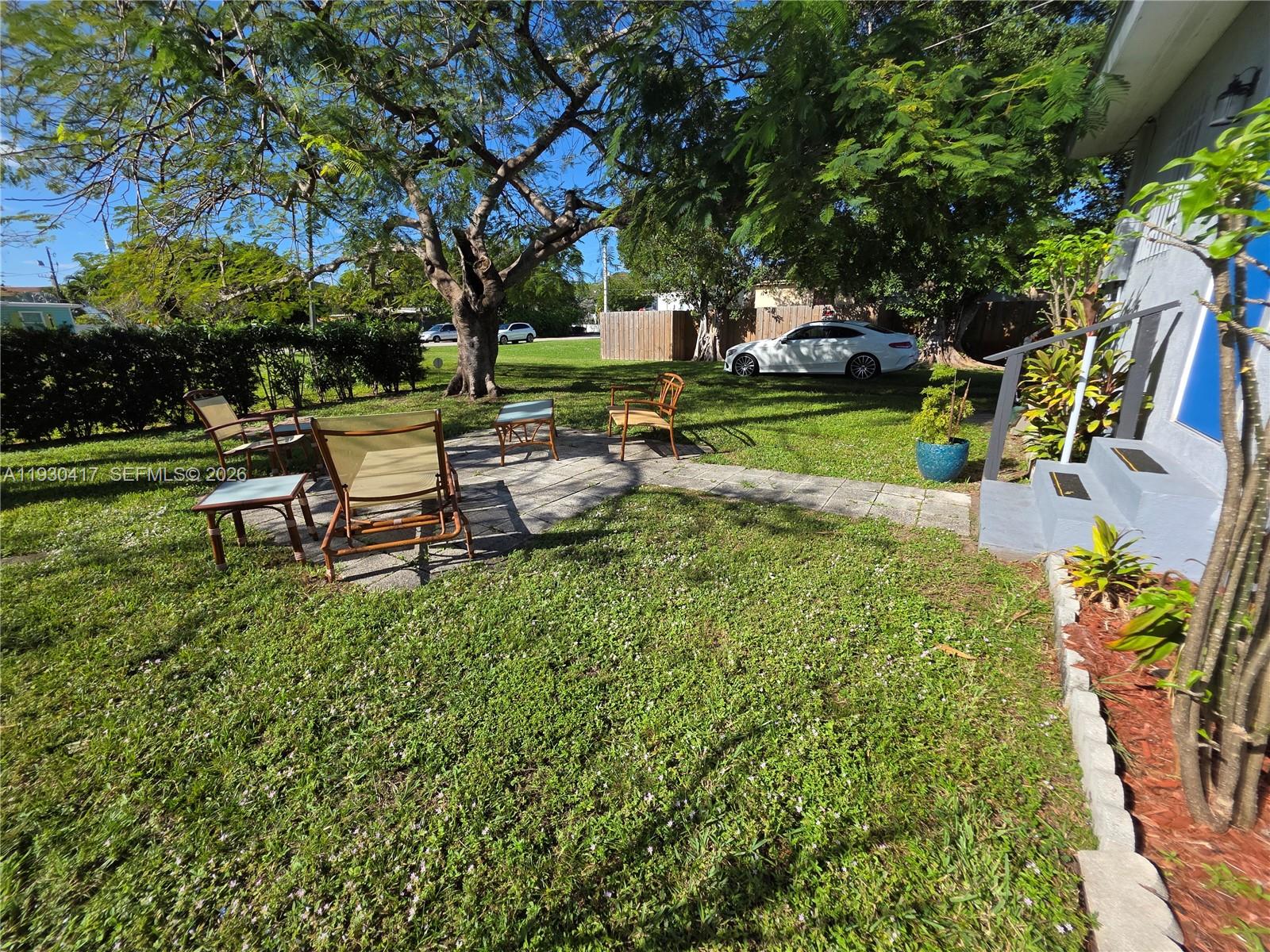 It sits back from the street over 100 feet with a massive front yard. It is fenced in on 3 sides with a large patio to relax under some great old trees, giving exceptional privacy, peace, and quiet.