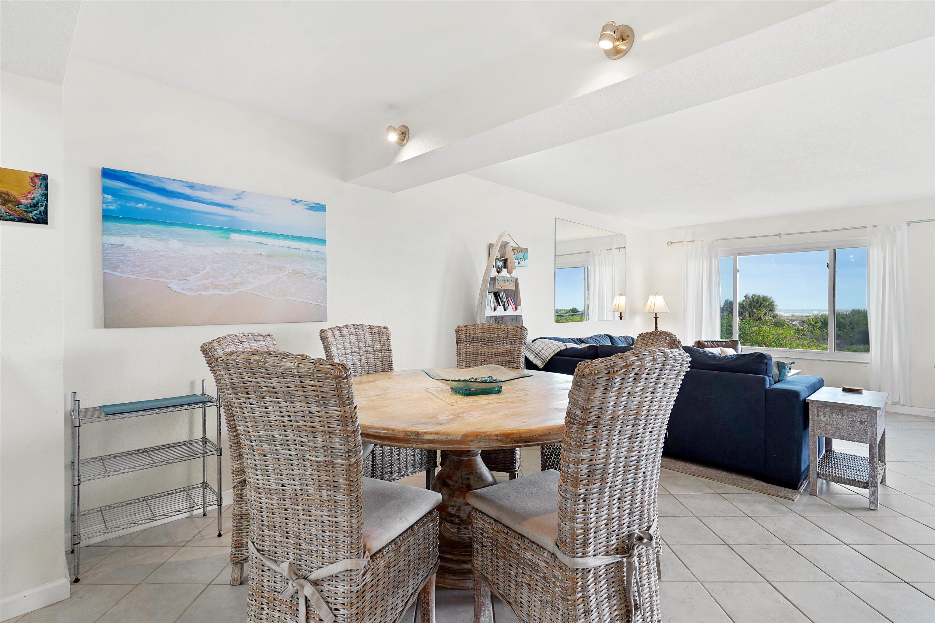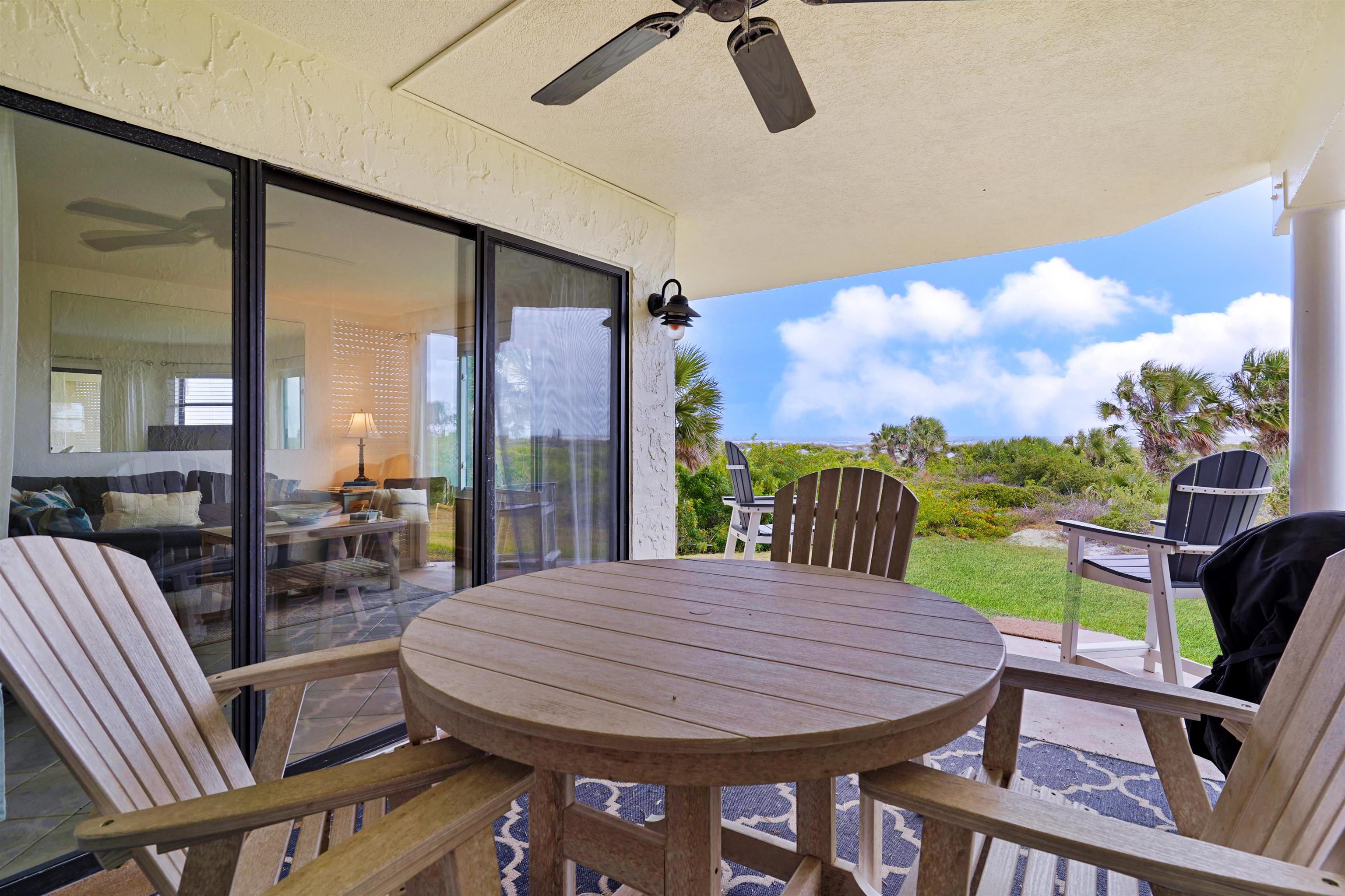 Colony Reef Direct Oceanfront! Wake up to breathtaking, panoramic ocean views and enjoy them all day long in one of Anastasia Island’s most sought-after oceanfront communities. This beautifully refurbished ground-floor condo offers the perfect blend of coastal luxury and everyday convenience, with direct access to the beach, pool, BBQ area, and lush green space just steps from your door. No stairs, no elevators, no hauling groceries or beach gear—just effortless island living. Inside, the kitchen shines with newer appliances, granite countertops, soft-close cabinetry, upgraded sinks and hardware, and modern faucets and fixtures. The oceanfront owner’s suite is a true retreat, featuring direct ocean views so you can fall asleep to the soothing sound of the waves. The ensuite bath includes upgraded Delta fixtures and a walk-in shower. Throughout the condo, low-maintenance Italian commercial-grade tile flooring makes sandy cleanups quick and easy. Step outside to an oversized patio ideal for entertaining, along with an oceanfront lawn perfect for relaxing, gathering, or simply enjoying the sea breeze. This move-in-ready unit has been thoughtfully updated with a brand new air conditioning system, six-panel solid-core Masonite doors, upgraded Schlage lever locksets, newer mainline and shut-off, hot water heater, updated lighting, switches, and outlets, newer storm door, upgraded sliding door hardware, and fresh interior paint—offering peace of mind and low-maintenance living. Colony Reef sits on a pristine white-sand beach and features 24-hour guard-gated access, onsite management and maintenance, indoor and outdoor pools, fitness center, racquetball, tennis, and more. Ideally located near grocery stores, shopping, dining, the St. Augustine Pier, and historic downtown St. Augustine. This is oceanfront living at its finest—relax, unwind, and enjoy every wave.