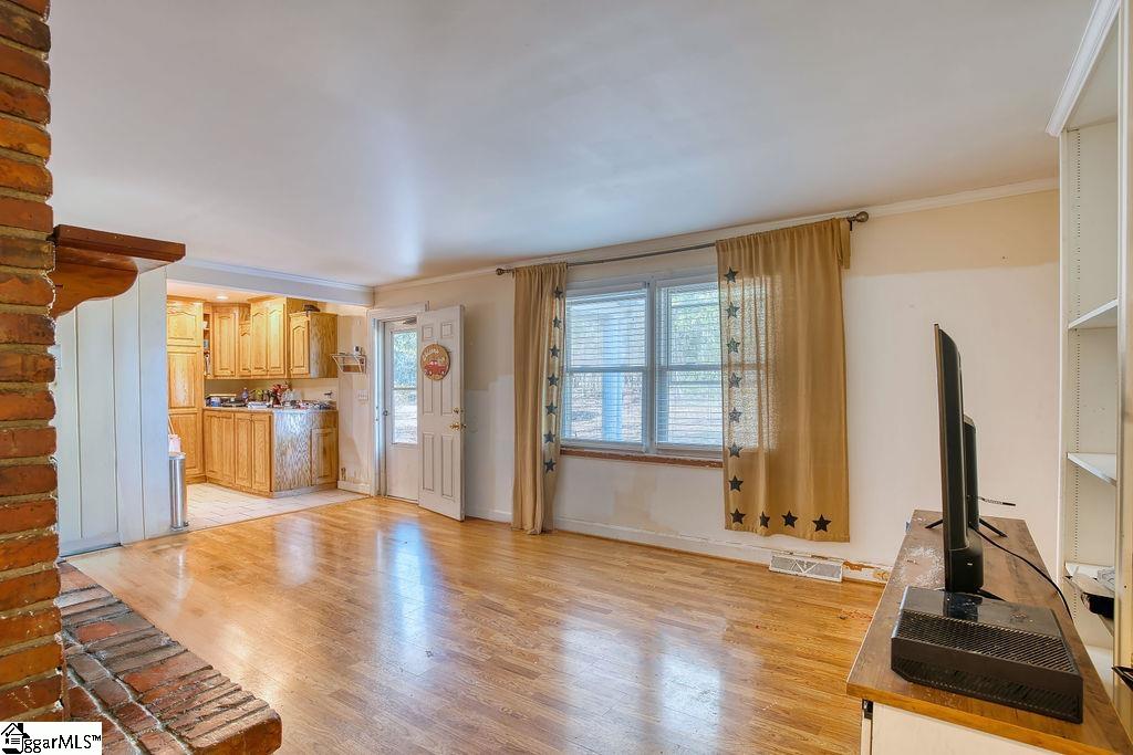 This well-maintained brick and vinyl-sided home offers comfortable one-level living on an almost one-acre, level lot in Laurens County, providing an ideal blend of space, privacy, and convenience. Sitting well back off the road, the property enjoys a peaceful, private setting with plenty of room to relax, play, or entertain. Inside, the home features approximately 1, 700 square feet with four bedrooms and two full baths, offering flexibility for a variety of living arrangements. The inviting main living area is centered around a cozy fireplace and is complemented by beautiful hardwood floors that are in excellent condition, adding warmth and timeless character throughout much of the home. Tile flooring in key areas adds durability and easy maintenance. The kitchen has been nicely updated with newer cabinetry, stainless steel appliances, and generous storage, and all appliances will remain with the home, including the washer and dryer. Public water and sewer provide everyday convenience, while the spacious, level lot offers exceptional privacy and room to enjoy outdoor living. Ideally located close to the heart of Clinton and all it has to offer, the home is just a few miles from Presbyterian College, making it an excellent opportunity for student housing, a primary residence, or an investment property. This property combines location, space, and versatility in a setting that is both quiet and convenient.