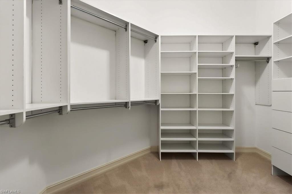The primary suite feels like a private wing, complete with a sitting area for morning coffee or a good book, a generous walk-in closet with built-in cabinetry, and a spa-style bath with dual vanities, a jetted tub, and a large walk-in shower. Two guest bedrooms are set apart for privacy, each with an ensuite bath and walk-in closet, which works beautifully for family, guests, or multi-generational visits.