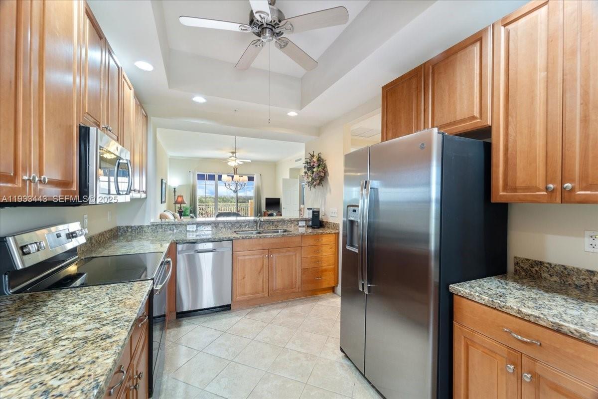 Welcome to The Residences at LA Piazza in Ave Maria, an exclusive community of just 70 luxury condos. This pristine two-bedroom, two-bathroom Siena floorplan condo is being sold TURNKEY and is move-in ready. Designed by Humphrey-Rosal, you enjoy breathtaking sunrises and sunsets from your private balcony, overlooking a lake and the beautiful Ave Maria church. The unit features high-end finishes, including granite countertops, stainless steel appliances, and impact-resistant windows. Ceiling fans and stylish window treatments are installed throughout. The building offers secure access, with elevator and stairway options. As a resident, you’ll have access to a private pool, fitness center, and two dedicated parking spaces. Located within walking distance of the town center, you'll enjoy easy access to shopping, dining, schools, and places of worship. Ave Maria also offers beautiful public golf courses for your enjoyment, and as part of the master association, access to tennis and pickleball courts. Ave Maria - a big kind of small town, features monthly activities like our steak Cookoff competition, Blues, Brews and barbeques, Taste of Ave as well as many world-class talks at the Ave Maria university. During the cooler months, there are vibrant weekly Farmers Markets where you can find top-class arts, crafts and mouthwatering foods, something for everyone's taste.