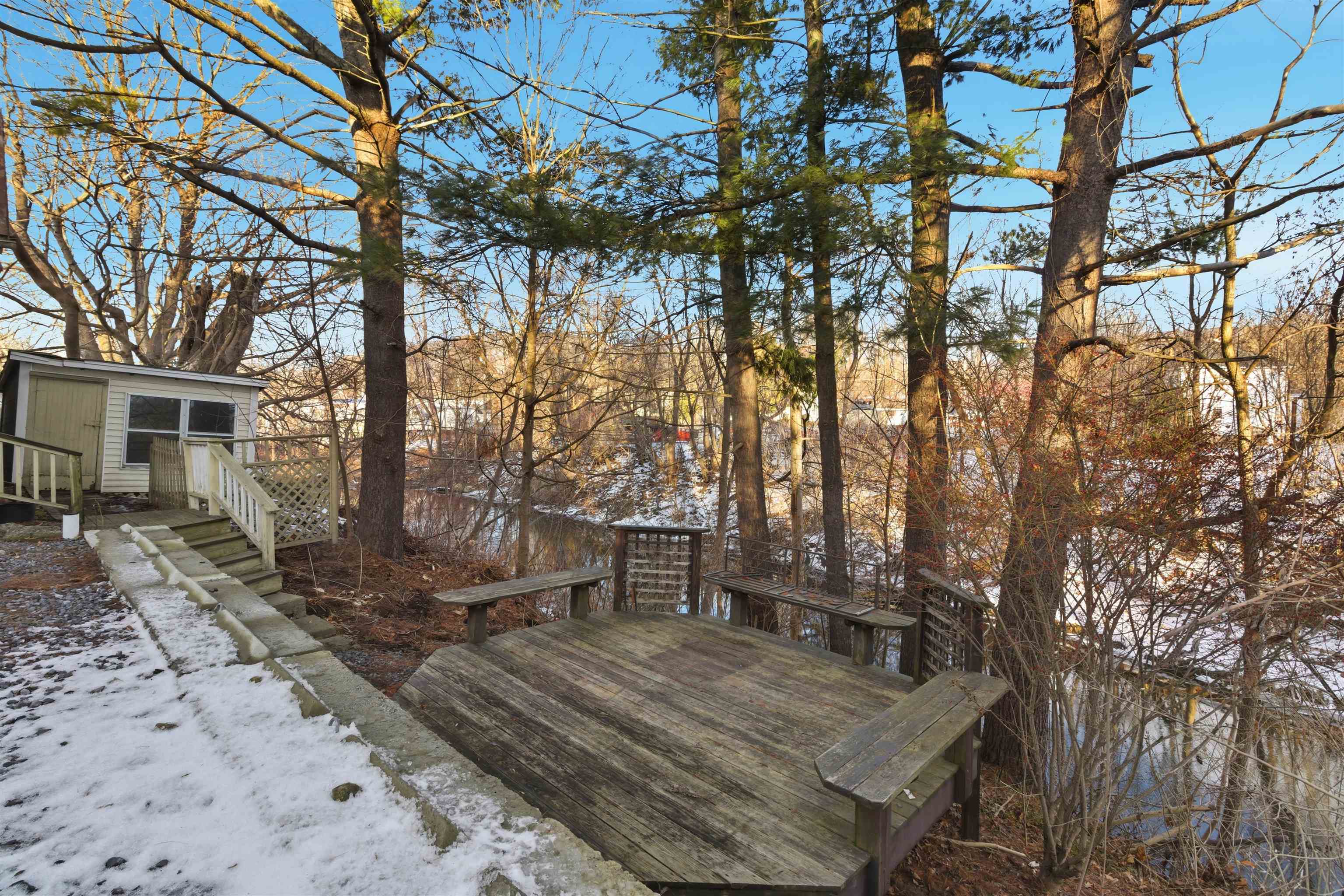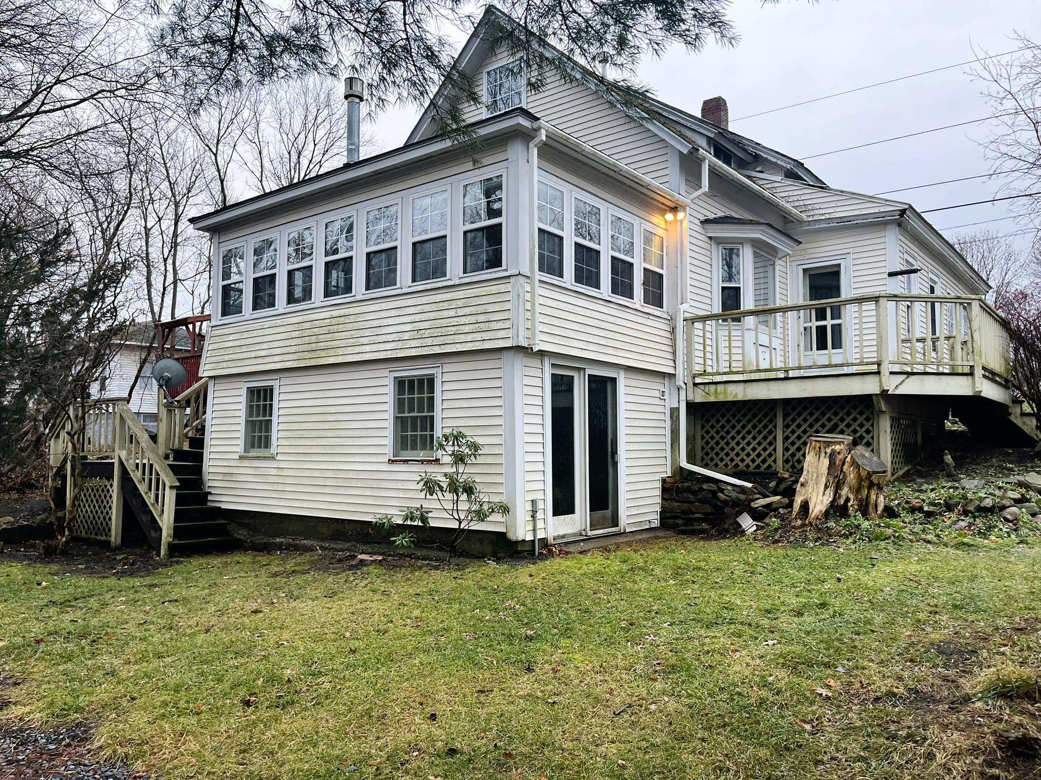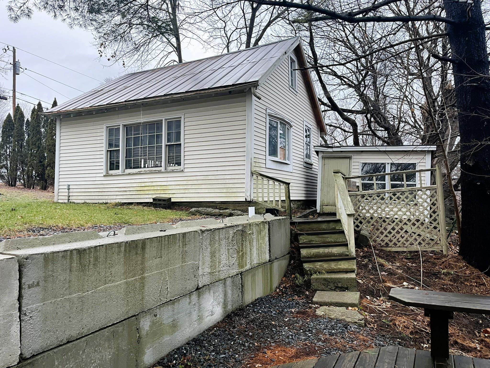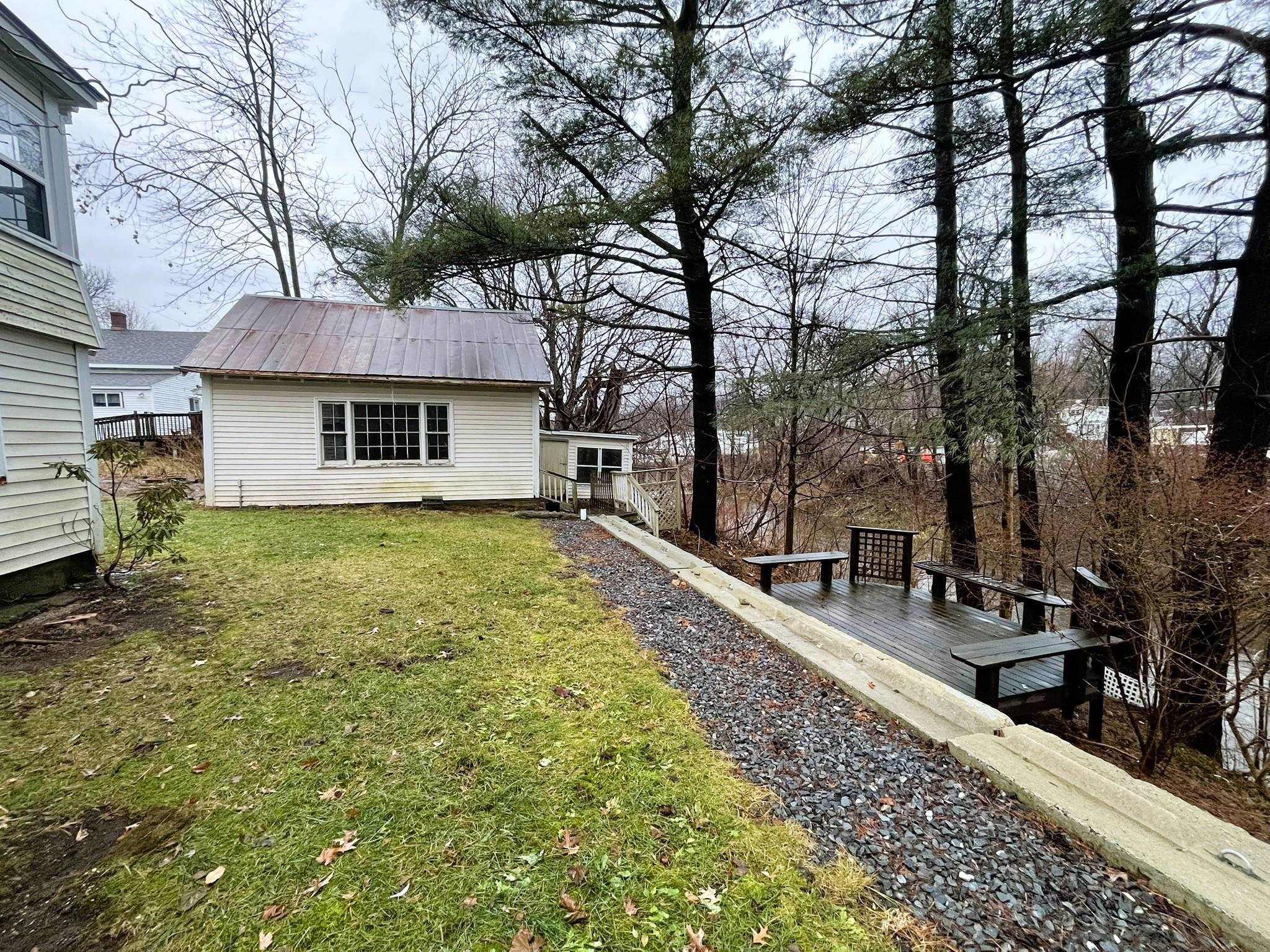 Affordable housing on your holiday wish list? Look no further! This charming property, originally a single-family home, was thoughtfully converted into a duplex many years ago and offers flexible living options to suit a variety of needs. The first-floor unit features two bedrooms, a full bath with classic wainscoting and a pedestal sink, kitchen with a breakfast bar, dining room with hardwood floors, and large living room highlighted by a gas stove and peaceful views of the South Stream. The second-floor unit offers a small bedroom, full bath with a brand-new toilet, kitchen with glass-front cabinets, and a spacious living room with a large closet. Both units include laundry hookups—the upstairs apartment has a washer and dryer, while the downstairs has space in the hallway for a stacked front-load unit. The dry basement with poured concrete floor provides abundant storage and includes a walk-out workshop. Additional features include town water and sewer, a shared forced hot air furnace and oil tank, separate electric meters and hot water tanks, and a detached garage with room for two cars, with attic storage above, plus an additional shed. Enjoy the outdoors with two wood decks, a level backyard, and newly installed concrete retaining wall. The home sits at a high elevation above the riverbed, meaning it is not in a flood zone, allowing you to enjoy river views or access with peace of mind. A versatile property with charm, functionality, and value—call today!