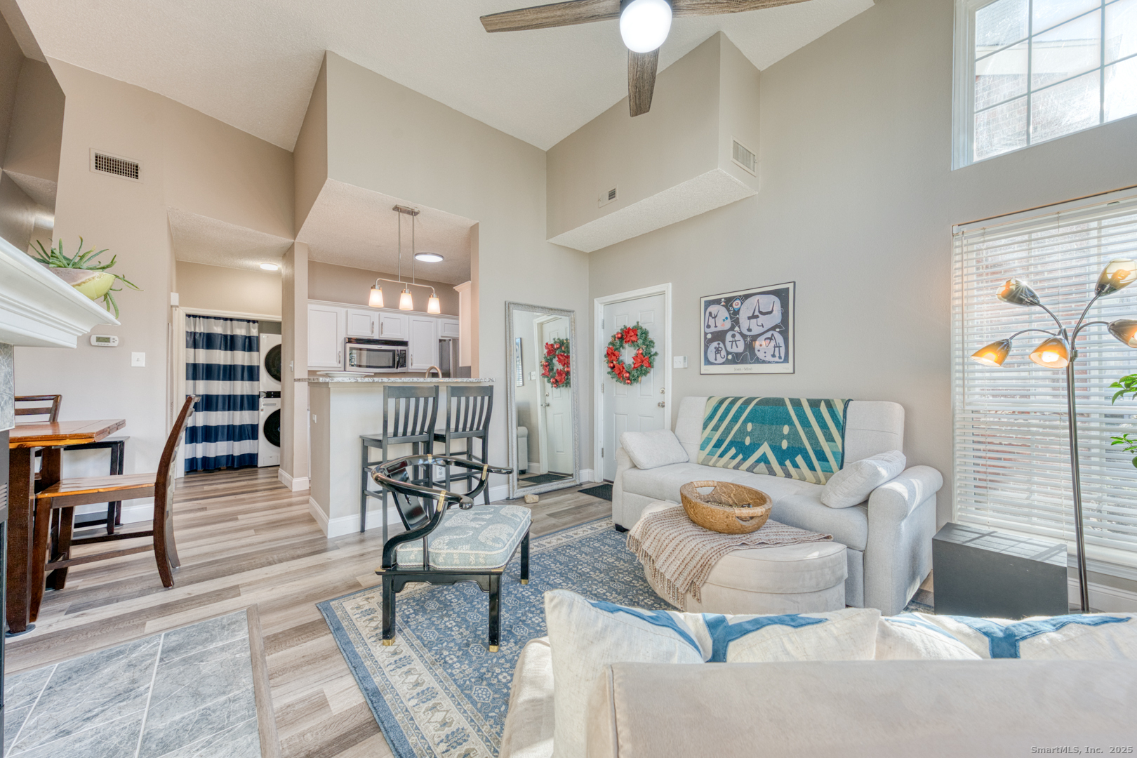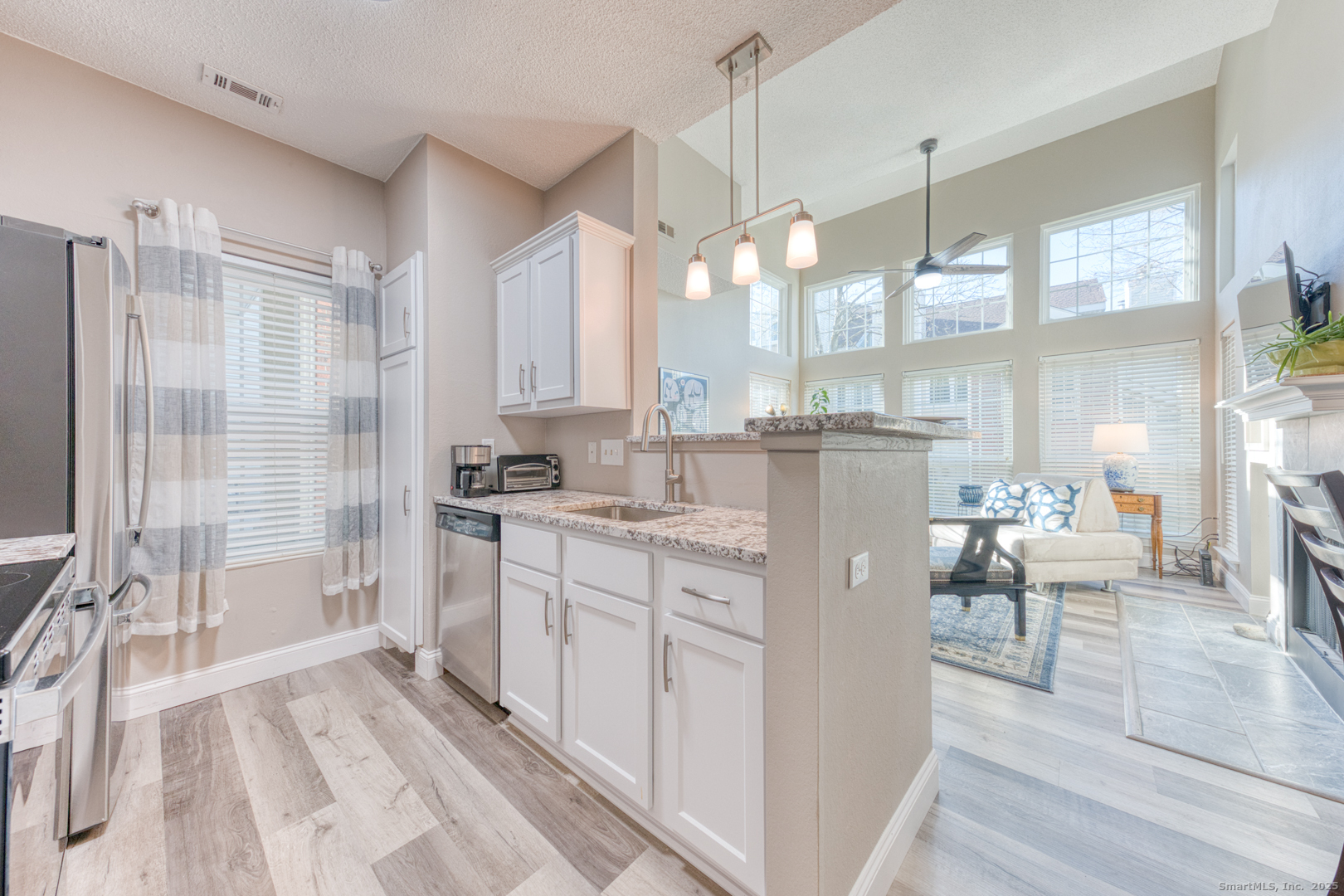 Discover easy one-level living in this beautifully updated condo with private rare courtyard facing location, perfectly situated in one of Middletown's most sought-after communities in the desirable Westfield section. This sun-filled home features soaring 16' ceilings in the open living and dining room, creating a bright and airy atmosphere ideal for both everyday living and entertaining. A cozy wood-burning fireplace adds warmth and charm, while large windows invite abundant natural light throughout. The kitchen has been tastefully renovated with granite counters, sleek new cabinetry, and modern appliances-ready for your next culinary creation. Both full baths have been stylishly updated, and the home's modern mechanicals provide comfort and peace of mind. With two spacious bedrooms, including a primary suite with a private bath, this condo offers a comfortable, thoughtfully designed floor plan. Step outside to a private patio area perfect for relaxing or dining al fresco. Enjoy the convenience of guest parking and an array of amenities, including a sparkling pool and tennis courts. Located just minutes from I-91, downtown Middletown, and shopping, this home offers the perfect blend of comfort, style, and convenience-ideal for today's low-maintenance lifestyle. Spring will bring the custom planted iris, day lilies, lavender and Hostas the current owner planted in the gardens surrounding this unit. Don't miss this opportunity to live in one of Westfield's premier communities