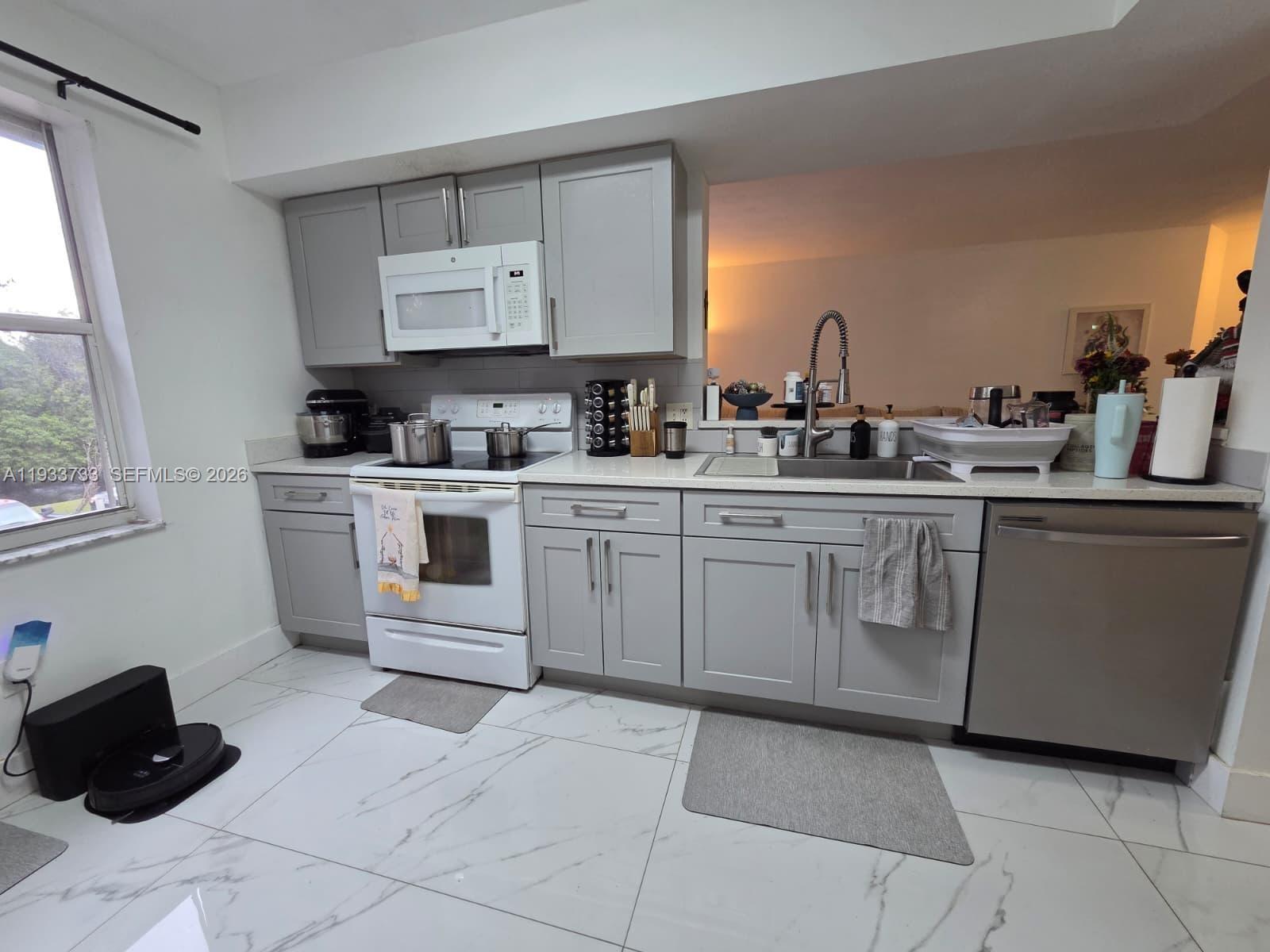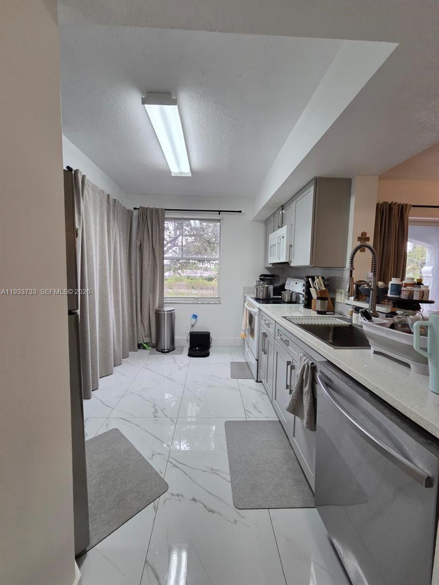 Welcome to your new home at La Via Condominium in Pembroke Pines. This stunning 2-bedroom, 2-bath condo features high ceilings, an open kitchen with washer and dryer, granite floors in all areas, and laminate wood flooring in the bedrooms. Enjoy the balcony and a large primary bedroom with a walk-in closet. Community amenities include a clubhouse, swimming pool, gym, playground, tennis. Conveniently located near malls, hospitals, highways, and great restaurants.
