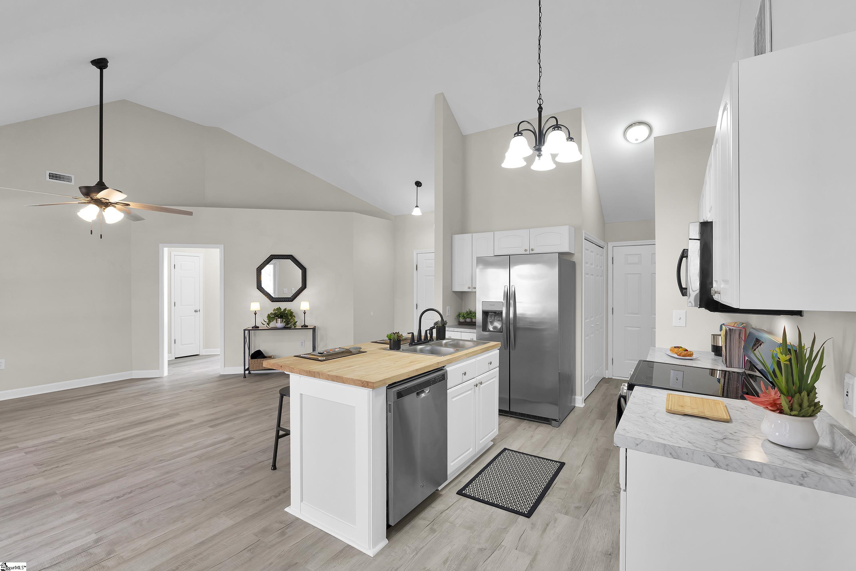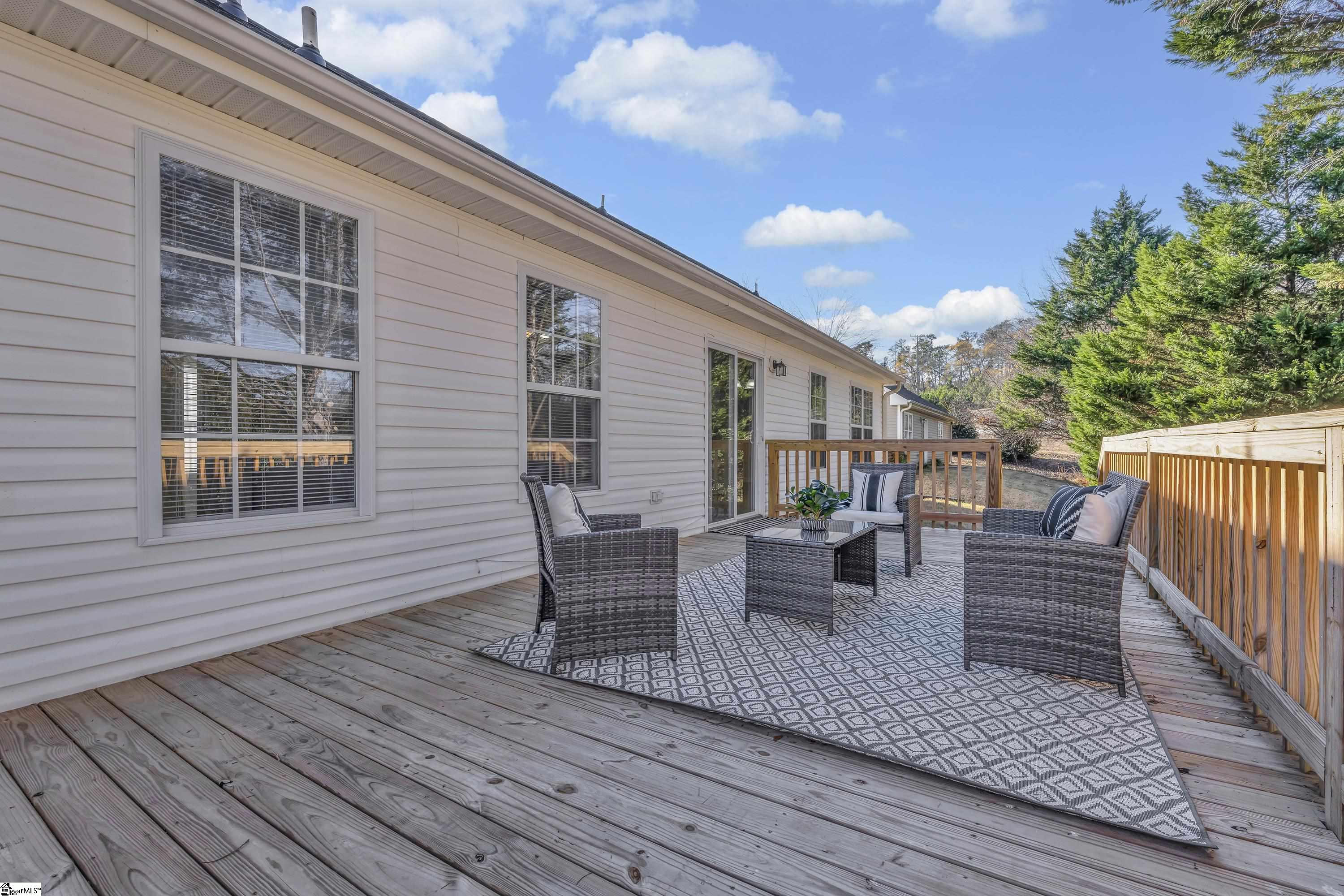 Welcome Home to 3 Rivereen Way~ A Move-In Ready Gem! This beautifully refreshed single-story ranch combines the perfect blend of modern style and everyday ease. Featuring 3 bedrooms, 2 full baths and 1, 171 sq ft, this home truly lives larger than its size suggests. The open-concept layout and vaulted ceilings create an airy, light-filled space that feels both spacious and inviting. You'll absolutely love the 2025 upgrades throughout including, a brand new roof, new 12x24 ft. deck, luxury vinyl plank flooring (no carpet!), fresh interior paint, and new lighting. The kitchen is a standout with new countertops, a butcher block island with seating, and new stainless appliances, including a 5-burner glass cooktop and a large refrigerator with water and ice dispenser. As an added bonus, the HVAC system is just 3 years old. Step outside to enjoy your expansive deck, perfect for relaxing and hosting weekend gatherings, overlooking a private backyard with no rear neighbors. Nestled in a quiet, well-kept subdivision with no HOA, this home offers both peace and freedom. Enjoy easy access to shopping, dining, and more, all just minutes away. Greenville Tech's Brashier Campus and Nature Trail are right at your doorstep. Downtown Greenville and Greenville-Spartanburg Airport (GSP) are each under 30 minutes away, putting everything the Upstate has to offer easily within your reach. Whether you're a first-time homebuyer; seeking a turnkey invest with strong passive income or simply looking to downsize into a well-appointed property, this updated move-in ready home checks all the boxes for comfort and everyday enjoyment.