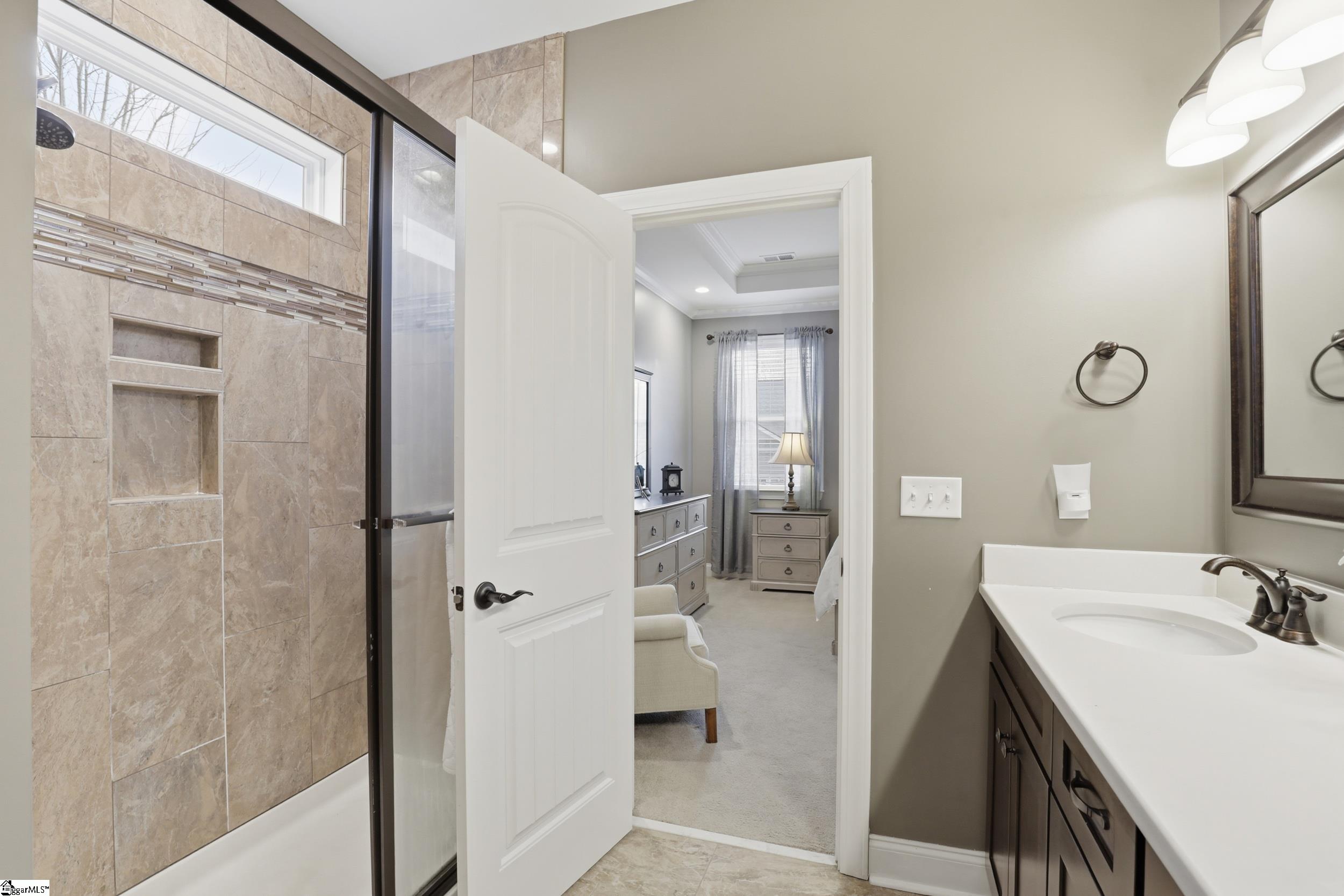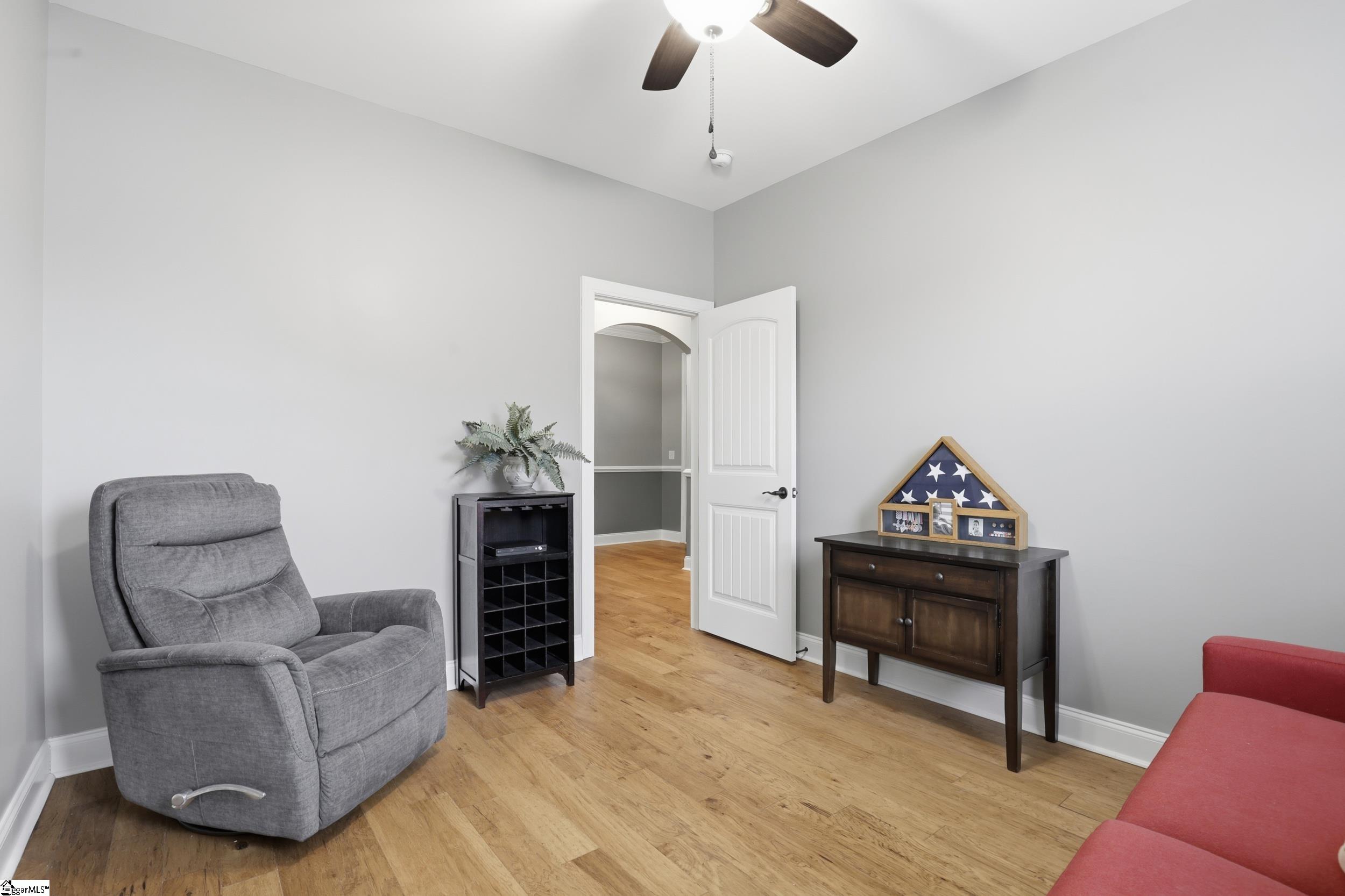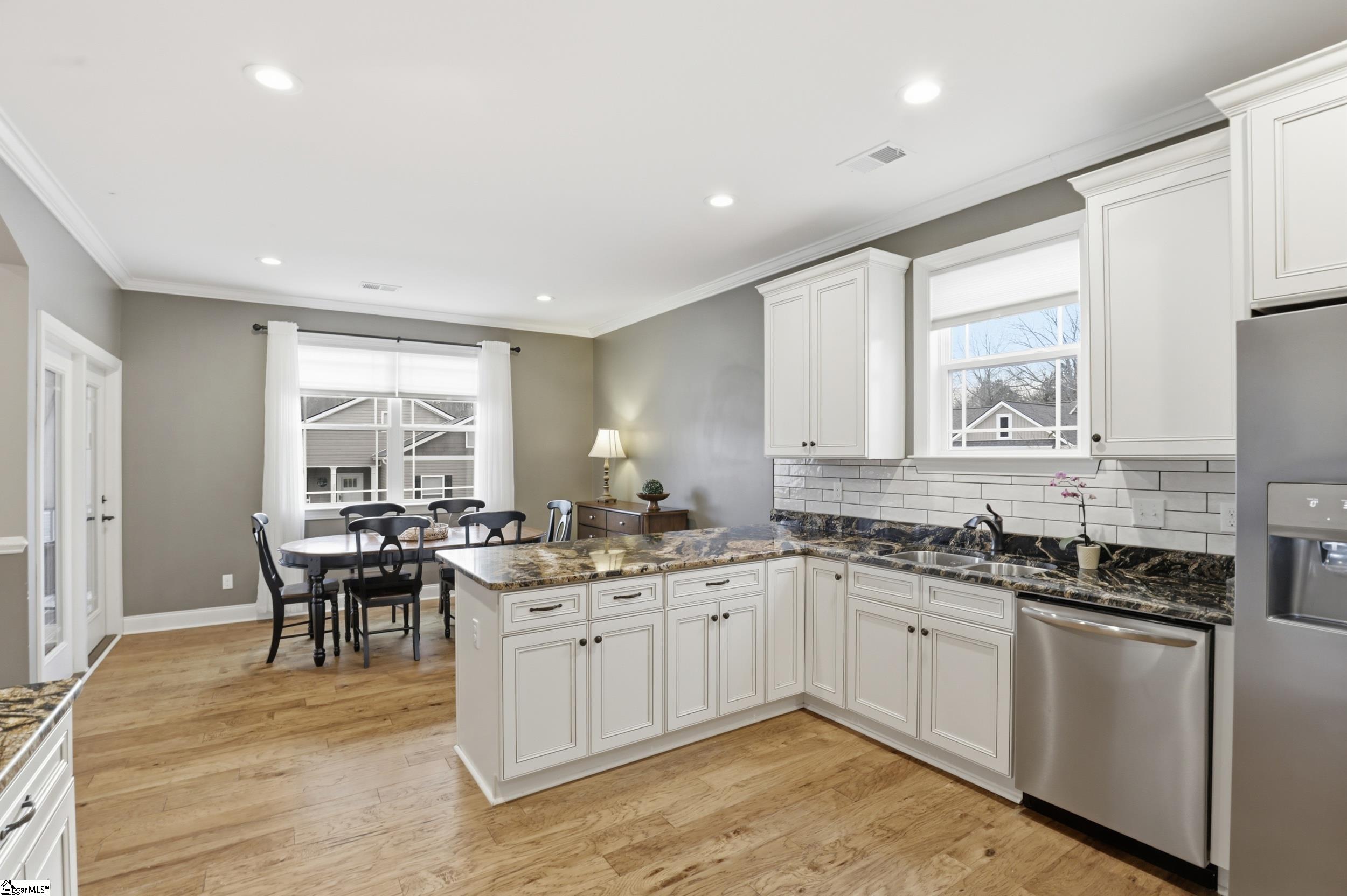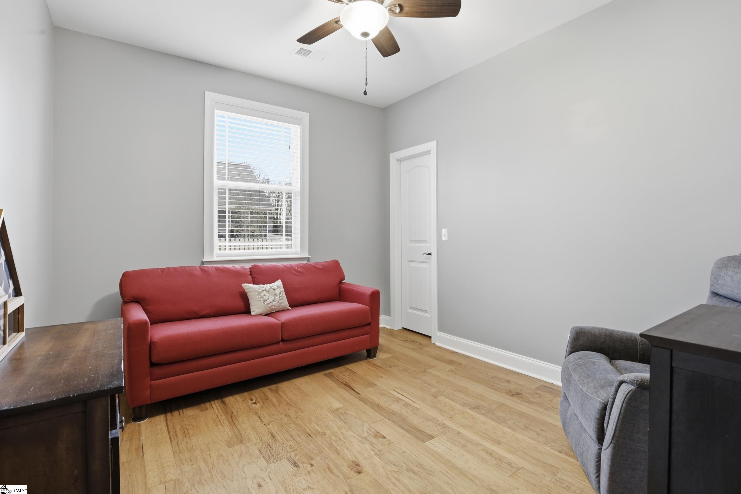 Welcome home! This well-maintained 3 bedroom, 2 bath craftsman style home is ready for new owners! This home is nestled on a desirable corner lot in the sought-after gated community, Cottages At Landrum. Conveniently located near schools, shopping, and restaurants, this move-in-ready gem blends comfort, style, and functionality. Inside, hardwood floors flow through the main living areas with carpet in the bedrooms. The kitchen features beautiful granite countertops, a spacious walk-in pantry plus an additional closet-style pantry, abundant cabinetry for storage, and stainless-steel appliances. The living room showcases cathedral ceilings and a cozy stone gas-log fireplace—perfect for relaxing on those cold winter nights. Retreat to the spacious primary suite offering two large walk-in closets and a luxurious ensuite bath with tiled shower, dual sinks, and linen closet. A large screened-in porch extends your living space outdoors. Whether you're enjoying your morning coffee or entertaining, this space provides enjoyment year-round. Don't miss out on this quality-built home, call today!