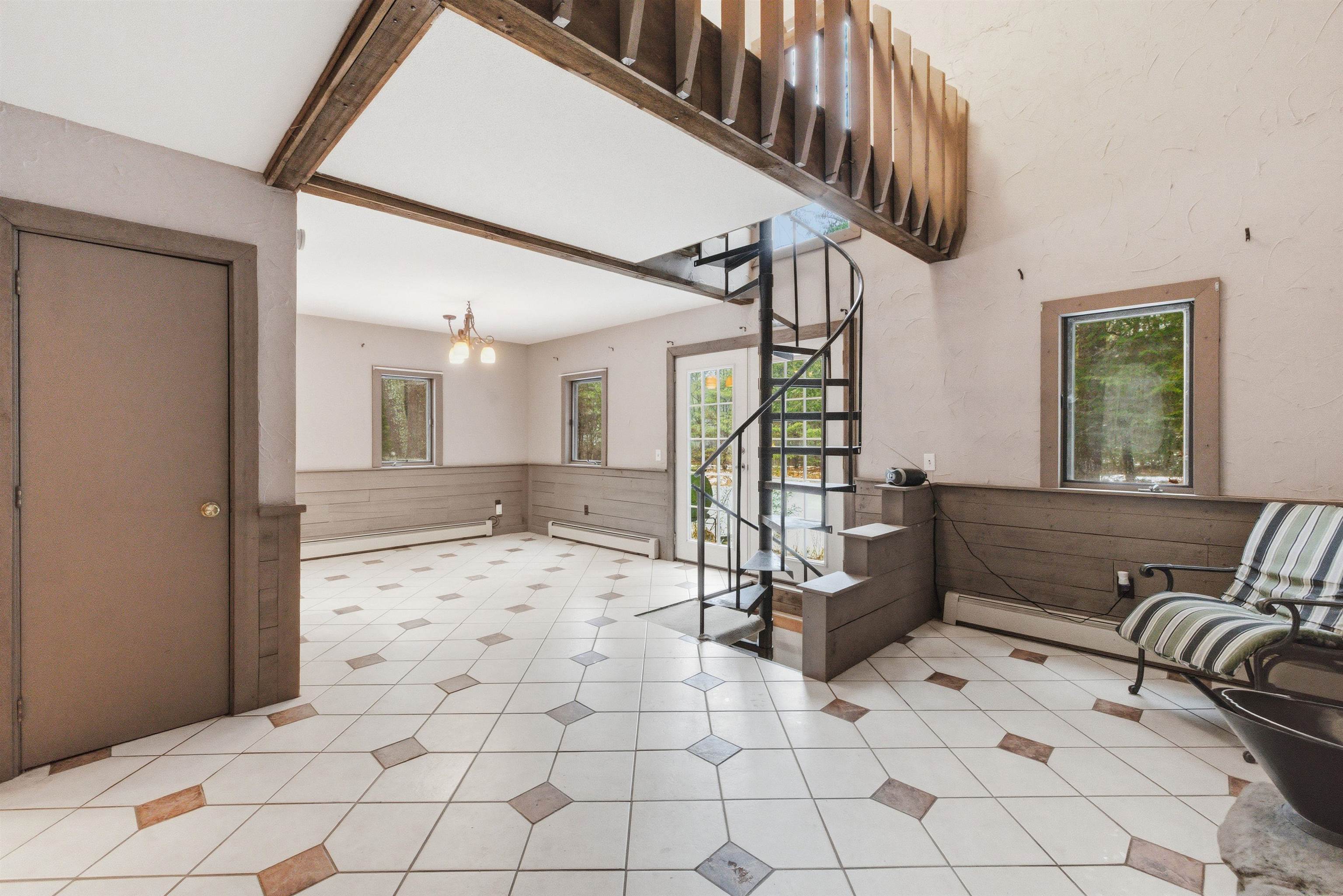 Tucked away on 10. 02 private acres yet less than ten minutes from downtown Claremont’s shops and restaurants. This property exudes seclusion and convenience all at your recreational disposal. Welcomed by a large pond in the front yard, the curb appeal sets a peaceful tone, while the home itself invites you to slow down and stay awhile. Inside, warm character abounds, anchored by a wood stove and a spiral staircase that leads to a partially finished basement, perfect for additional living space, a studio, or retreat. Recent updates include a new drilled well and a new standing seam roof, offering both peace of mind and long-term value. Outdoor living is where this property truly shines. An oversized covered deck provides the ideal setting for morning coffee, evening gatherings, or simply enjoying the surrounding natural beauty. Recreational amenities include a basketball and tennis court, while a charming cabin adds endless possibilities such as additional guest space, a creative studio, or a quiet escape. The two-car garage is truly the icing on the cake offering additional storage on the second level. This is a property that feels worlds away, yet keeps you effortlessly connected to town - a rare opportunity to enjoy space, privacy, and lifestyle without sacrificing location.