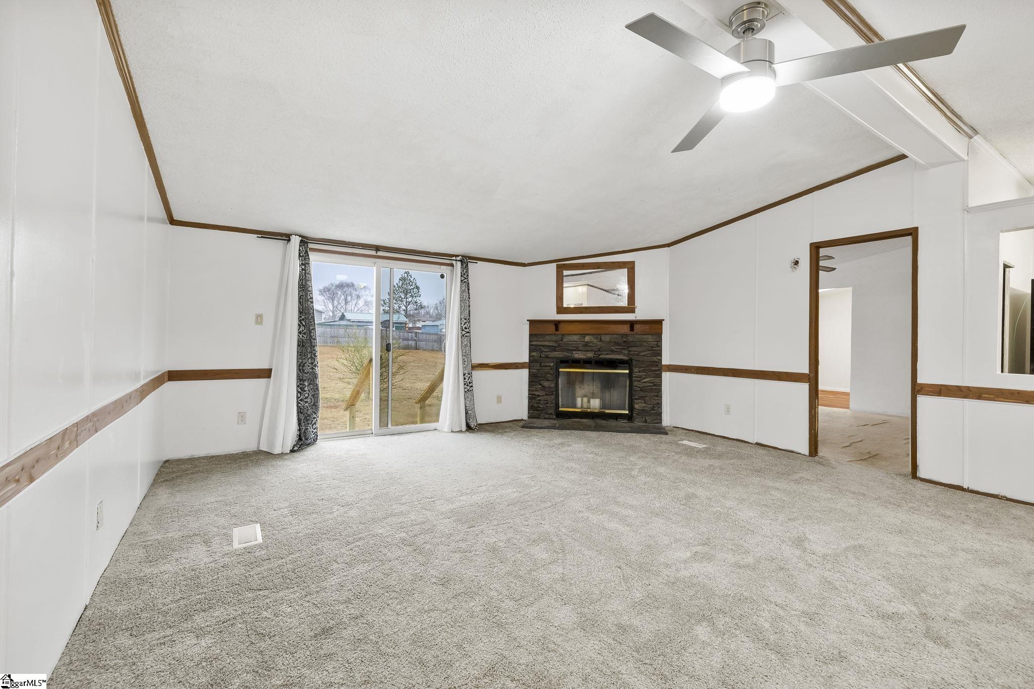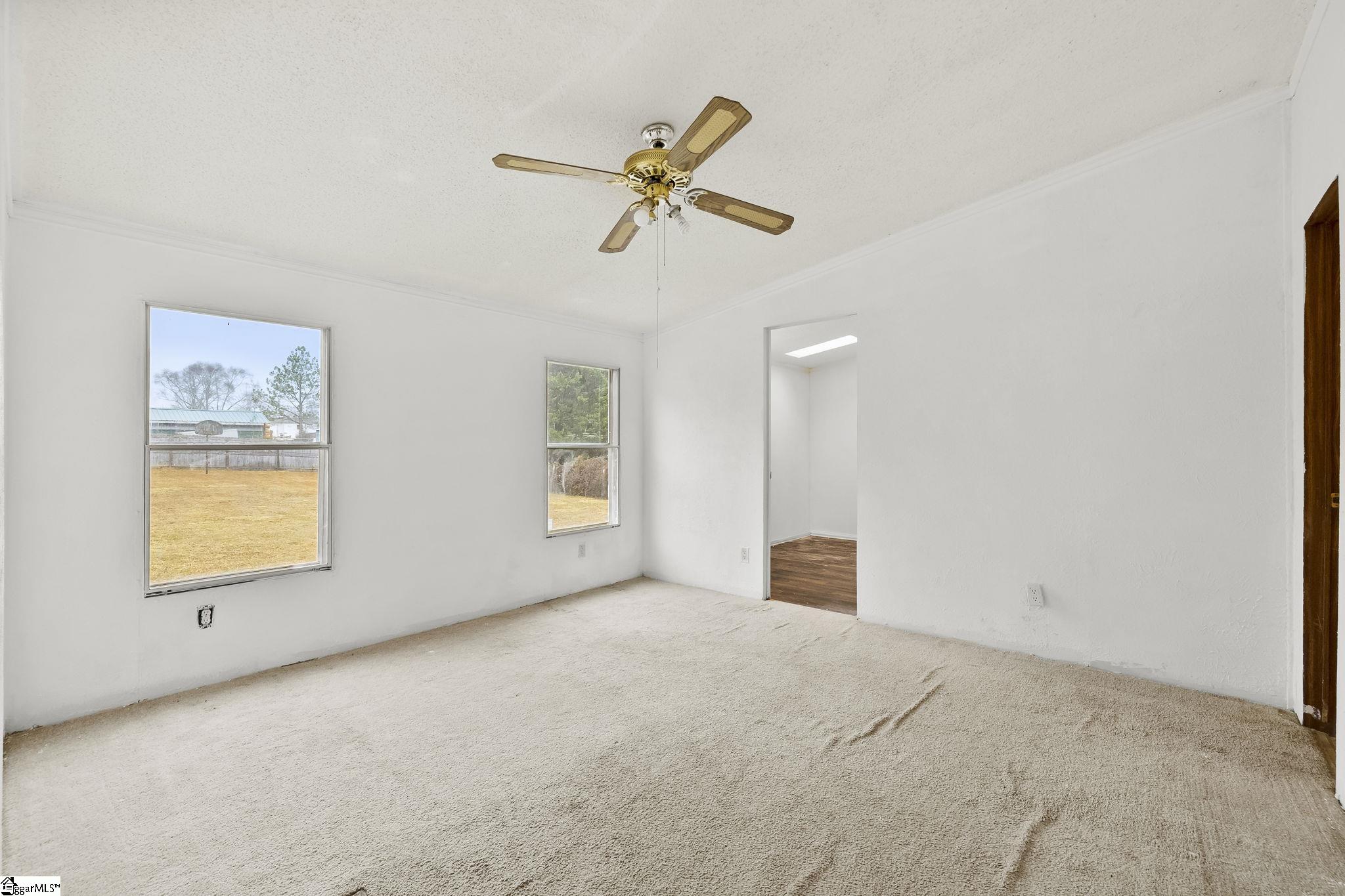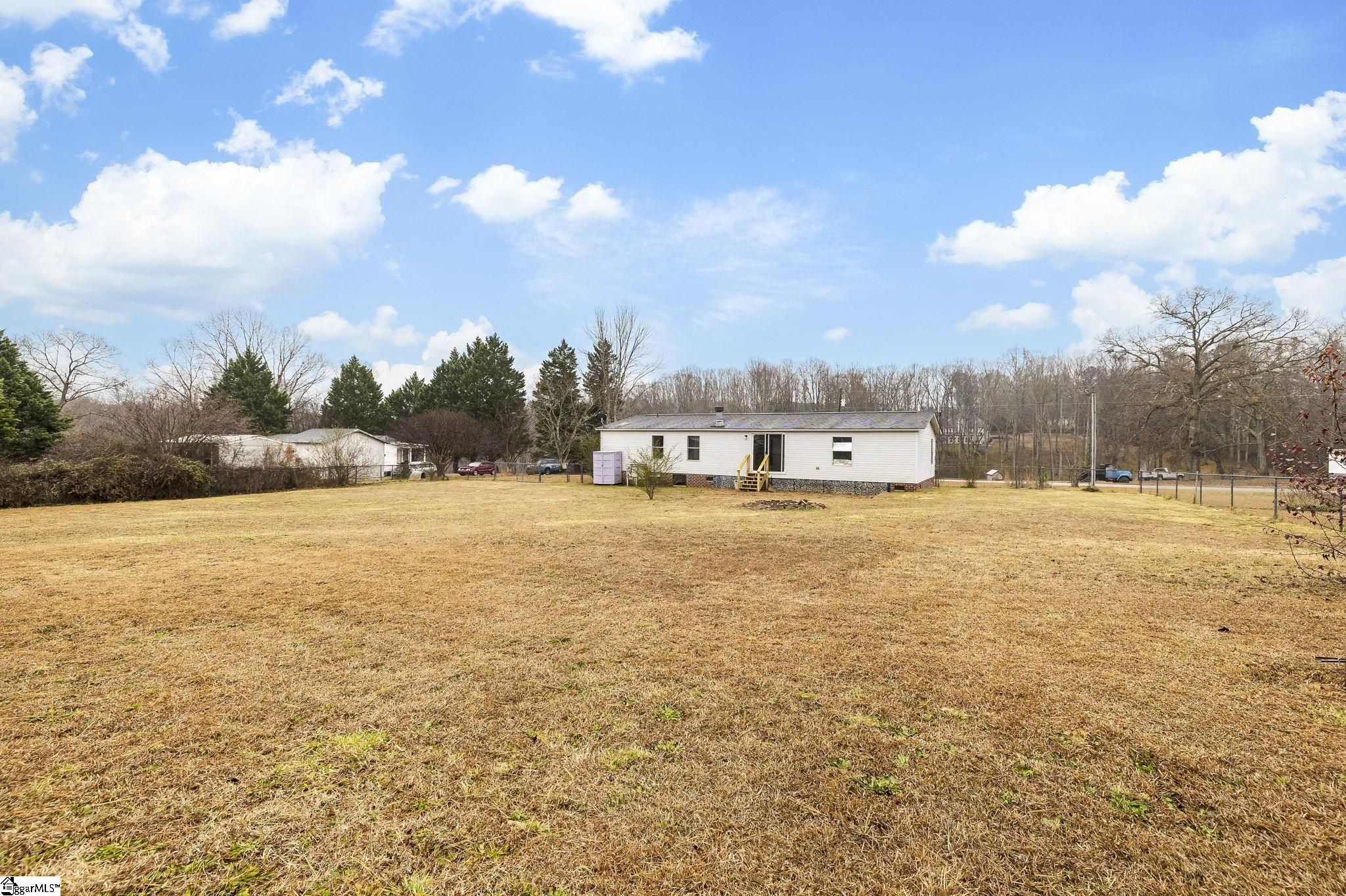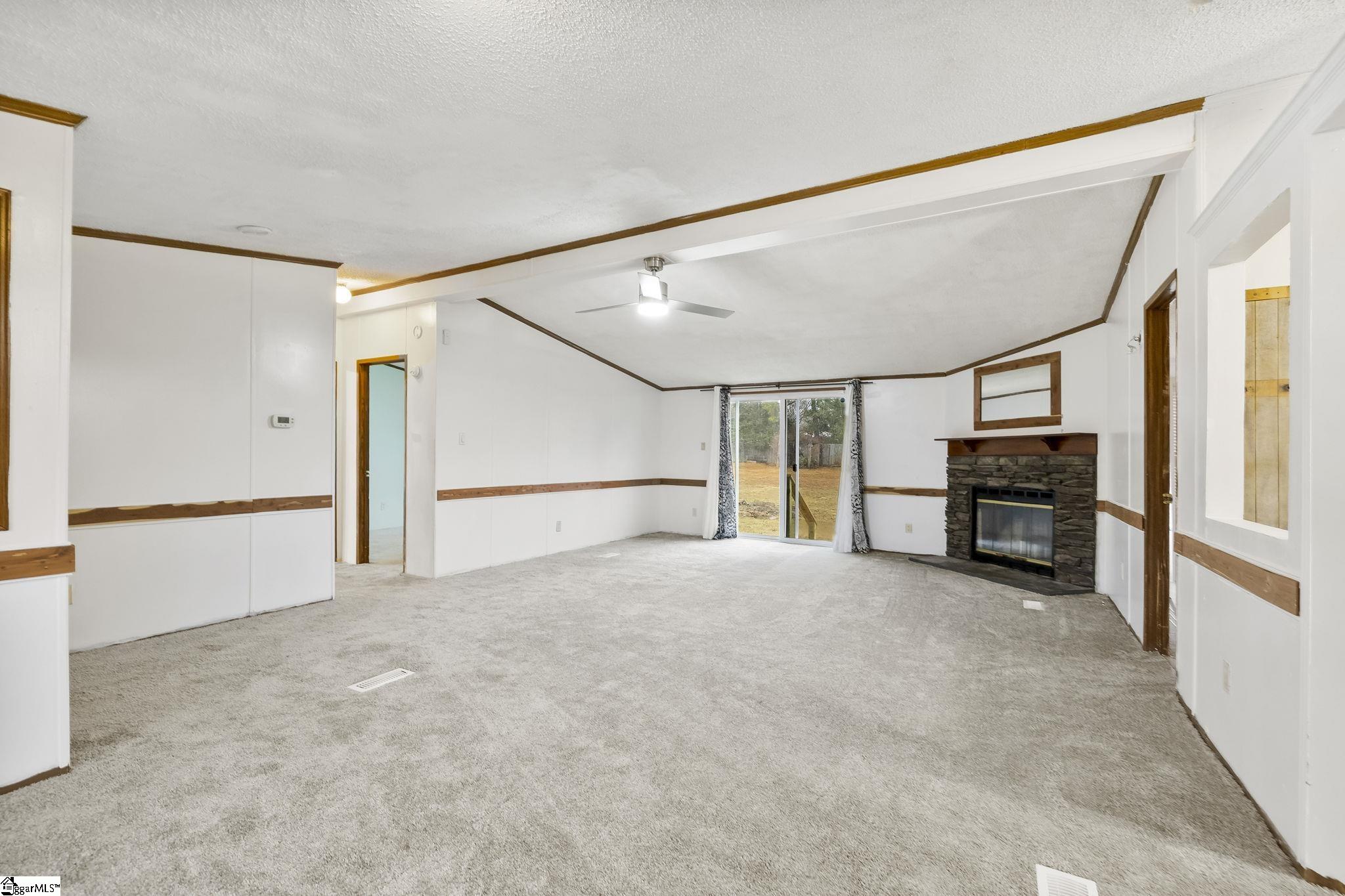 219 Campbell Lake Road offers a flexible opportunity on just over half an acre with NO HOA, conveniently located in the heart of Greer. The 3-bedroom, 2-bath home features a huge screened front porch, providing a great space for relaxing and spending time with friends and family. The open-concept floor plan includes a living room with a fireplace and a spacious dining area. The kitchen provides ample prep space and connects easily to the main living areas. A walk-in laundry room off the kitchen includes a separate exterior door for added convenience. The split bedroom floor plan allows privacy for the primary suite, which features an attached bath with dual vanities and a walk-in shower. Two secondary bedrooms share a hall bath. The large, fully fenced backyard includes multiple outbuildings suitable for workshops, storage, or even a she-shed while still offering plenty of space for gardens, playsets, and furry family members! Conveniently located just off Highway 14 in Greer and minutes from Wade Hampton Boulevard and downtown Greer’s shopping, dining, and entertainment. Sold AS IS.