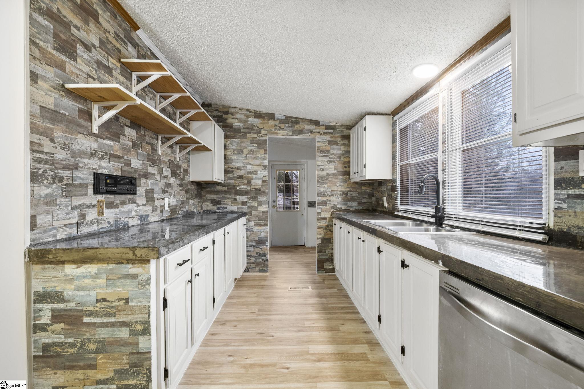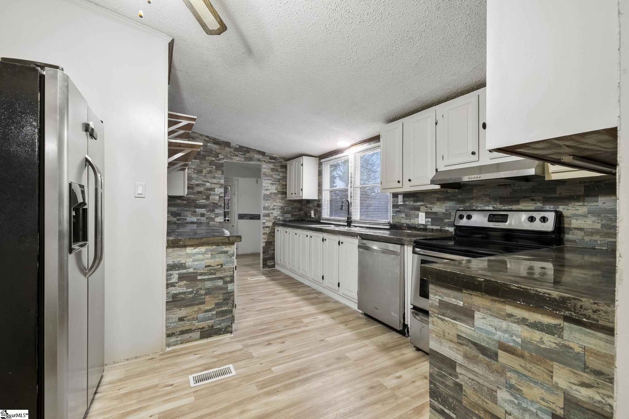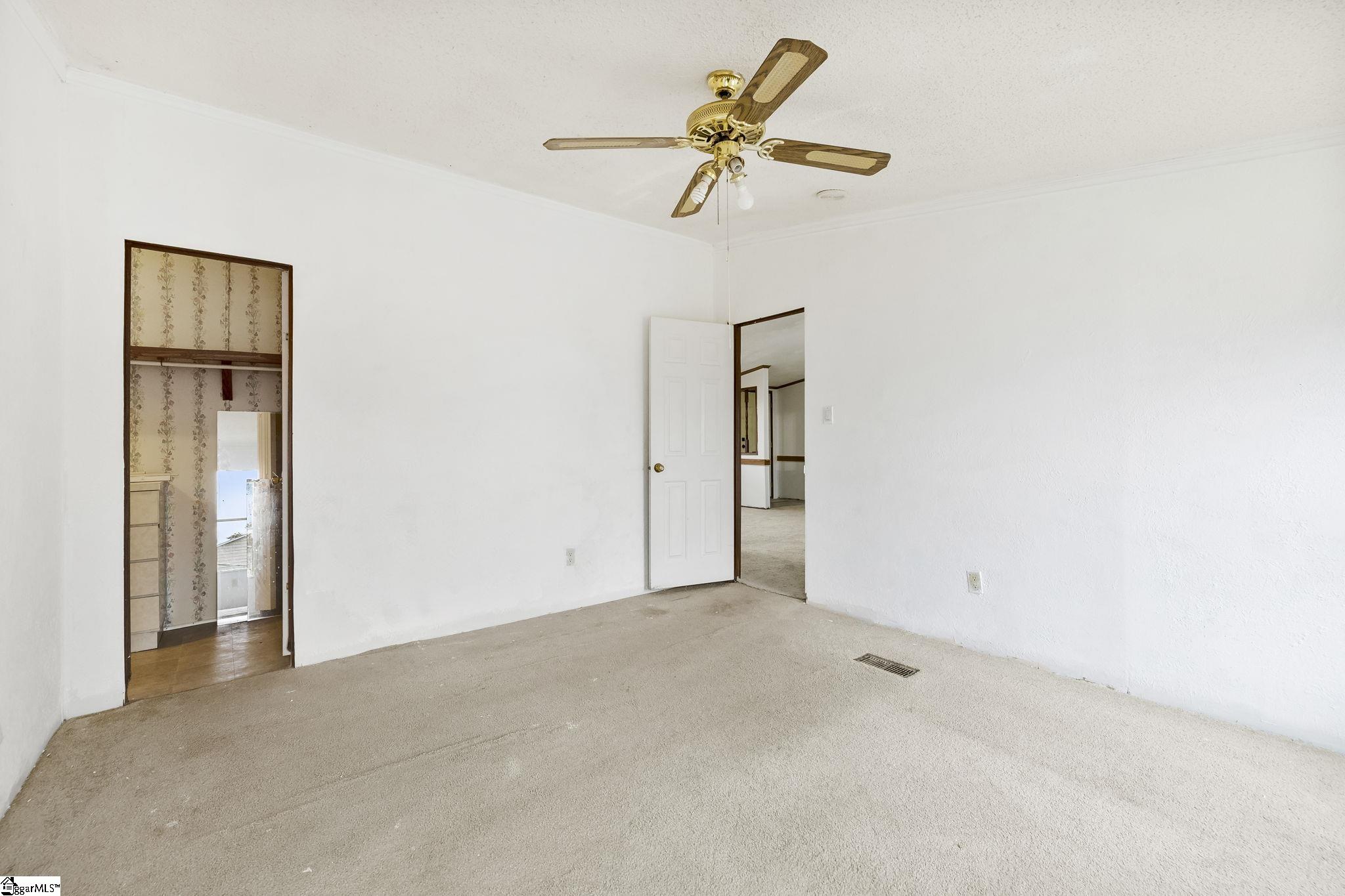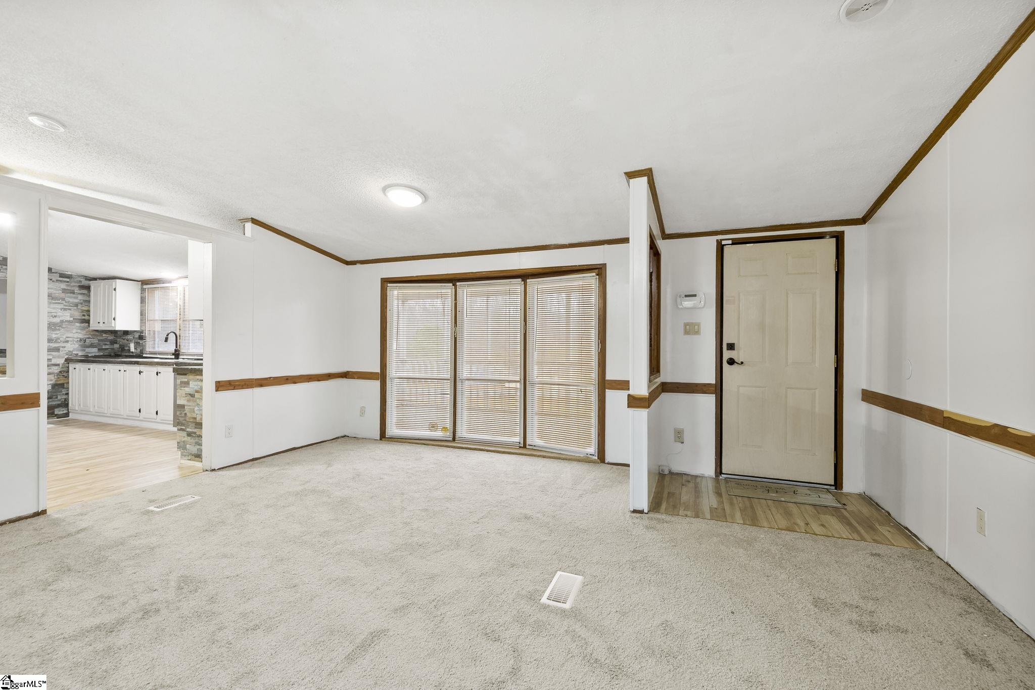219 Campbell Lake Road offers a flexible opportunity on just over half an acre with NO HOA, conveniently located in the heart of Greer. The 3-bedroom, 2-bath home features a huge screened front porch, providing a great space for relaxing and spending time with friends and family. The open-concept floor plan includes a living room with a fireplace and a spacious dining area. The kitchen provides ample prep space and connects easily to the main living areas. A walk-in laundry room off the kitchen includes a separate exterior door for added convenience. The split bedroom floor plan allows privacy for the primary suite, which features an attached bath with dual vanities and a walk-in shower. Two secondary bedrooms share a hall bath. The large, fully fenced backyard includes multiple outbuildings suitable for workshops, storage, or even a she-shed while still offering plenty of space for gardens, playsets, and furry family members! Conveniently located just off Highway 14 in Greer and minutes from Wade Hampton Boulevard and downtown Greer’s shopping, dining, and entertainment. Sold AS IS.