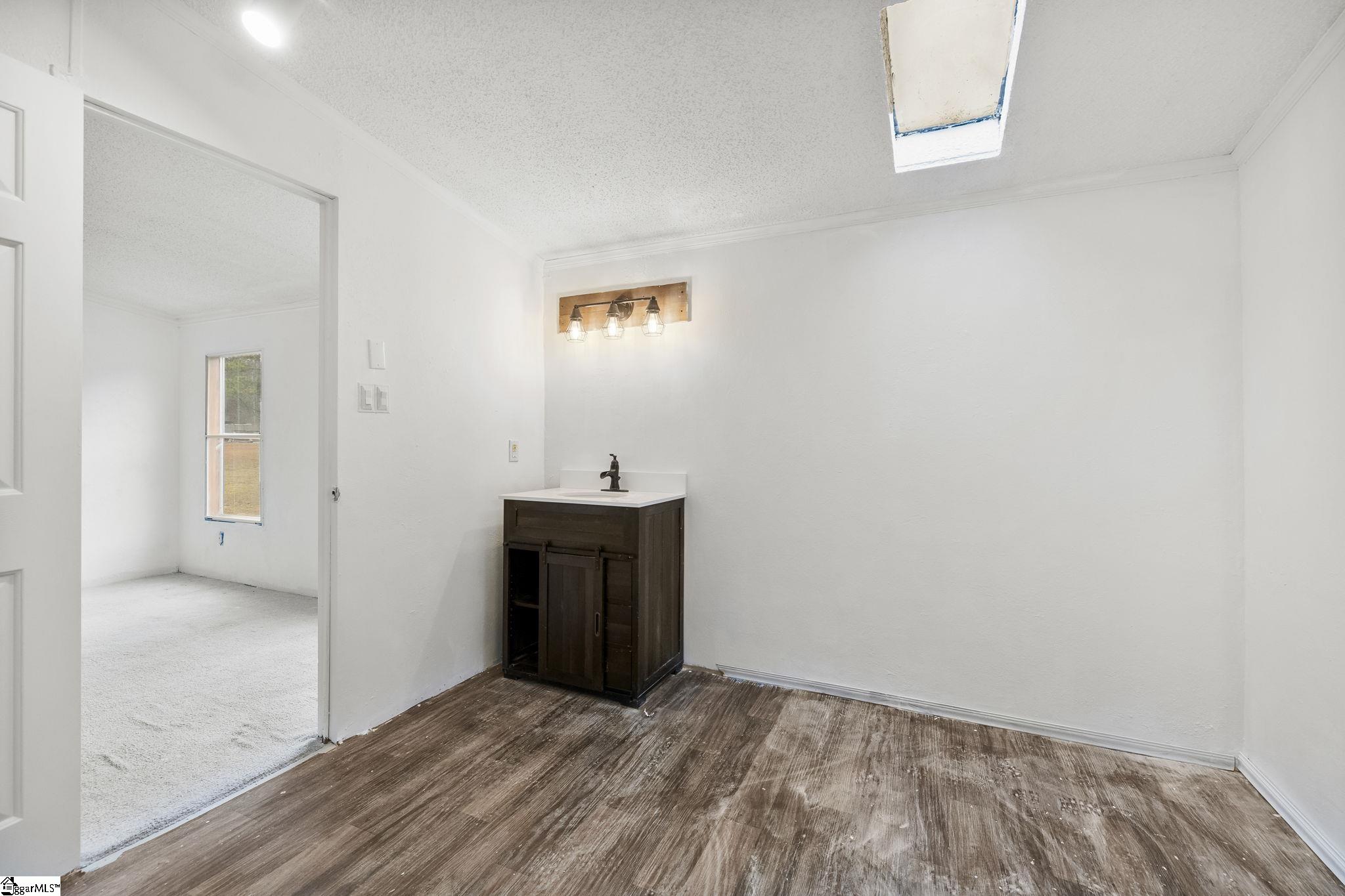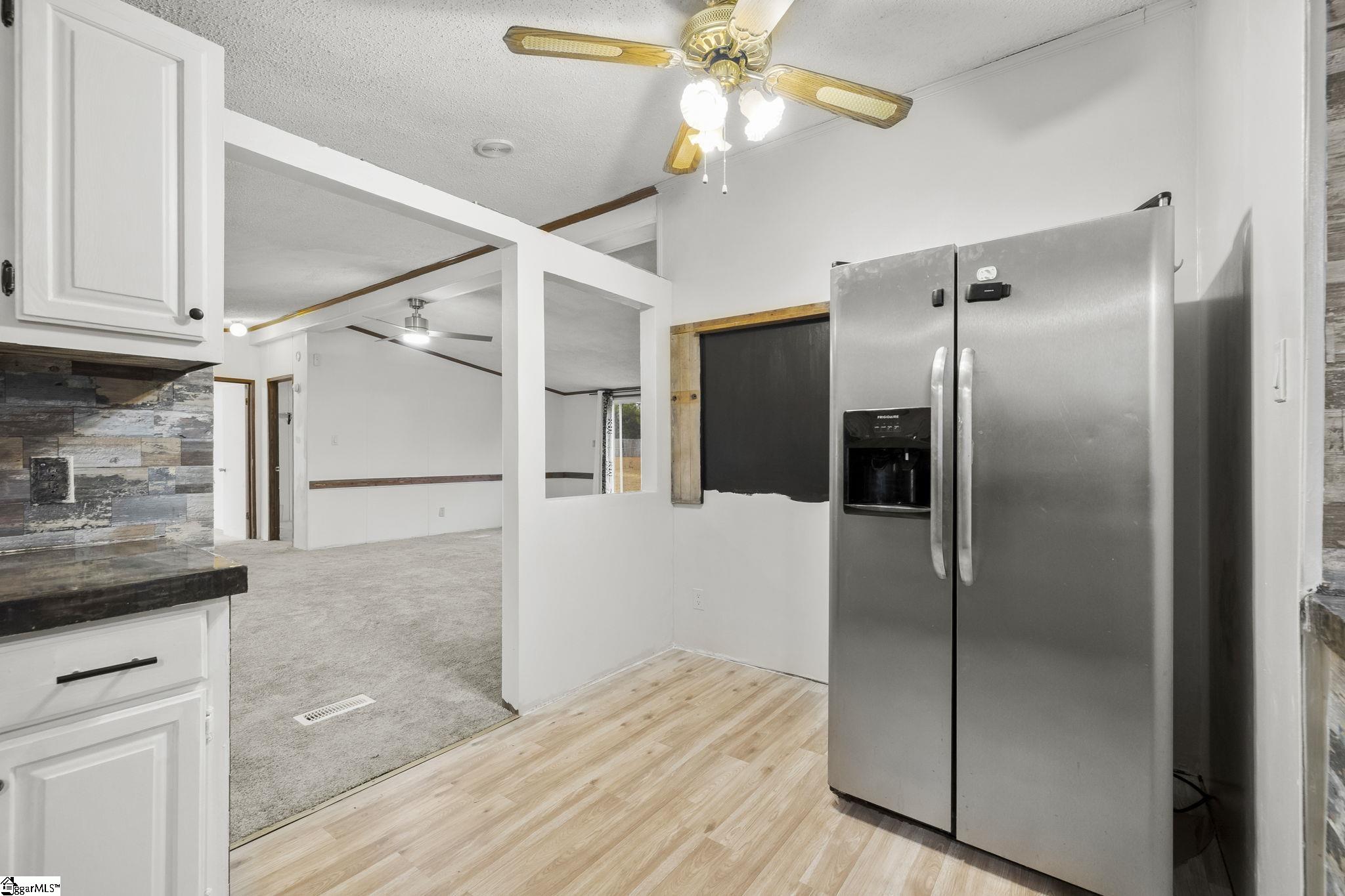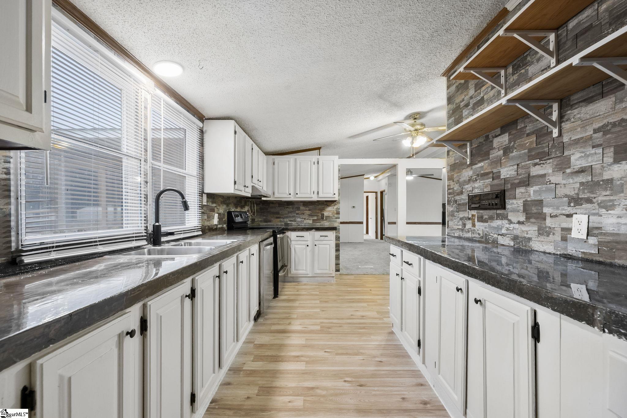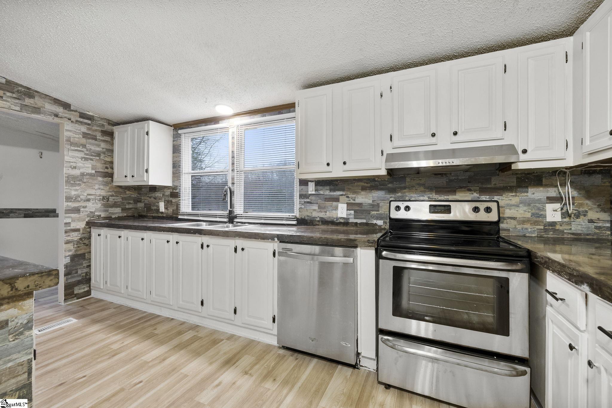 219 Campbell Lake Road offers a flexible opportunity on just over half an acre with NO HOA, conveniently located in the heart of Greer. The 3-bedroom, 2-bath home features a huge screened front porch, providing a great space for relaxing and spending time with friends and family. The open-concept floor plan includes a living room with a fireplace and a spacious dining area. The kitchen provides ample prep space and connects easily to the main living areas. A walk-in laundry room off the kitchen includes a separate exterior door for added convenience. The split bedroom floor plan allows privacy for the primary suite, which features an attached bath with dual vanities and a walk-in shower. Two secondary bedrooms share a hall bath. The large, fully fenced backyard includes multiple outbuildings suitable for workshops, storage, or even a she-shed while still offering plenty of space for gardens, playsets, and furry family members! Conveniently located just off Highway 14 in Greer and minutes from Wade Hampton Boulevard and downtown Greer’s shopping, dining, and entertainment. Sold AS IS.