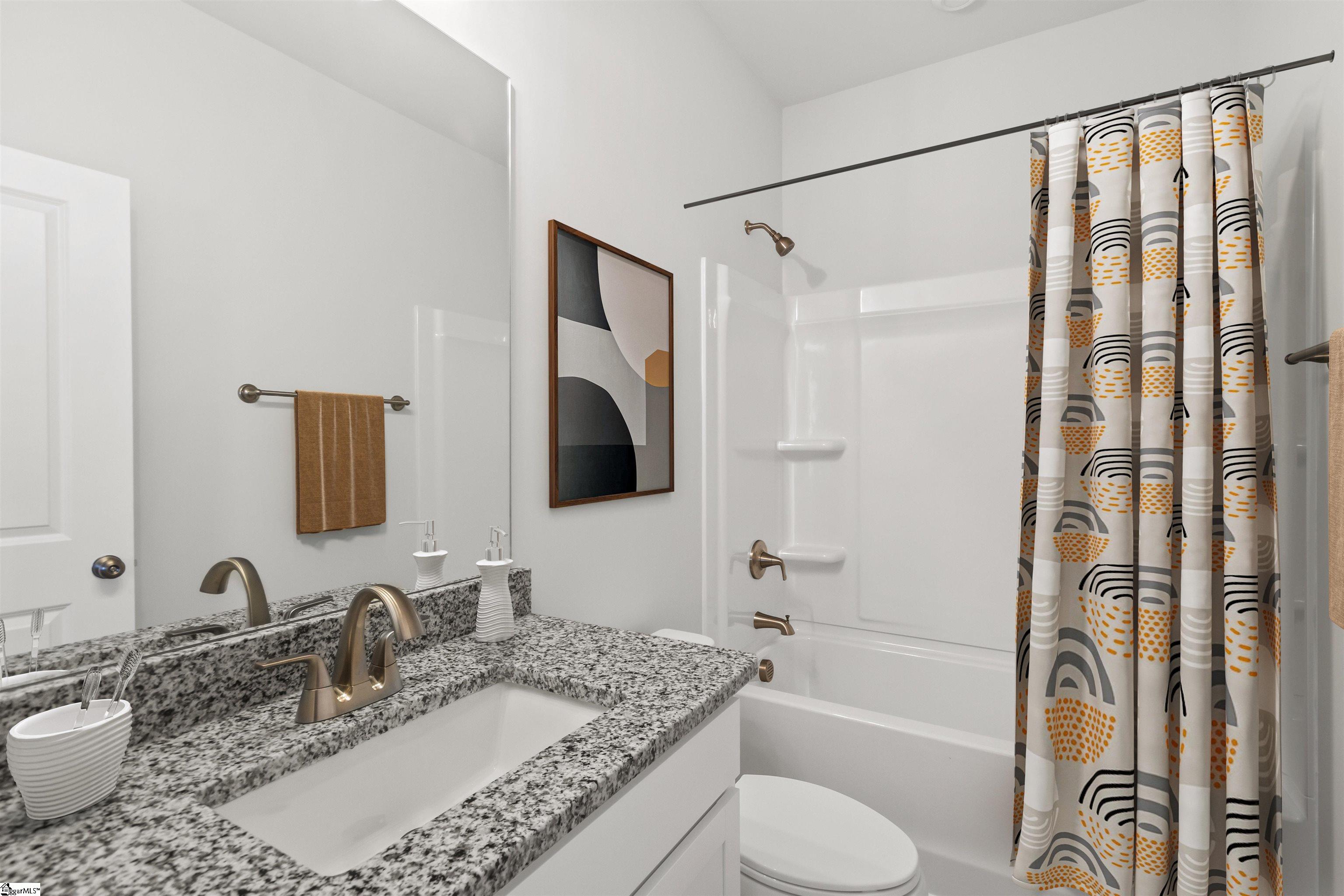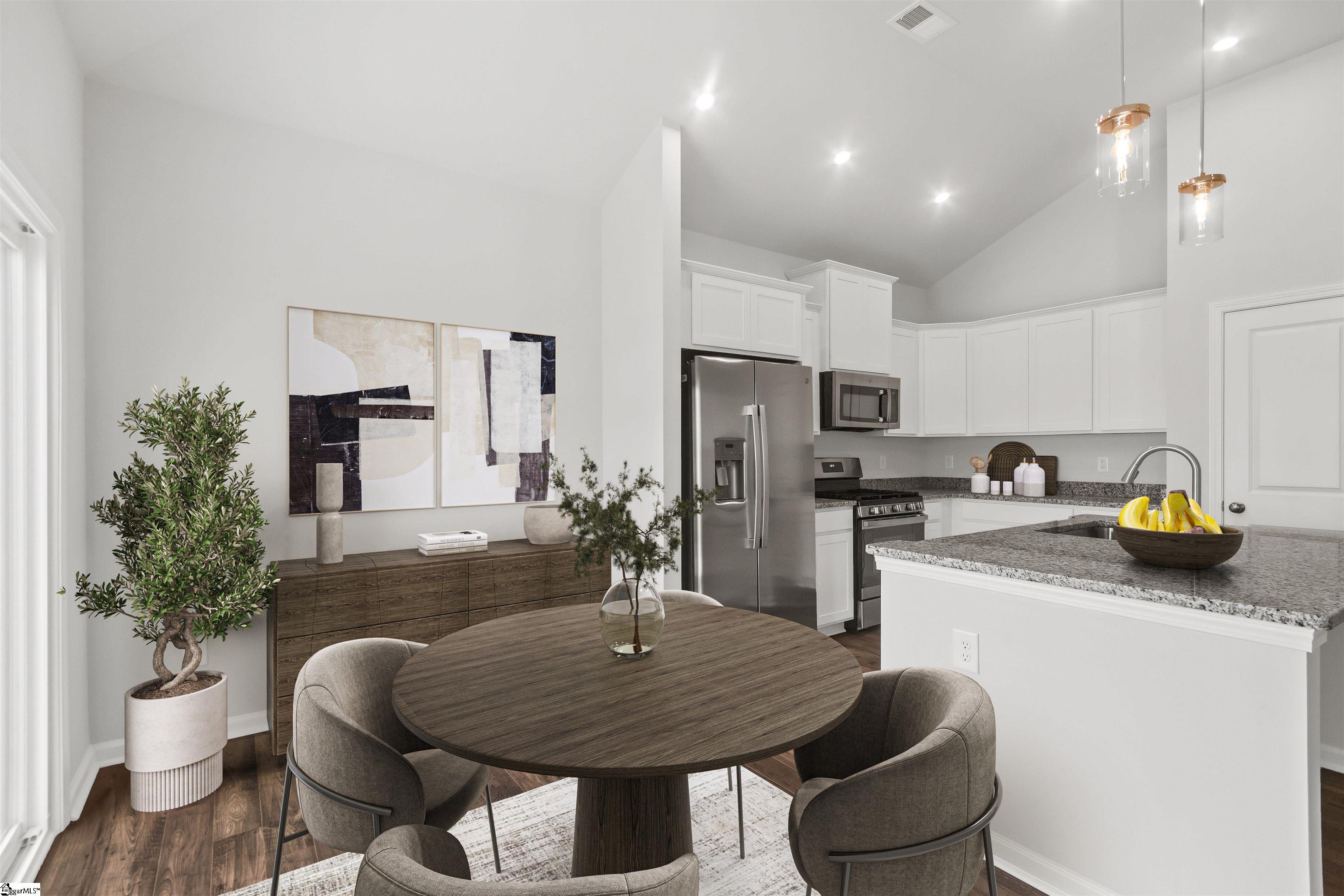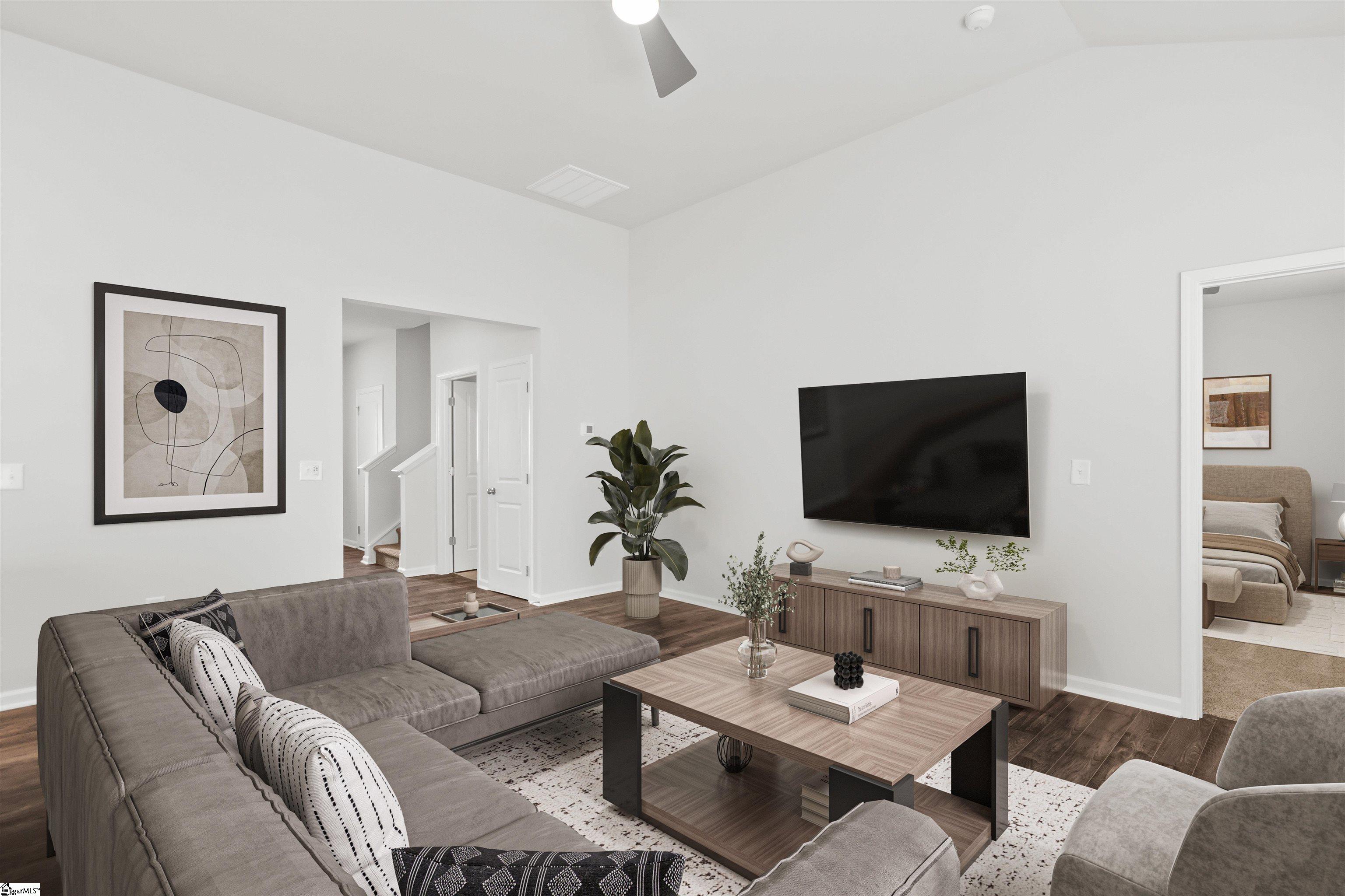 Beautiful, functional, and fitting- The Santee is designed for the way you live. The Santee offers the perfect combination of style and function for your family. With a two-car garage, laundry room, and second/third bedrooms with spacious closets for storage - you have all that's needed to make new memories in this home! The vaulted ceilings in the kitchen and family room provide an impressive amount of light throughout with the Santee's 6ft triple windows. Don't forget about those special touches in the main level primary suite like a walk-in closet, and ensuite bath with a double vanity, standing shower and linen closet. The large flex room is the perfect space for movie night, crafting, or extra space for guests. Schedule your appointment now! Interior photos are virtually staged.