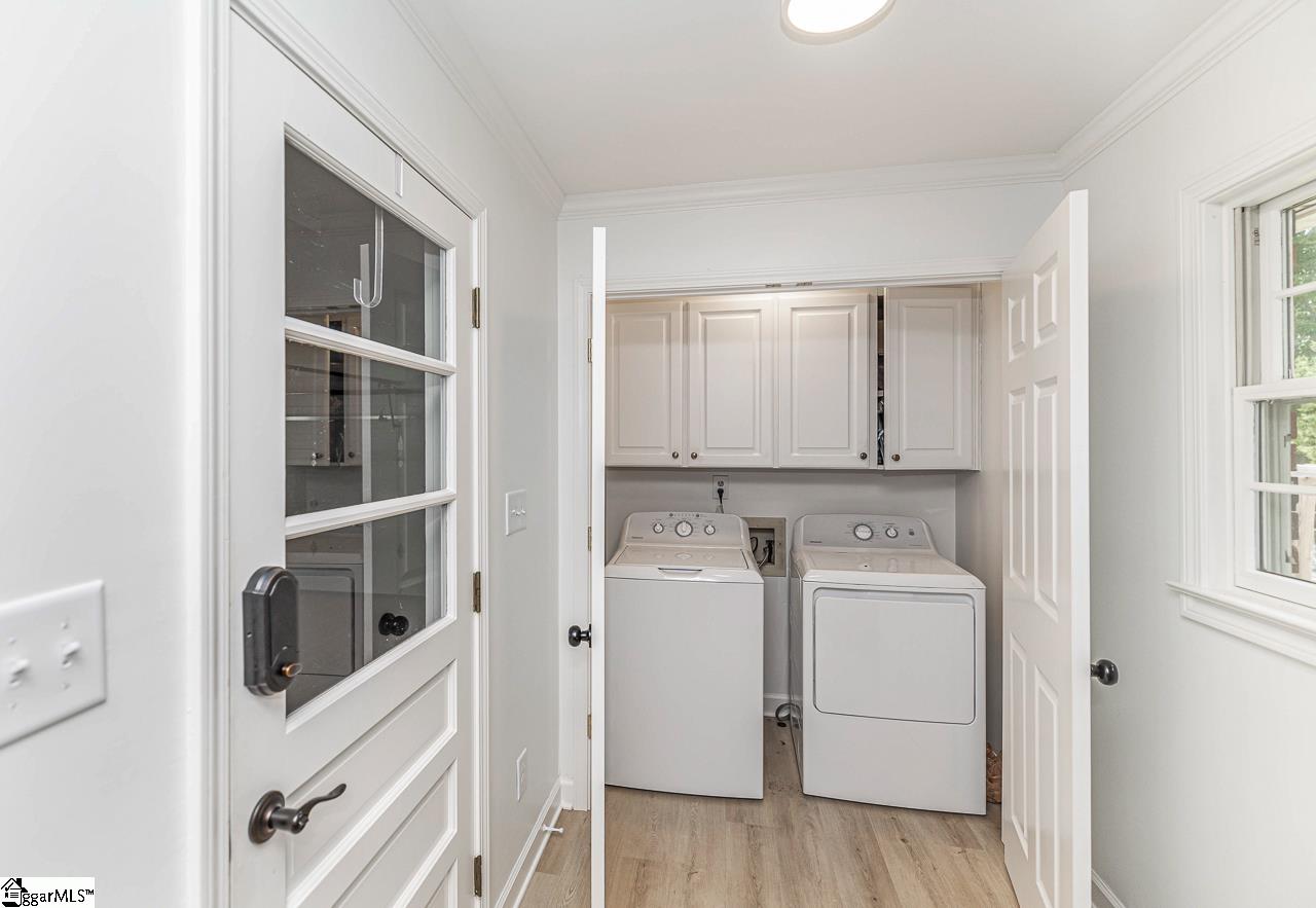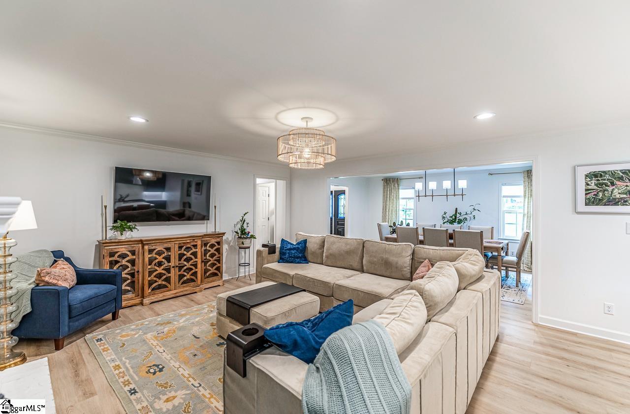 Welcome to Downtown Simpsonville! This updated brick ranch is located in the sought-after Poinsettia subdivision and offers a prime location just minutes from, and even walkable to, Downtown Simpsonville. Enjoy nearby shopping and dining, including Warehouse at Vaughns, Sidewall Pizza, The Slice, and Ice Cream Station, a local favorite. Simpsonville City Park, completely renovated and located next door to Poinsettia, features pickleball, tennis, basketball, a dog park, pavilions, and walking trails. The world-class Heritage Park is just a short drive away with multiple ball fields, scenic walking paths, and the well-known Amphitheater. Step through the front door to find a spacious formal dining room on the left that flows seamlessly into the living space, large den, and stunning kitchen. Two walls have been removed to create an incredible open-concept layout. The kitchen has been taken down to the studs and completely transformed with custom cabinetry, a massive quartz center island, quartz countertops, a gorgeous backsplash, custom pantry, and a GE Café six-burner stove with griddle. Enjoy summer mornings in the beautiful sunroom located just off the den, perfect for coffee, reading, plants, working from home, or whatever best fits your lifestyle. All three bedrooms, including the primary suite, are located on the right side of the home. Luxury vinyl flooring runs throughout, and the hall bathroom has been fully renovated. The home also features all-new light fixtures and crown molding throughout. The garage is equipped with a mini-split system, offering heated and cooled space with the flexibility to be used as additional conditioned square footage, while currently functioning as a traditional garage. Outside, you’ll find a back deck and spacious backyard sitting on over half an acre. The front yard has been completely refreshed with new sod, shrubbery, and an irrigation system. The seller has invested nearly $200, 000 in updates to this absolute beauty. Need to see it to believe it? Schedule your showing today!
