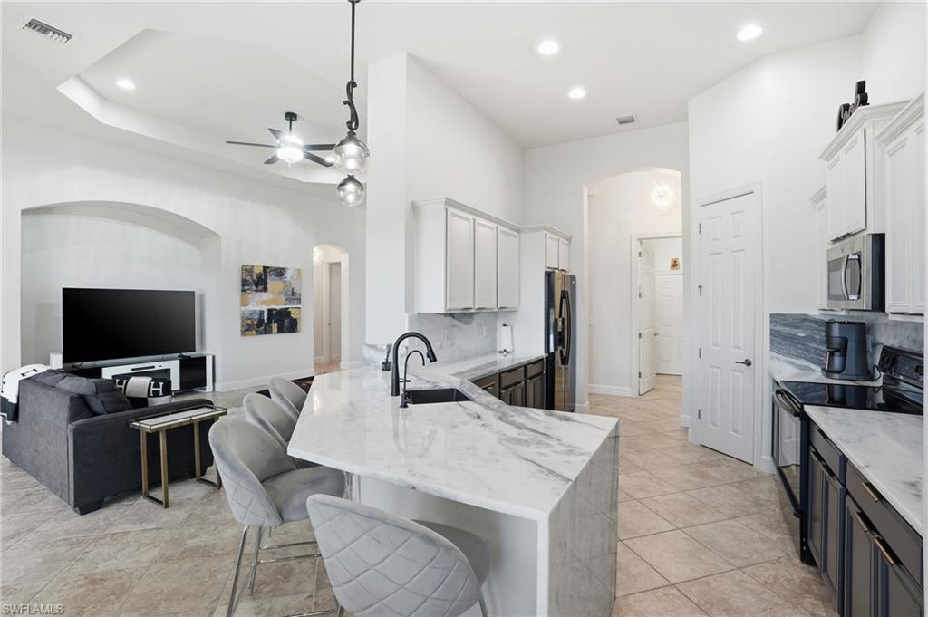 Welcome to Luxury Vacation-Style living, This 4-bedroom, 3. 5-bath residence located in the prestigious, gated Quarry community in Naples, Florida. ** This beautifully maintained home offers desirable **southern exposure** with **sweeping lake and golf course views**, providing exceptional natural light and stunning sunsets.