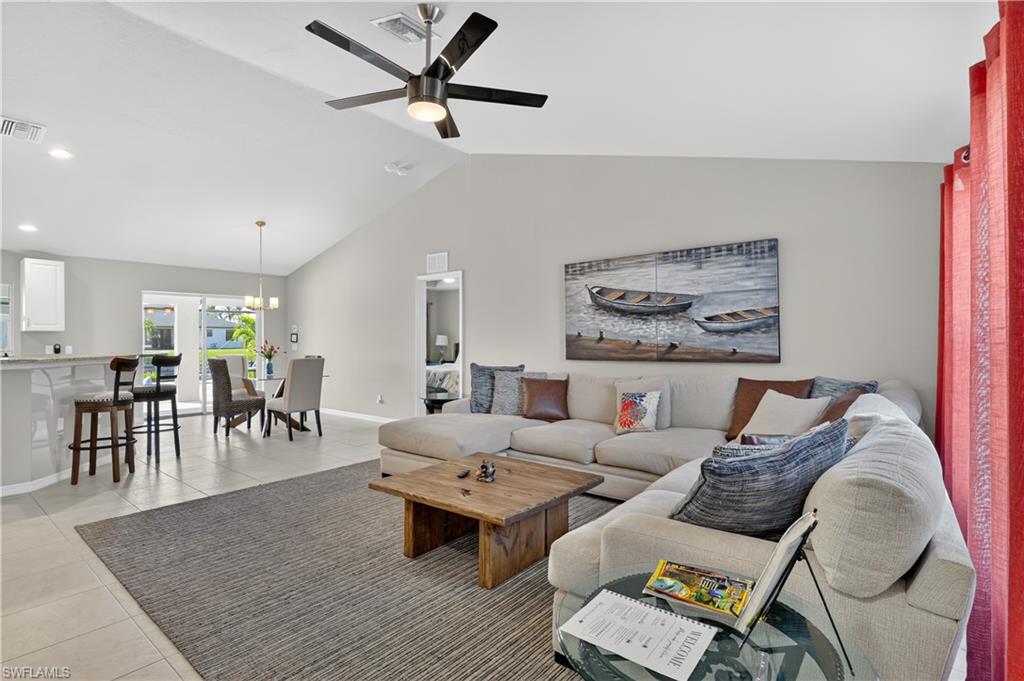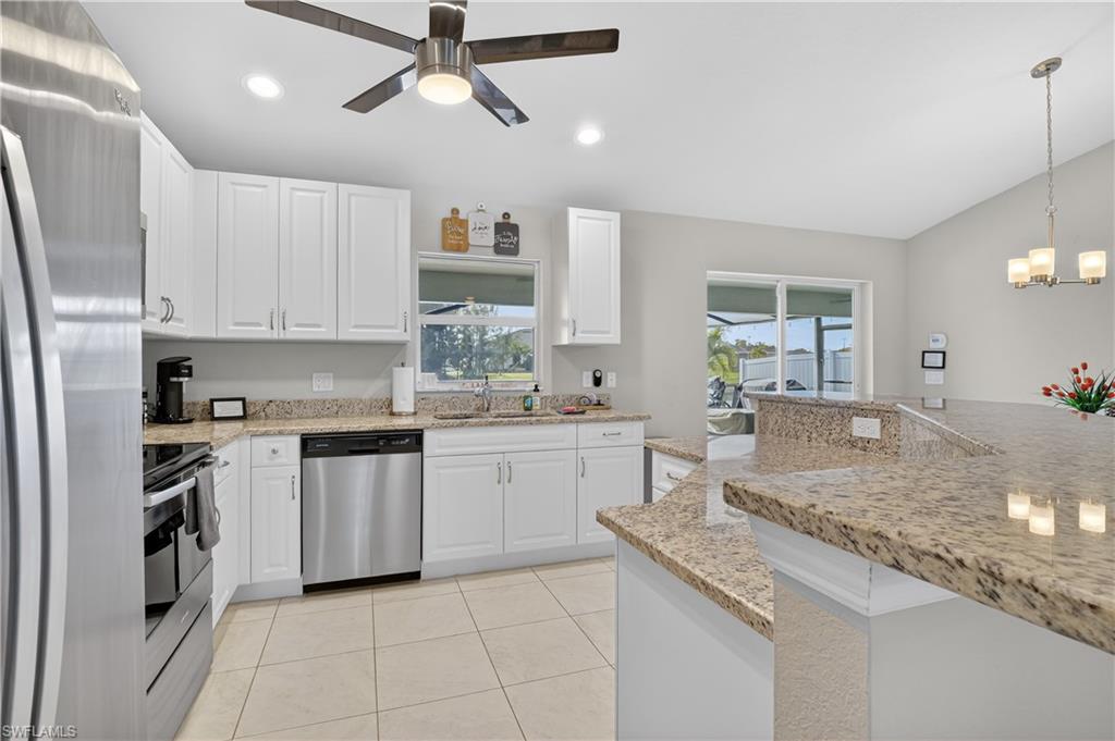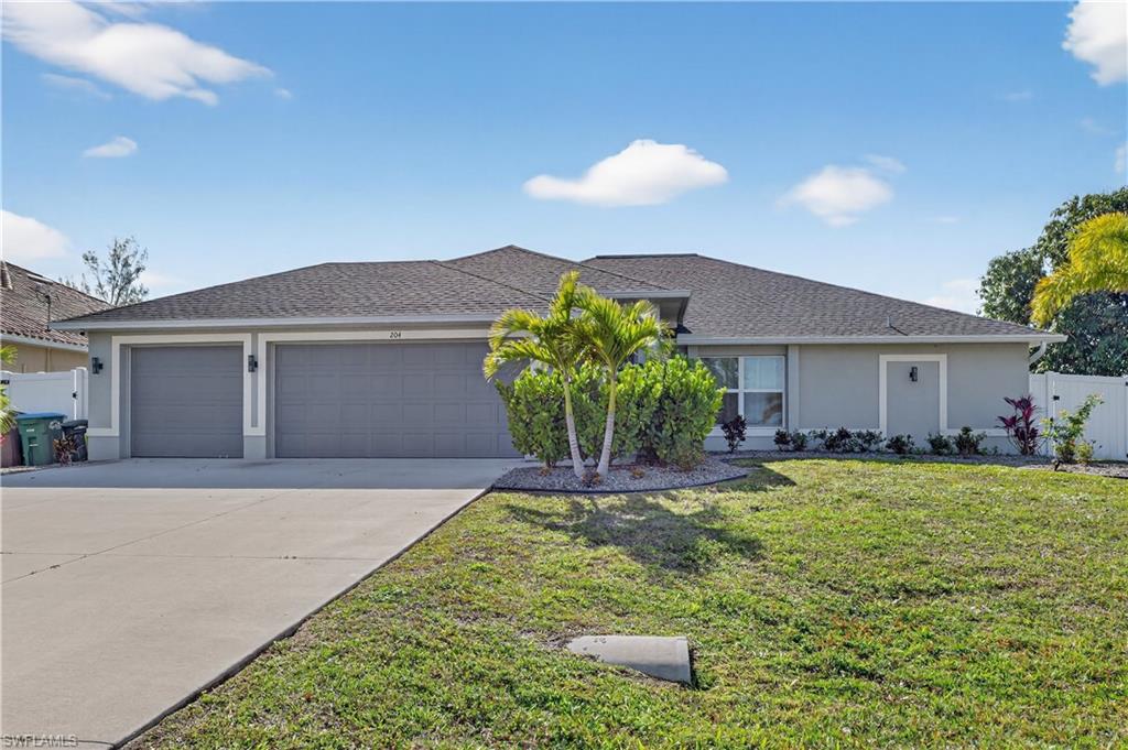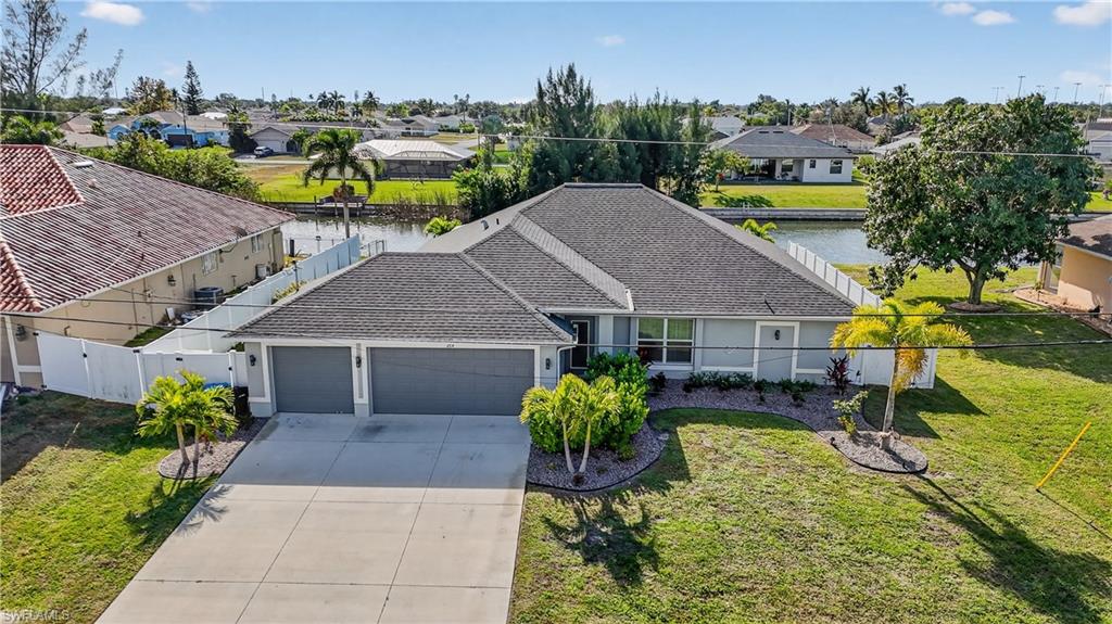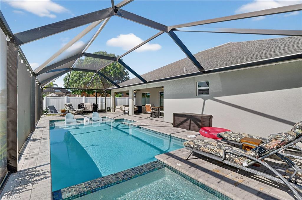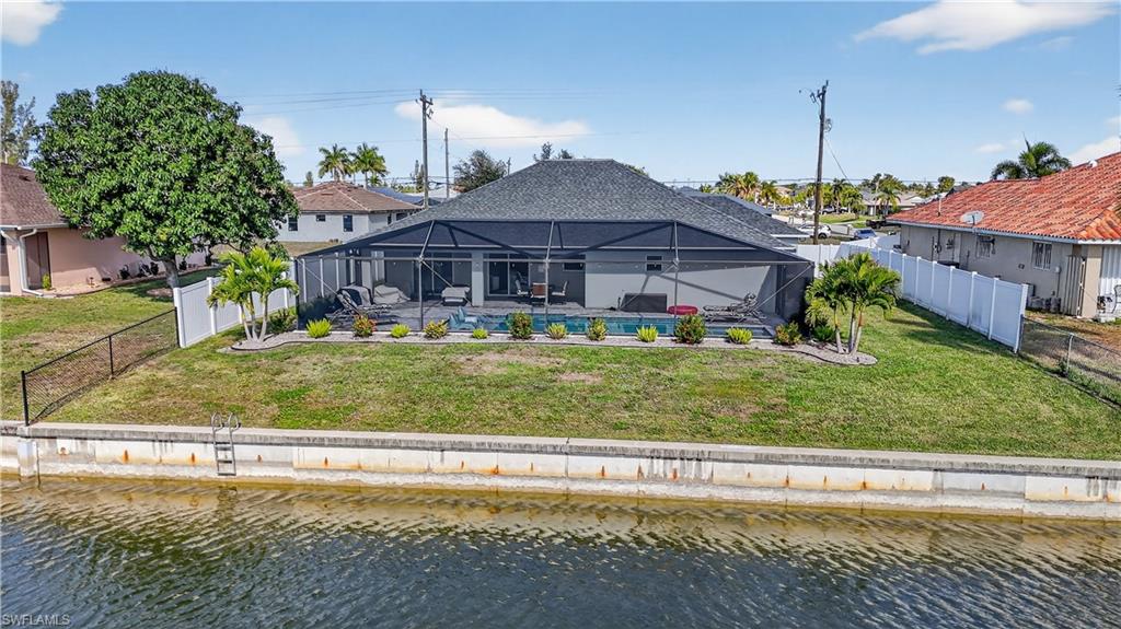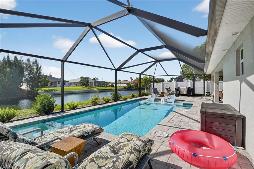 FABULOUS, BOATING-FISHING "THE FLORIDA LIFE" WITH THIS NEWER WATERFRONT CONSTRUCTION WITH BUILDER/OWNER UPGRADES ($100, 000+/-) 4 BEDROOM, 2 BATH, 3 CAR GARAGE, POOL-SPA HOME is located in one of Southwest Cape Coral’s most desirable neighborhoods, offering SOUTHERN EXPOSURE, a peaceful FRESHWATER CANAL setting, and a quiet street perfect for everyday living or a seasonal retreat. Situated on CITY WATER, SEWER, AND IRRIGATION. BIG "OPEN FLOOR PLAN" WITH 10' CEILINGS, ALL CUSTOM "WOOD PLANK" VINYL TILE FLOORING FOR COMPLETE EASE AND MAINTENANCE. this home features VAULTED CEILINGS, CUSTOM WINDOW SHADES, TILE FLOORING in the main living areas, and LUXURY VINYL PLANK flooring in the bedrooms. The SPLIT-BEDROOM FLOOR PLAN provides comfort and privacy, with the guest bathroom doubling as a CONVENIENT POOL BATH. "CHEFS" KITCHEN WITH LEVEL 5 GRANITE COUNTERTOPS, RAISED PANEL WOOD CABINETRY, HIGH END STAINLESS STEEL APPLIANCES, and a CENTER ISLAND WITH BAR SEATING—PERFECT FOR FAMILY GATHERING AND ENTERTAINING. MASTER BED ROOM HAS VAULTED CEILING, HIS & HERS CLOSET, DUAL GRANITE VANITIES, FLOOR-TO-CEILING ALL TILE & GLASS WALK-IN SHOWER. OUTSIDE, PRIVATE SCREENED LANAI featuring a BRAND-NEW HEATED SALTWATER POOL with SPILLOVER SPA, SWIM-UP BAR SEATING, SUNDECK and MOSAIC TILE ACCENTS, (YOUR GUESTS & KIDS WILL NEVER WANT TO LEAVE THE POOL). The FULLY FENCED BACKYARD offers added privacy, while the SEAWALL WITH LADDER ACCESS makes it easy to LAUNCH A KAYAK or GREAT BOATING AND FISHING, EVEN RIGHT FROM YOUR BACK YARD. Additional highlights include AMPLE CLOSET SPACE, GRANITE RECTANGULAR SINKS IN BATHROOMS, and ELEGANT GLASS TILE ACCENTS throughout. Whether used as a PRIMARY RESIDENCE, VACATION GETAWAY, or INVESTMENT PROPERTY (SUPER VACATION RENTAL INCOME OPPORTUNITIES WHEN NOT USED). Home is close to TOP-RATED SCHOOLS, CHURCHES, HOSPITALS, SHOPPING, RESTAURANTS, ENTERTAINMENT, and SOUTHWEST FLORIDA’S BEAUTIFUL BEACHES. Home comes with a ONE-YEAR HOME WARRANTY, for total buyer comfort!