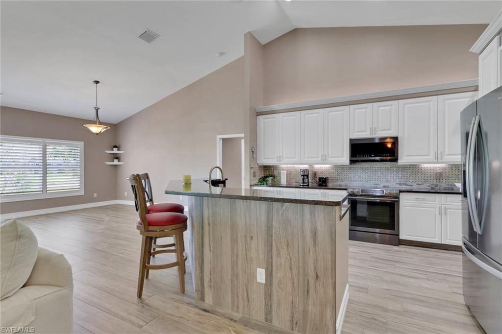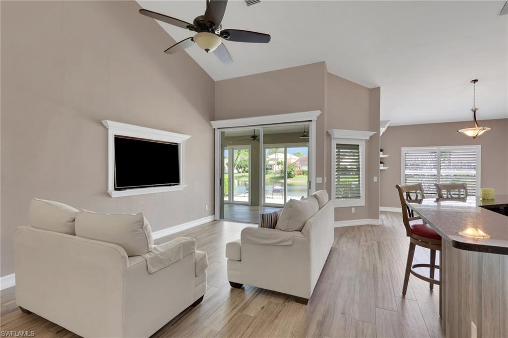 The well-designed split-bedroom great room floor plan provides privacy and comfort, creating an inviting space for entertaining. The main living area features vaulted ceilings and an enclosed porch that opens to an outdoor deck overlooking a peaceful lake. Recent updates enhance the home’s appeal, including newer tile flooring, fresh paint, white kitchen cabinetry, granite countertops, stainless steel appliances, and stylish custom lighting. A tile roof and brick-paved driveway add durability, curb appeal, and peace of mind. Ideally located in South Naples, this home is just five minutes from 5th Avenue South, Naples beaches, and the iconic Naples Pier. Enjoy exceptional convenience with nearby Publix, fine dining, shopping, and entertainment. Don’t miss this opportunity to own an exceptional property in a prime Naples location.