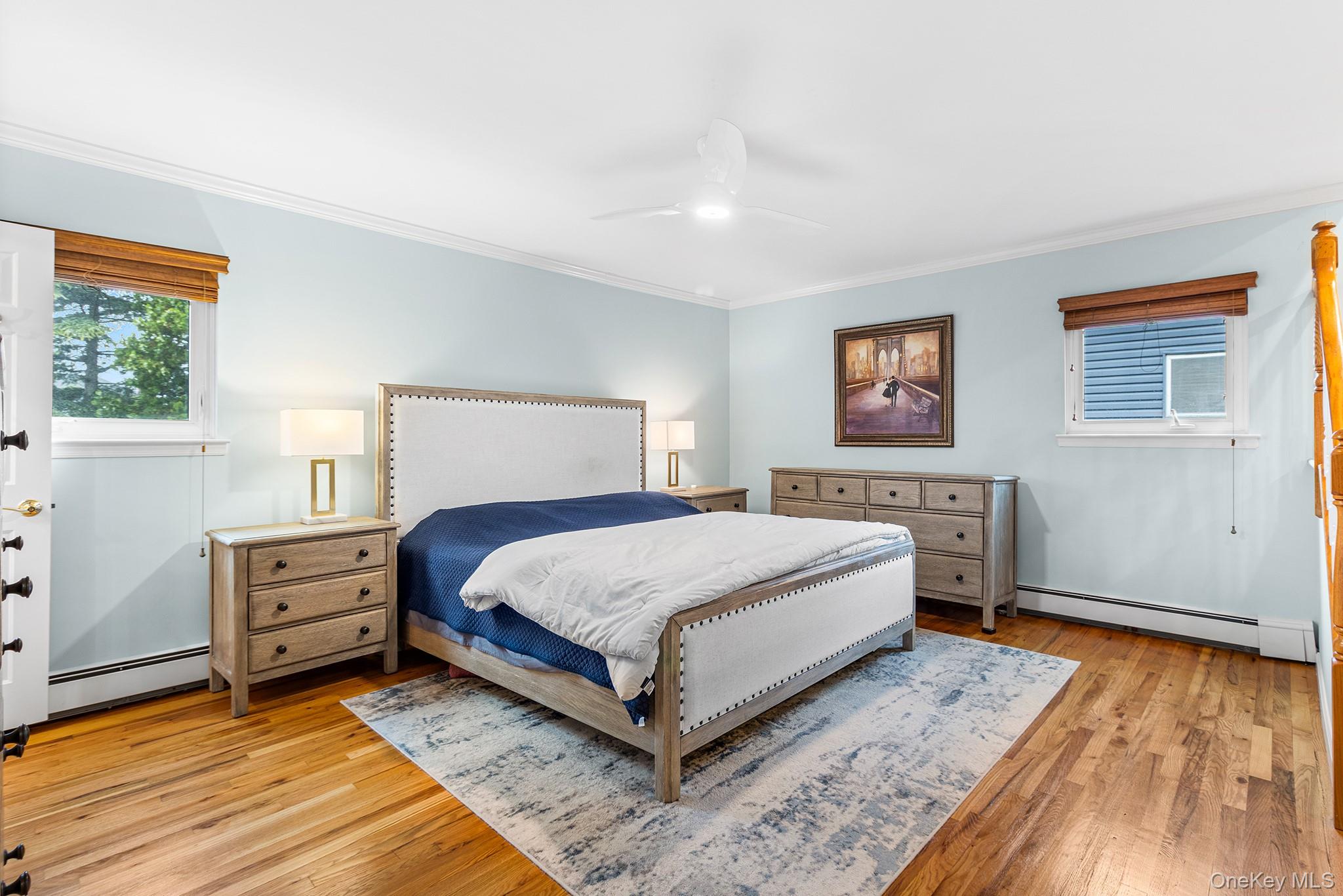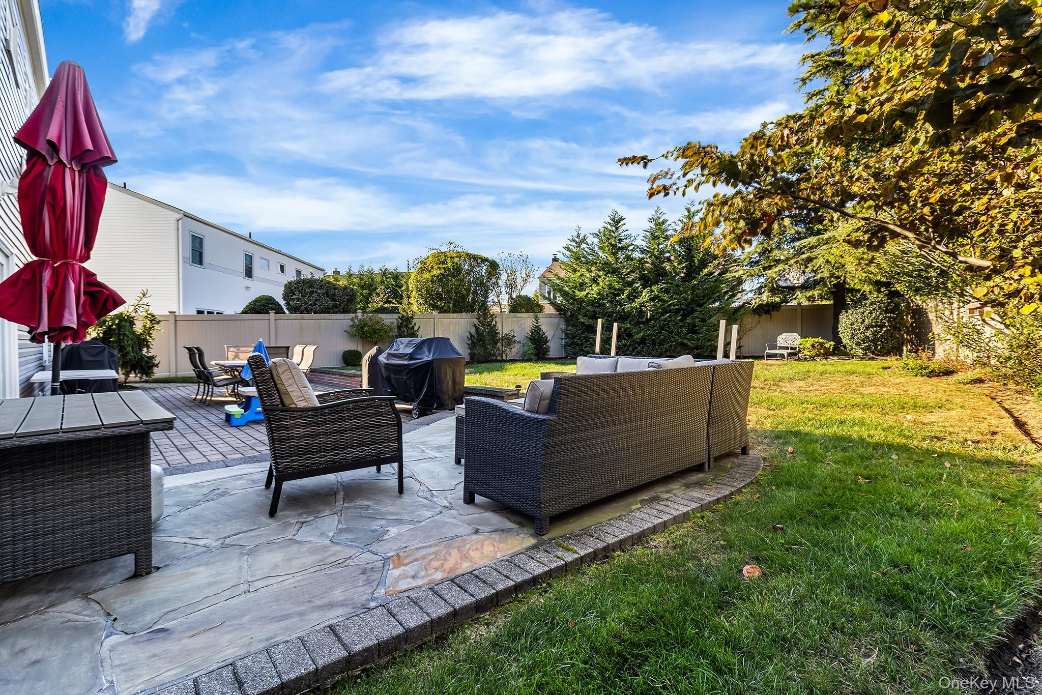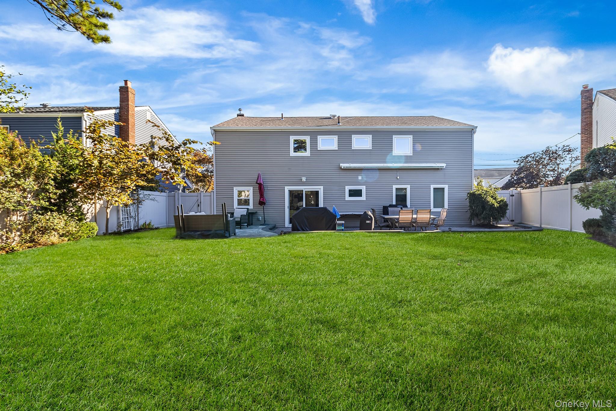 Welcome to 3034 Bond Drive, a beautifully updated Merrick gem showcasing a striking exterior with brick accents, manicured landscaping, and an inviting wide-open entry that sets the tone for the contemporary design within. This turn-key, move-in-ready home features high-end finishes throughout and an open, airy floorplan ideal for both everyday living and entertaining. The main level offers a floating living room with a dramatic dual staircase, a formal dining room perfect for gatherings, and a sunlit den with a convenient half bath. The updated eat-in kitchen impresses with quartz countertops, new stainless-steel appliances, and abundant custom cabinetry. The private quarters include a spacious primary suite highlighted by a spa-like primary bathroom featuring radiant heated floors and a luxurious steam shower, creating a true retreat. Three additional generously sized bedrooms offer excellent closet space, while a partial basement provides laundry and flexible storage options. Outside, enjoy a beautifully maintained backyard complete with an 18' retractable awning, brick and bluestone patio, and lush green space—perfect for relaxing or entertaining. Additional features include in-ground sprinklers, central air conditioning, and updated systems for year-round comfort. Ideally located in one of Merrick’s most sought-after neighborhoods near parks, shopping, dining, and top-rated schools, this exceptional contemporary home offers style, comfort, and convenience—just unpack and enjoy.