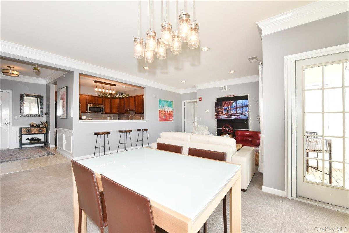 Welcome to 1145 Kirkland Court ! This diamond end unit is located on the 4th floor with a spacious/open floor plan. Beautifully updated 2-bedroom, 2-bath, eat-in kitchen, living room, formal dining w/access to terrace, laundry area in unit & 1. 5 car garage complete this unit. This home features new HVAC (heating & cooling), crown molding, boxed wainscoting, two brand-new bathrooms finished with modern fixtures, sleek tile work, and a clean, contemporary design that blends comfort with style. The updated kitchen with water filtration system offers modern cabinetry, corian countertops, and stainless steel appliances—perfect for everyday living and entertaining alike. The primary en-suite offers a full bathroom and a wic, the second bedroom offers two closets. This home combines modern amenities with a prime central location, offering easy access to local shops, dining, and the unique charm Islip is known for. A perfect opportunity for a primary residence, second home, or investment property. Amenities include heated in-ground pool, tennis courts, pickleball court, club house & gym. Maintenance free living at its finest. Welcome home ! Pre-Approval Or Pof required by all. Building H.