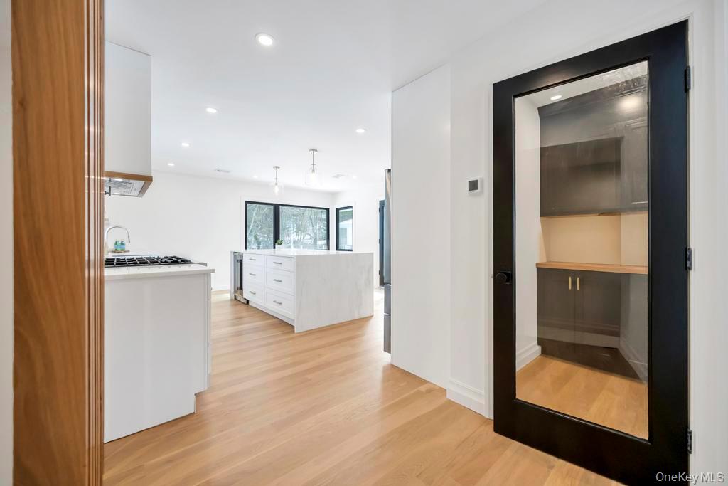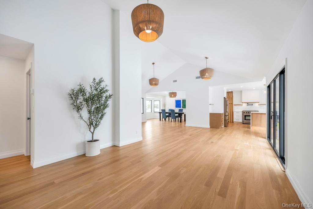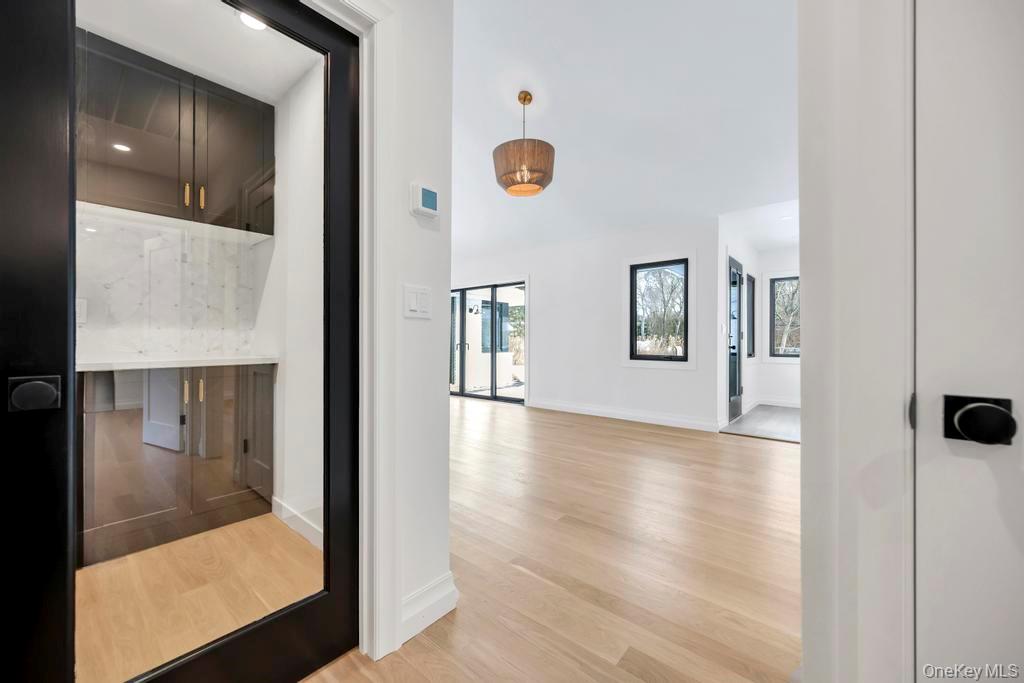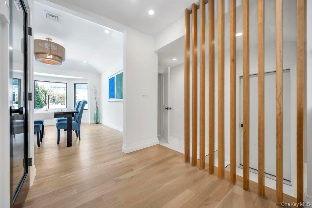 Thoughtfully renovated and redesigned, this 2, 688SF ranch offers refined interiors, quality craftsmanship, and effortless one-level living with low taxes of $12, 297. Set on a . 76-acre lot, the home enjoys a bay view down the block, visible from the front of the property, with access at end of block to Shinnecock Bay Beach with peaceful sunsets. A pea gravel driveway leads to a charming white exterior featuring Hardie-Plank 'board-and-batten' with white brick, and classic black accents with a welcoming Blue Stone covered patio. The landscaped grounds with Green Giant trees, hydrangeas, and beach grasses add to the home's coastal character. Reimagined by FD Builders with meticulous attention to detail, the interiors feature designer finishes, abundant natural light, and 4" white oak wood floors throughout. The living room, with vaulted ceilings and a wood-burning fireplace, flows into the dining room and a chic gourmet kitchen anchored by a waterfall dolomite marble island, professional-grade appliances, and a Jr. Butler's pantry. The home offers four bedrooms and three-and-a-half baths, including a serene primary suite with tray cedar ceilings, yard access, a custom walk-in closet, and a spa-inspired bath overlooking protected natural scenery. Additional highlights include two laundry rooms, basement space, a mudroom with white oak accent wall, a two-car garage, and an additional garage. Close to the Village and world-famous Coopers Beach, 10 Lenape Road delivers a refined Hamptons lifestyle with modern comfort and coastal appeal.