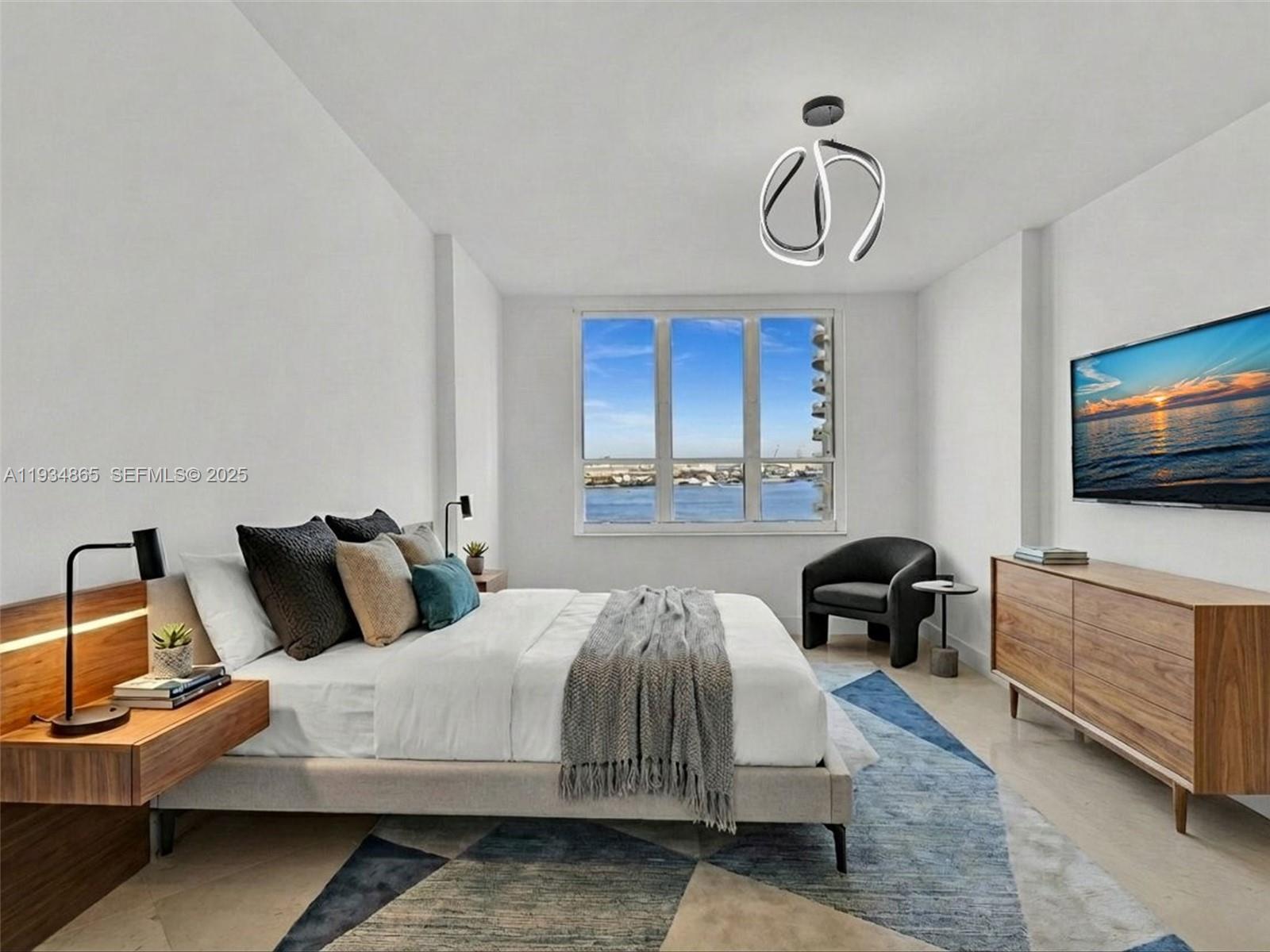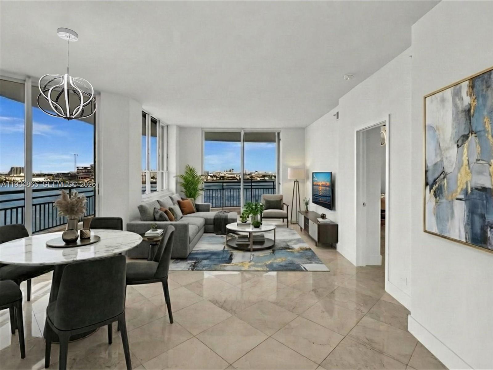 Biscayne Bay, port of Miami. marble floors, designer closets, second bathroom is shower, new kitchen cabinets, beautiful lamps, new draperies , window treatments, big balcony, enjoy sunset and water view. Island has cafes, restaurants, security patrol, shops