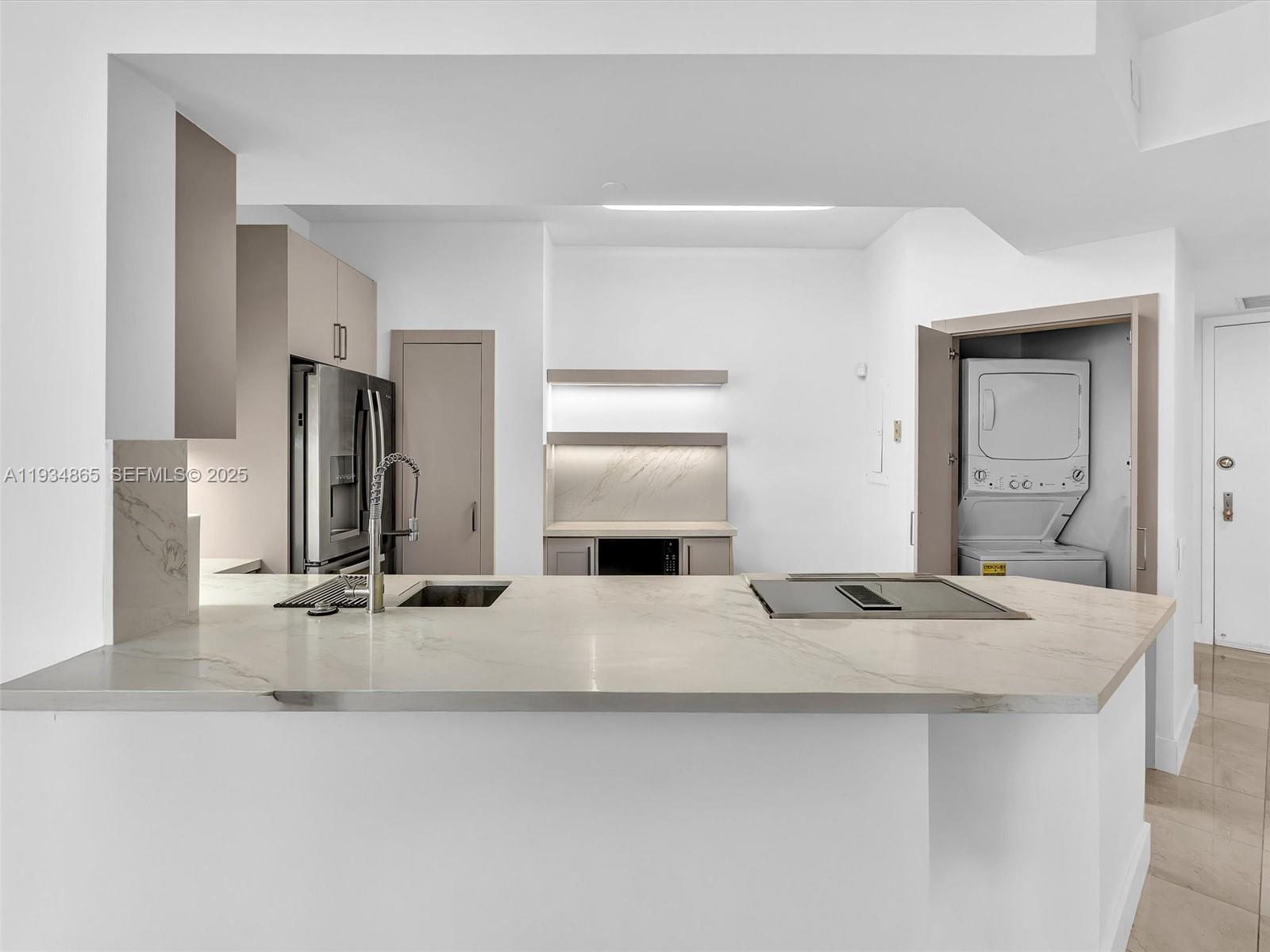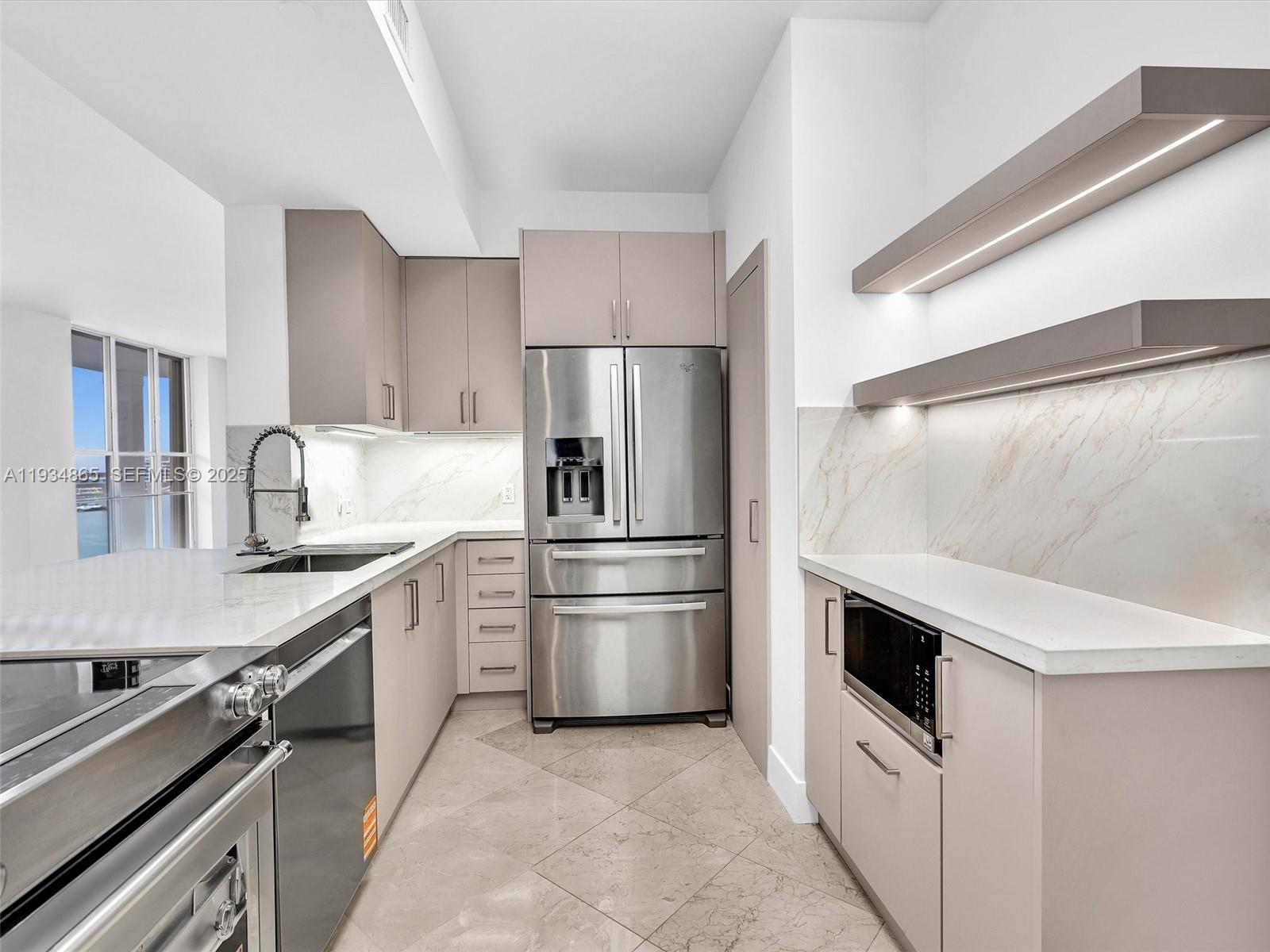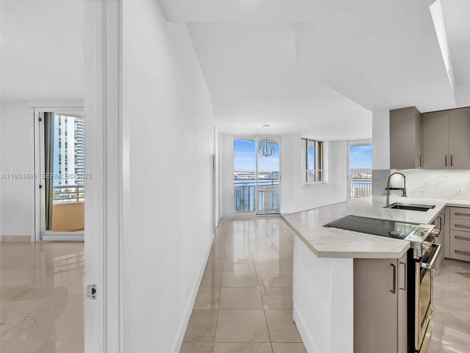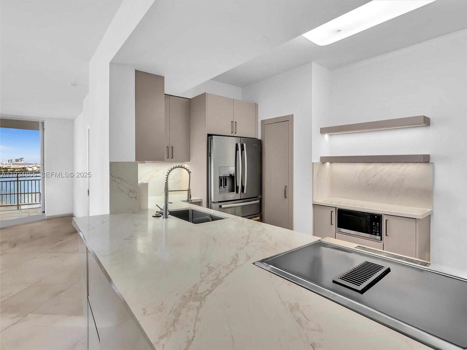 completely remodeled with excellent taste. Open kitchen with view to the water, from the balcony see Fisher island