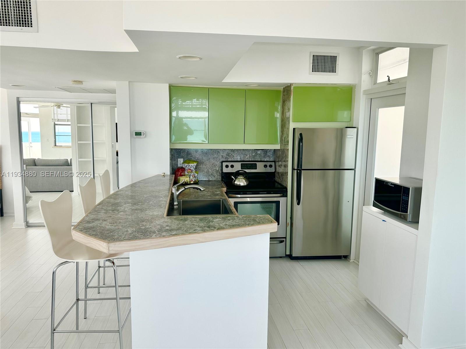 Rare opportunity! Stunning direct oceanfront unit in prime South Beach location. Fully furnished, flooded with natural light, ideal for a home office. Revel in breathtaking sunrises from your private balcony. Sole available unit in the building with direct Ocean view. On 3rd Street Beach with adjacent park. Enjoy daily 7am Yoga classes on the Beach in front of the building. Embrace the vibrant South of Fifth lifestyle with over 40 Restaurants and South Pointe Park within walking distance. Covered parking. True South Beach living.
