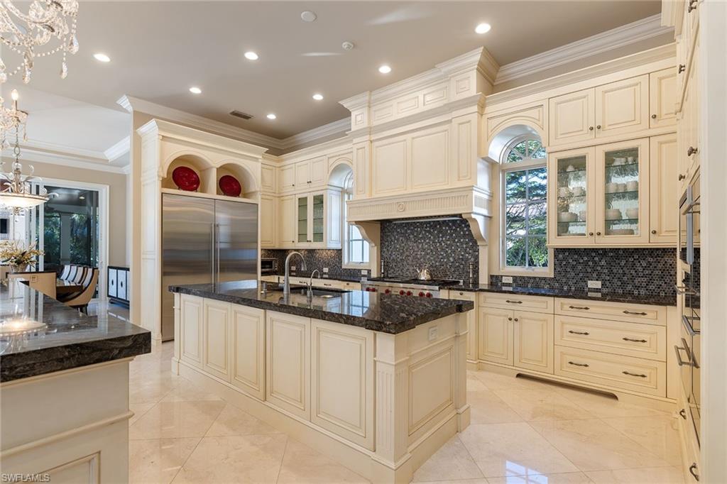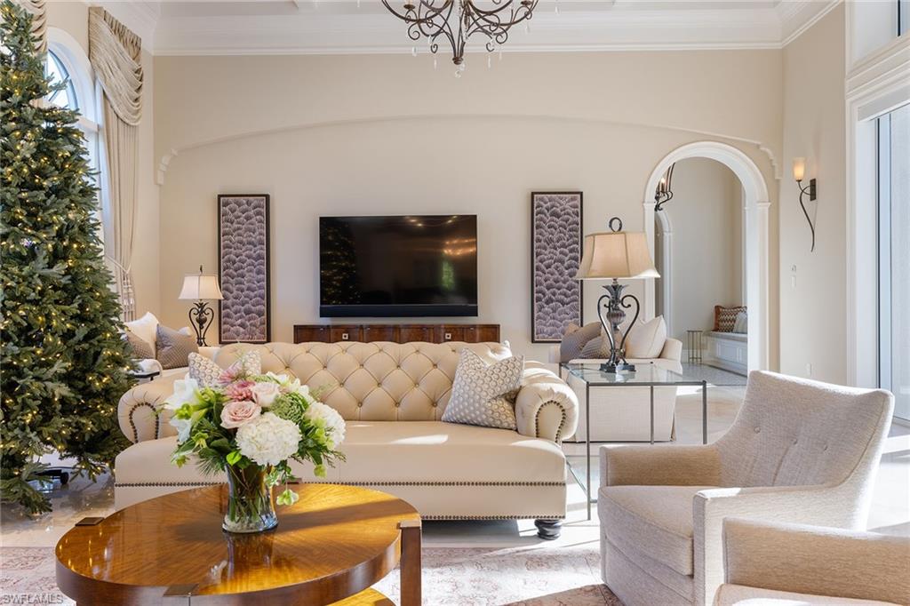 A quiet sense of arrival unfolds as you approach this remarkable custom estate built by Harwick Homes, which is gracefully positioned within Teramo. Framed by a sweeping preserve backdrop and introduced by striking iron front doors, the home immediately conveys a feeling of privacy, permanence and understated luxury. Inside, the home is filled with natural light, drawn in through expansive impact-rated windows and doors that connect the interior to its tranquil surroundings. Volume ceilings, marble flooring and wood-stained tongue-and-groove architectural details create a timeless and refined aesthetic, while a thoughtfully designed floor plan offers a seamless balance of openness and intimacy. Every bedroom is en suite, providing comfort and privacy for residents and guests. The primary bedroom is an escape with gas fireplace in the bath, with an auto-sensing pathway illumination that enhances ambiance and ease of living between the bedroom and bath, as well as expansive closets. The dedicated den offers flexibility for work, reading or creative pursuits and provides privacy with its location near the primary suite. The heart of the home is a beautifully appointed gourmet kitchen, designed to gather, entertain and inspire. High-end appliances, dual islands, a walk-in pantry with a sink and additional dishwasher, a separate wet bar with a walk-in wine storage and two undercounter wine coolers create an effortless setting for hosting. Integrated surround sound, a Control4 system and a Lutron lighting system offer convenience throughout the home. Indoor living transitions naturally outdoors to an expansive screened lanai that feels like a private resort. A custom saltwater pool and spa, outdoor kitchen, fireplace and firepit invite sun-drenched afternoons and elegant evenings under the stars, all overlooking peaceful preserve views that provide an enduring sense of serenity and escape. Two separate two-car garages, each climate-controlled, offer exceptional flexibility for vehicles, storage or hobbies. Additional dedicated storage areas inside the home and within the garage ensure everything has its place, while a whole-home generator provides peace of mind. Enjoy toes in the sand and golden sunsets at Mediterra's fully renovated private Beach Club. Imagine arriving to have your car valet-parked and lounge chairs and umbrellas waiting for your arrival or set up upon your request. The restaurant features indoor and alfresco dining, a full bar and a swimming pool. In award-winning community of Mediterra, you can have it all with 36 holes of Tom Fazio championship golf, Har-Tru tennis courts, pickleball, bocce and a new Lifestyle Center coming soon! With its natural beauty, refined atmosphere and exceptional lifestyle, this home offers more than a place to live. It is a thoughtfully crafted retreat where elegance, comfort and modern convenience are all just moments from Naples world-class beaches, dining and shopping.