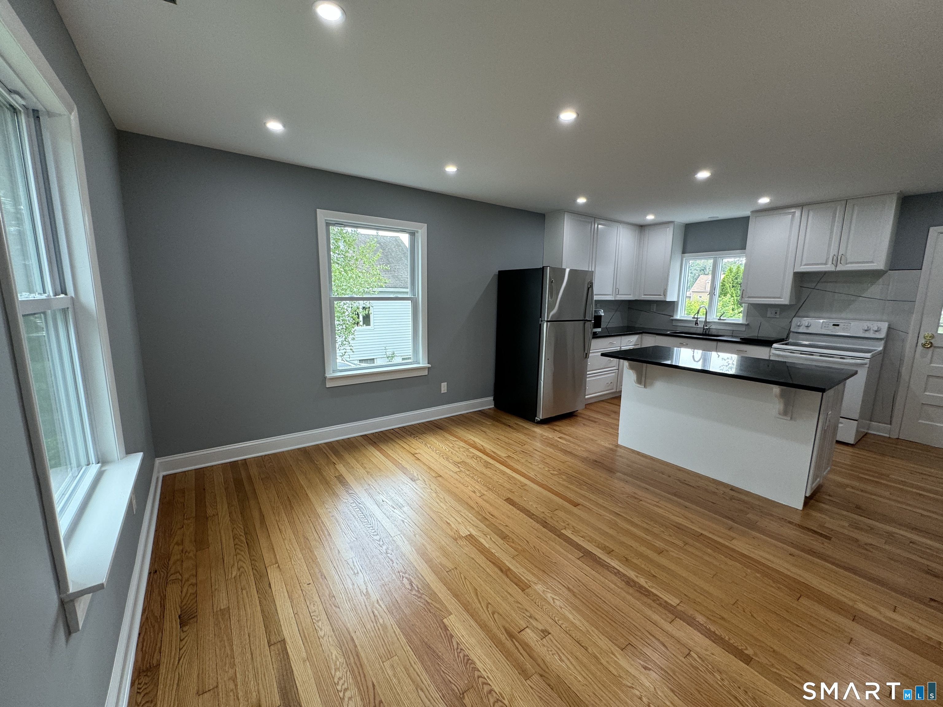 This one-bedroom apartment was fully renovated in 2024 and is located in a highly desirable area of Trumbull, close to the mall with easy access to the Merritt Parkway and approximately 3 minutes from Sacred Heart University. The apartment features beautifully refinished hardwood floors throughout. The open-concept living room, dining area, and kitchen showcase updated cabinetry, new granite countertops, and a center island, offering both functionality and style. The unit includes one spacious bedroom with a large closet, a stackable washer and dryer, and a heat pump split system providing efficient heating and cooling. The tenant will also have use of one garage parking space plus an additional dedicated parking space in the driveway. This is a two-family home with side-by-side units. Both units share a rear breezeway (shown in photos with table), which is used as an exit to the backyard. The driveway on the left side of the house (facing the property) is for the use of this unit. Rental requirements: Excellent credit, no pets, no smoking, two-month security deposit, proof of income, and references. Landlord prefers RentSpree credit report. Enjoy easy living in this 2024-renovated one-bedroom apartment in a desirable Trumbull location. Featuring refinished hardwood floors, an open-concept kitchen with granite countertops and island, in-unit washer/dryer, and efficient heat pump heating and cooling. Includes garage parking plus an additional dedicated driveway space. Conveniently located near shopping, the Merritt Parkway, and just minutes from Sacred Heart University. No pets. No smoking. Excellent credit required.