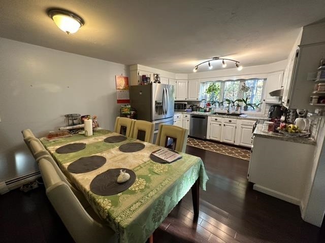 Come view this beautifully maintained 4 bedroom, 3 Bath Contemporary home with attached 2 car garage. Eat-in Kitchen Dining Room has sliders that lead out to the spacious Deck, 1/2 Bath, Living Room, 2nd level has 3 Bedrooms, Full Bath, Lower level has 4th Bedroom, Full Bath, FamilyRoom and walk out to the beautiful backyard adorned with shrubs, perennial's, coy pond, and Shed. References, rental application, credit verification required. Non Smokers, Non Vapors and no pets. Great commuter location close to restaurants, Whole Foods, Target Plaza and more. Schedule your showing today!