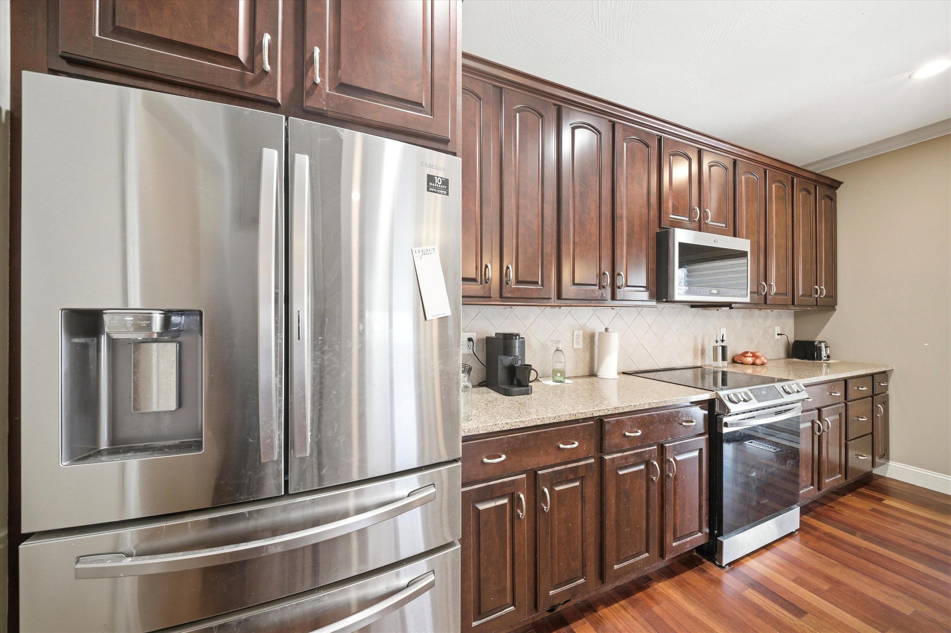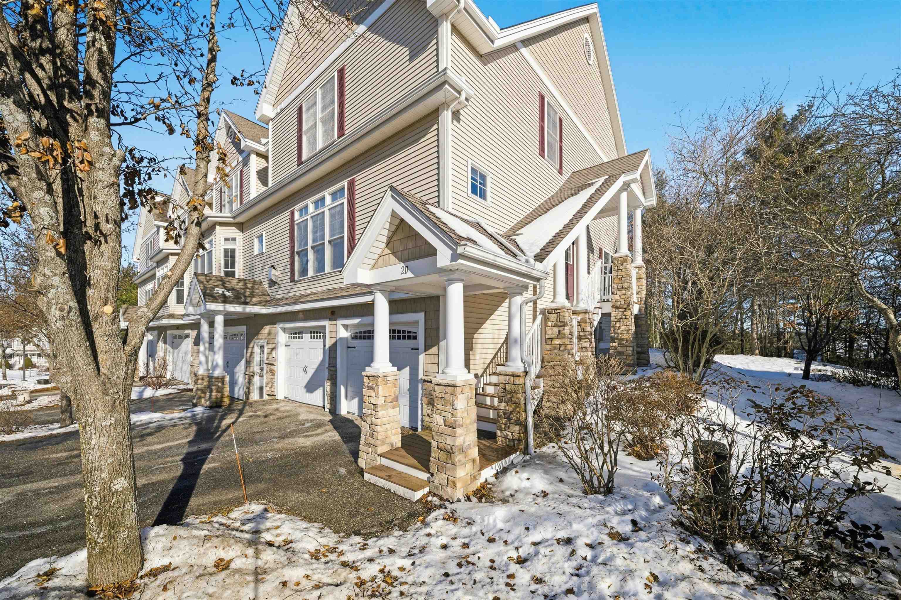 Incredible opportunity to own this gorgeous 2000+ SF END-unit townhouse in the desirable Carriage Manor community! Fully updated & move-in ready, this home offers a perfect blend of modern style & comfortable living. Positioned outside the main circle of buildings this unit offers added privacy with no residences directly behind it! An oversized direct-entry 2-car garage leads to additional flex space currently utilized as a dream Man-Cave. Upstairs you'll find a bright open-concept main level featuring Hickory hardwood floors, a spacious kitchen, SS appliances, granite countertops, a large center island with seating, a wine rack & fridge, Brazilian Cherry cabinetry & accent lighting. The Living Room features a gas fireplace, custom cut blinds, large triple windows that provide abundant natural light, while sliding glass doors open to a private deck and backyard abutting the tree line. The 2nd level includes 3 bedrooms, laundry, and 2 full bathrooms, including a generously sized primary suite. The home includes an updated multi-zone HVAC system with whole-home humidification & radon mitigation. A private walking path offers direct access to the Head’s Pond trail system, with convenient access to Routes 3 & 93, as well as nearby shopping, dining, and amenities. Private showings begin after Christmas, OR see it at one of our open houses, Saturday, 12/27, from 12-2, or Sunday, 12/28, from 11-1! An exceptional opportunity at low maintenance luxury living don't let it pass you by!
