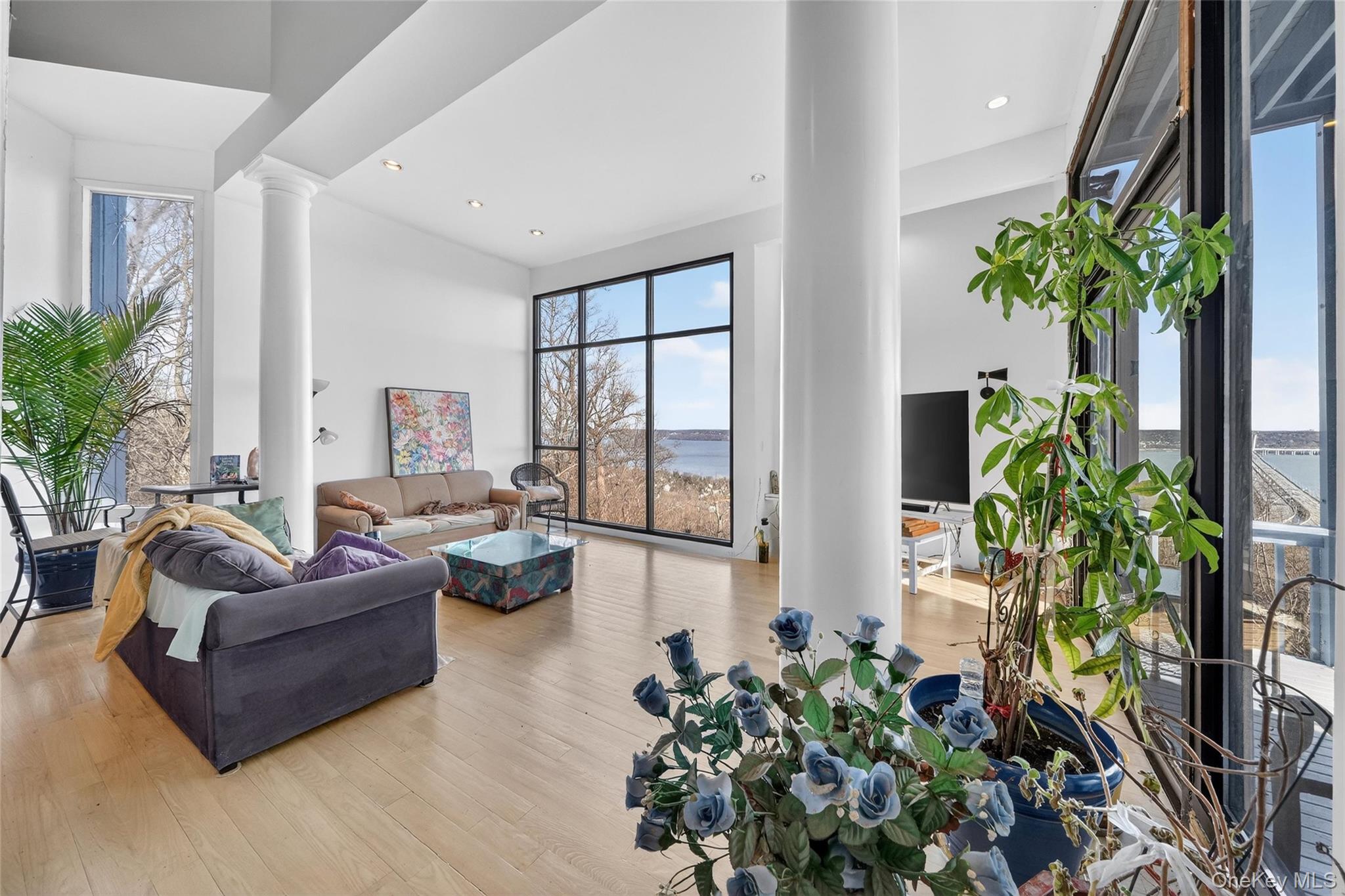 Set in one of the most sought-after Hudson River locations, this exceptional contemporary home offers breathtaking 180-degree views of the Hudson River, surrounding mountains, and iconic bridge scenery. Spanning over 4, 500 square feet, the residence features dramatic floor-to-ceiling windows that flood the home with natural light and showcase spectacular year-round panoramic vistas. A recent chef’s kitchen addition is a true showpiece, highlighted by an oversized center island, granite countertops, and top-of-the-line stainless steel appliances, all perfectly positioned to capture sweeping Hudson River views—ideal for both everyday living and entertaining. Owner-occupied by renowned architect Gary Segal, the home reflects thoughtful design, architectural integrity, and quality craftsmanship throughout. Nestled into the mountainside on over 2 private acres, the property offers remarkable privacy, tranquility, and a seamless connection to nature. In addition to its current elegance, the home offers ample interior space with the potential to add approximately 3–4 additional bedrooms and bathrooms, providing a rare opportunity to customize or expand the residence to suit your needs. Conveniently located just 30 minutes from Manhattan, this extraordinary property combines luxury living, panoramic Hudson River views, architectural pedigree, and significant value-add potential, making it ideal as a primary residence, weekend retreat, or long-term Hudson Valley investment.