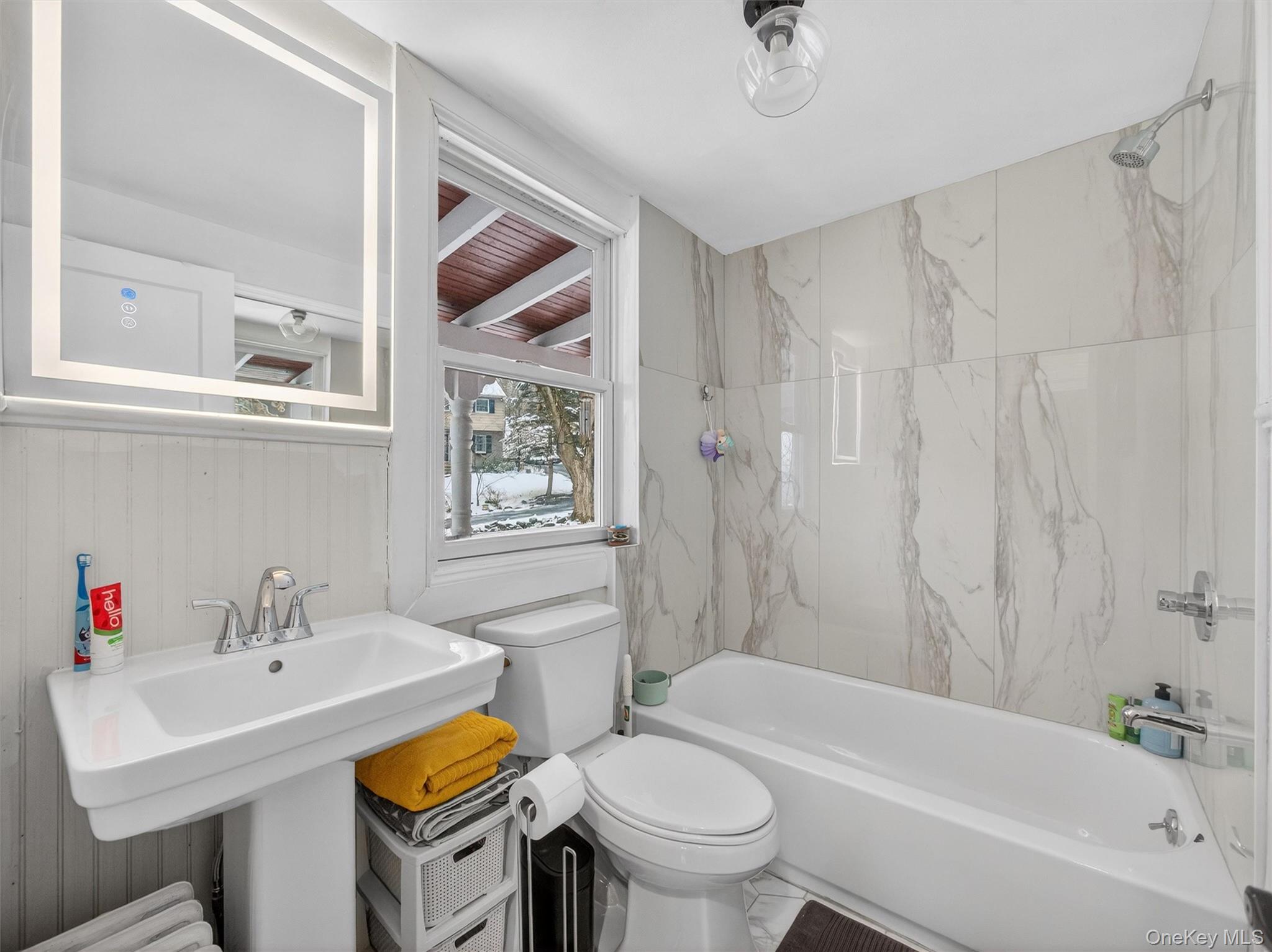 Discover the perfect balance of "urban-meets-country" in this impeccably renovated 2-bedroom, 2-full-bathroom ranch. Located less than a mile from the vibrant heart of Nyack, this home offers the ease of town living with the serenity of a private retreat. Step inside to find a bright, open interior featuring a brand-new kitchen complete with modern appliances and sleek countertops. Both full bathrooms have been tastefully updated, and the addition of a new washer and dryer makes this home truly move-in ready. For peace of mind, the boiler is newly serviced and includes a one-year warranty. The outdoor space is where this property truly shines. Relax on the adorable front porch to the sounds of local wildlife, or step out back to find your yard bordering miles of state hiking trails. Whether you fancy a morning hike to Buttermilk Falls or a trek to Blauvelt, adventure is literally at your doorstep. With two driveways and a detached garage—perfect for a home office, creative studio, or "escape" cave—this Nyack gem offers versatility and charm in spades.