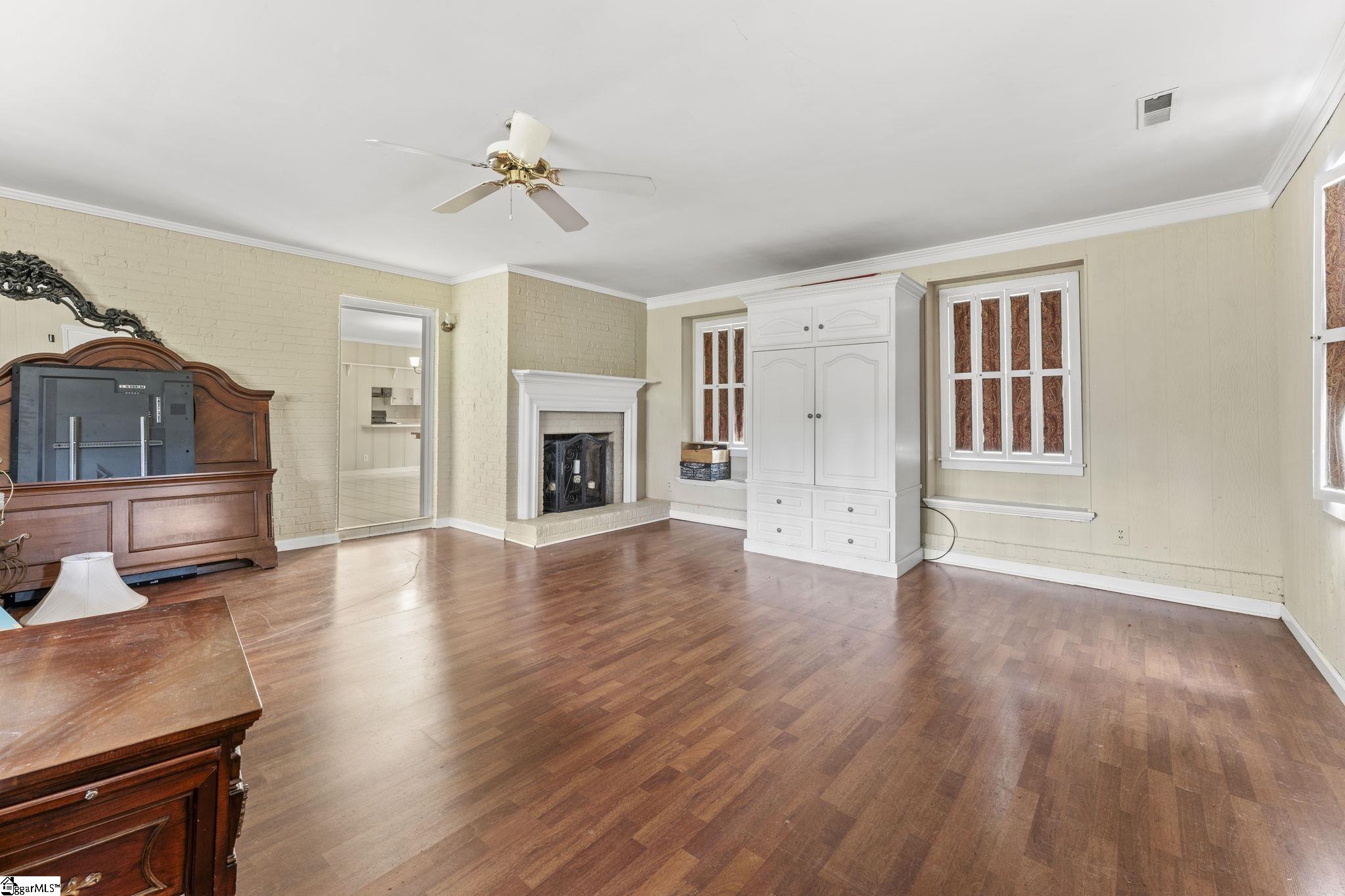 Incredible opportunity to own a charming ranch on a private . 66-acre lot with a partially finished walk-out basement offering fantastic potential! The main level features 3 bedrooms and 2 full baths, along with a generous great room accented by laminate hardwood floors and a cozy fireplace. A separate formal living room provides additional space—perfect for holiday gatherings or flexible everyday use. The kitchen offers gas cooking, tile flooring, and multiple dining area options, making it a functional hub for both casual meals and entertaining. The partially finished walk-out basement is thoughtfully arranged and gives the opportunity for future expansion complete with a kitchen area, family room, full bath, and multiple rooms that could serve as future finished bedrooms. GREAT location -only 2 min to Wade Hampton Blvd. This property delivers SPACE, versatility, and value—and is being sold AS-IS. The best part? NO HOA! schedule your showing today!