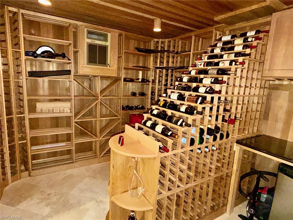 Welcome to 3786 Cracker Way, a stunning Key West-style retreat located in the charming community of Cracker Cove in Bonita Bay. This 2-bedroom, 2-bathroom home spans 2, 050 square feet and is designed for both relaxation and adventure. It boasts lush tropical landscaping, a spacious wrap-around deck, and a covered four-car garage perfect for boat storage. Upon entering the living quarters upstairs, you're greeted by an open floor plan with vaulted ceilings, wood beams, with tile and wood flooring throughout. Abundant natural light pours in through large windows adorned with plantation shutters. The inviting living room flows seamlessly into the kitchen, featuring granite countertops, a breakfast bar, and an adjacent dining area with an open view of the living space. A spacious walk-in laundry room with cabinets, sink, and extra storage for added convenience. The guest bedroom features a full bathroom with a walk-in shower. Tucked in the corner of the home, the primary suite offers a true retreat, complete with a walk-in closet featuring built-in shelving, dual sinks, a walk-in shower, and a private indoor sauna that comfortably fits four. Step outside through the French doors leading to a screened-in lanai, surrounded by lush greenery. From there, the wrap-around porch invites you to take in the serene tropical setting. The community pool is just steps from home. This home also includes a rare bonus large wine cellar, perfect for collectors and entertainers alike. There is so much to enjoy at Bonita Bay including a private beach club, beach shuttle, walking/jogging trails, dog park, marina and waterfront restaurant, tennis, and golf with separate membership purchase. With its blend of coastal charm and modern amenities, this home is a Florida paradise waiting to be enjoyed!