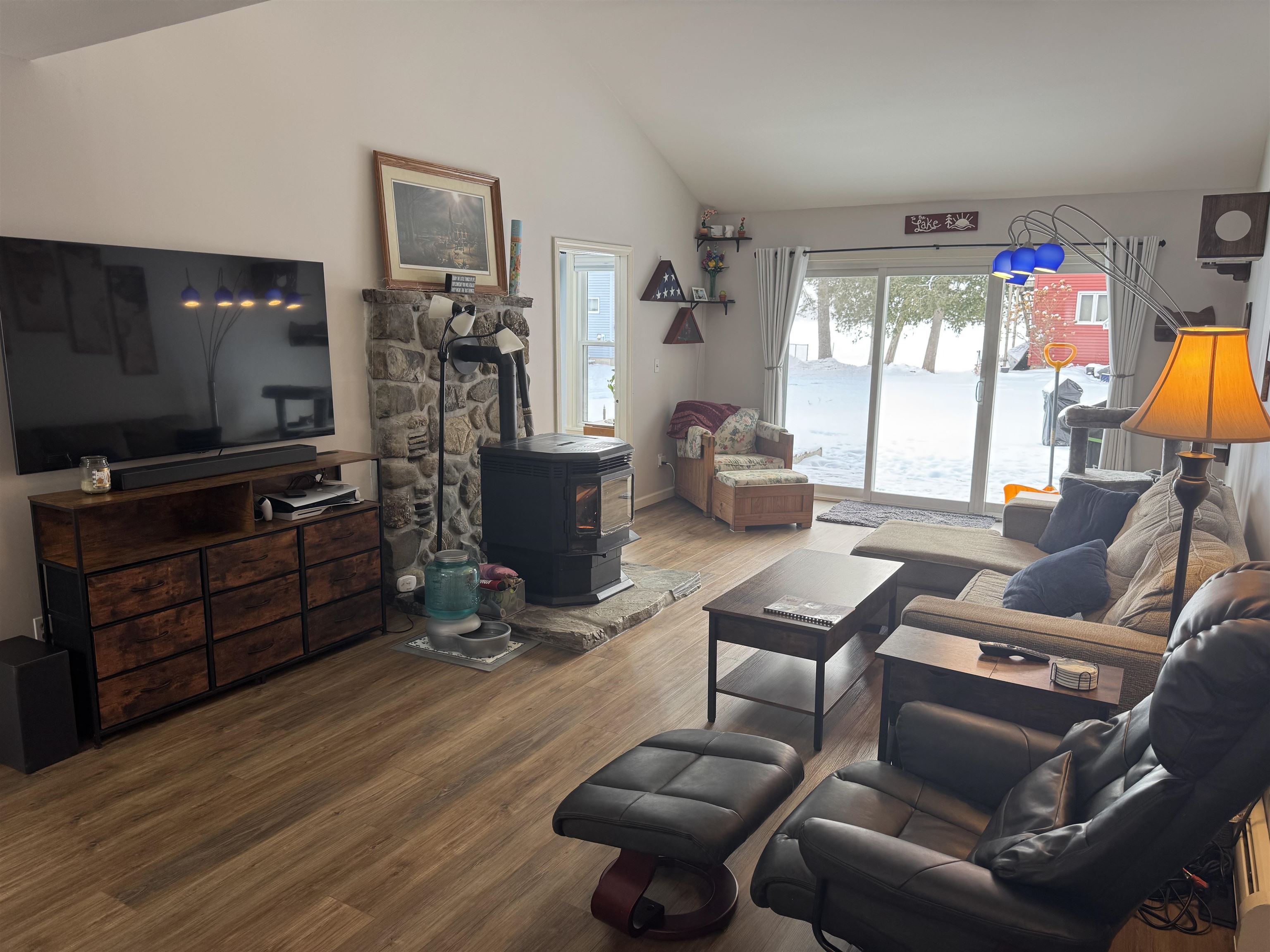 In Derby Vermont you will find this very modern, 7 bedroom, 2 full bath, contemporary home with a 50 ft ROW to Lake Salem sitting on its own . 38 acres. This home is spotless! There is no maintenance here. Everything is up to date including new quartz counters, newer windows and new luxury vinyl flooring! This home is efficient. You can heat with wood pellets or use the super efficient Smith boiler. Natural light streams in from every angle or sit outside on the back decks and enjoy the lake views with the grill going. This is a convenient location for an active outdoor life style with access to VAST and VASA trails. The property has a communal lakeside feel and is just minutes from town. Use this as the weekend getaway or year around living. It will do both just fine.