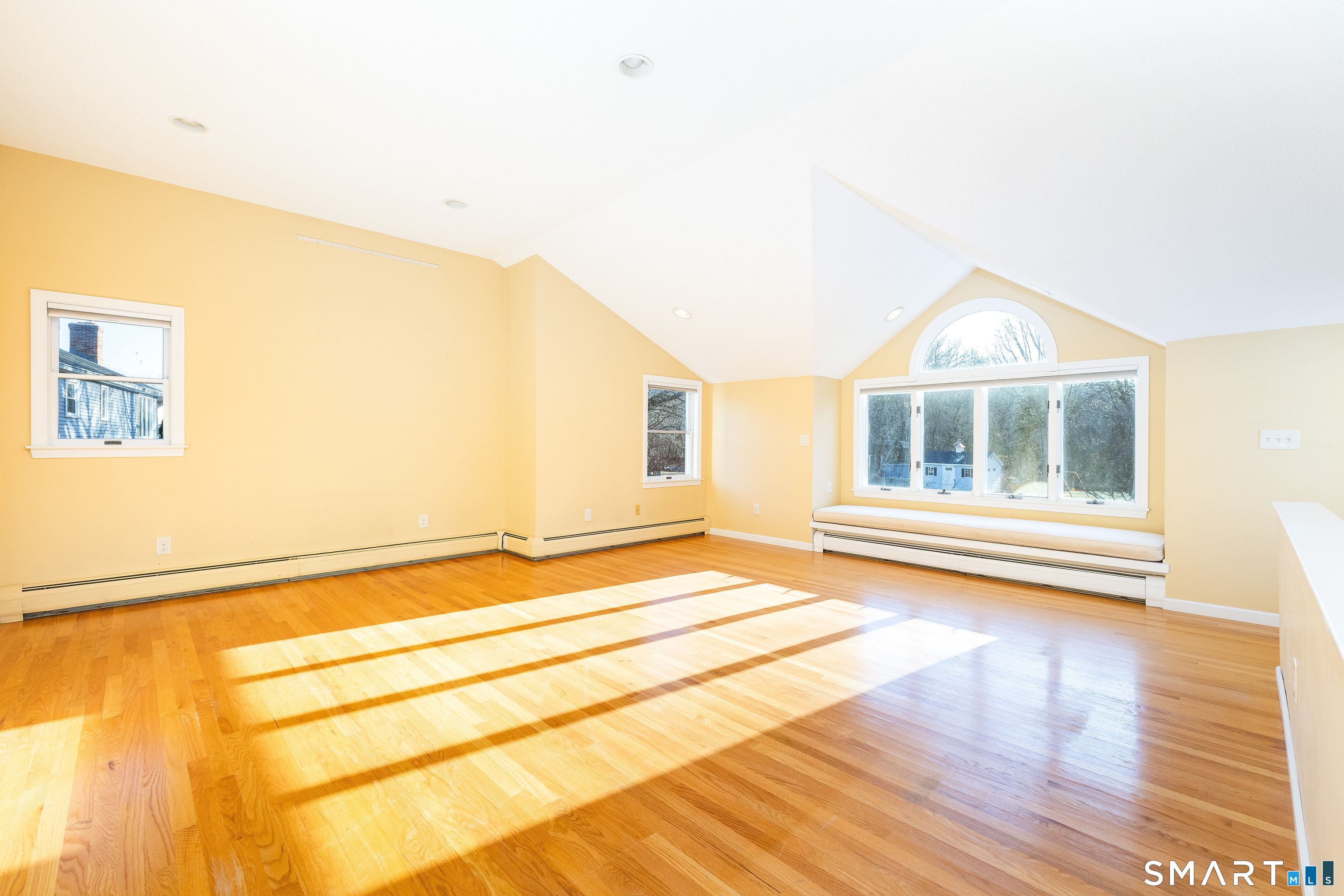 Set in a desirable Farmington neighborhood, this five-bedroom Colonial offers space, flexibility, and a great location. The level yard is ideal for play, pets, or gatherings, and you're just minutes from shopping, dining, and the rail-trail for walking, running and biking. An estimated 1990 addition expanded the main level with a generous family room with fireplace, perfect for relaxed evenings or entertaining, and added a second staircase leading to a large recreation room above, ideal for a home office, playroom, or media space. The original portion of the home has had its windows replaced, providing improved efficiency. Energy-minded features include roof-mounted solar panels installed less than four years ago. A geothermal heating and cooling system was added years back to replace oil. While it's no longer in use, the home has since returned to oil heat with a brand-new oil tank in place. Central air is not currently connected, but existing ductwork makes future installation straightforward. Inside, you'll find recent improvements throughout, including many rooms with refinished or replaced wood floors and brand-new carpeting in the fifth bedroom. With some thoughtful updating, this home offers a wonderful opportunity to create something truly special.