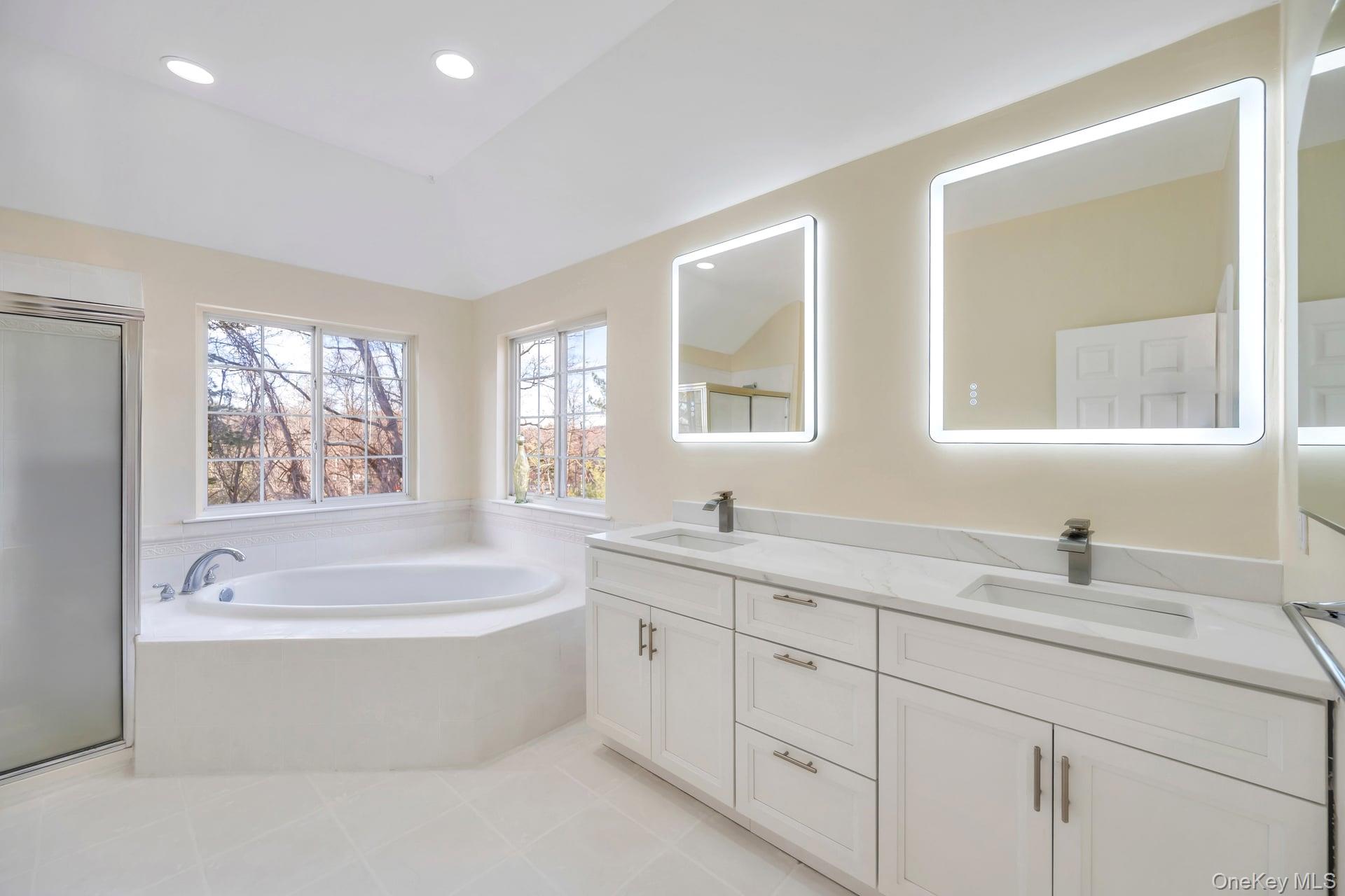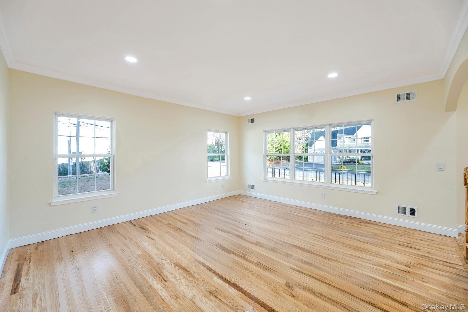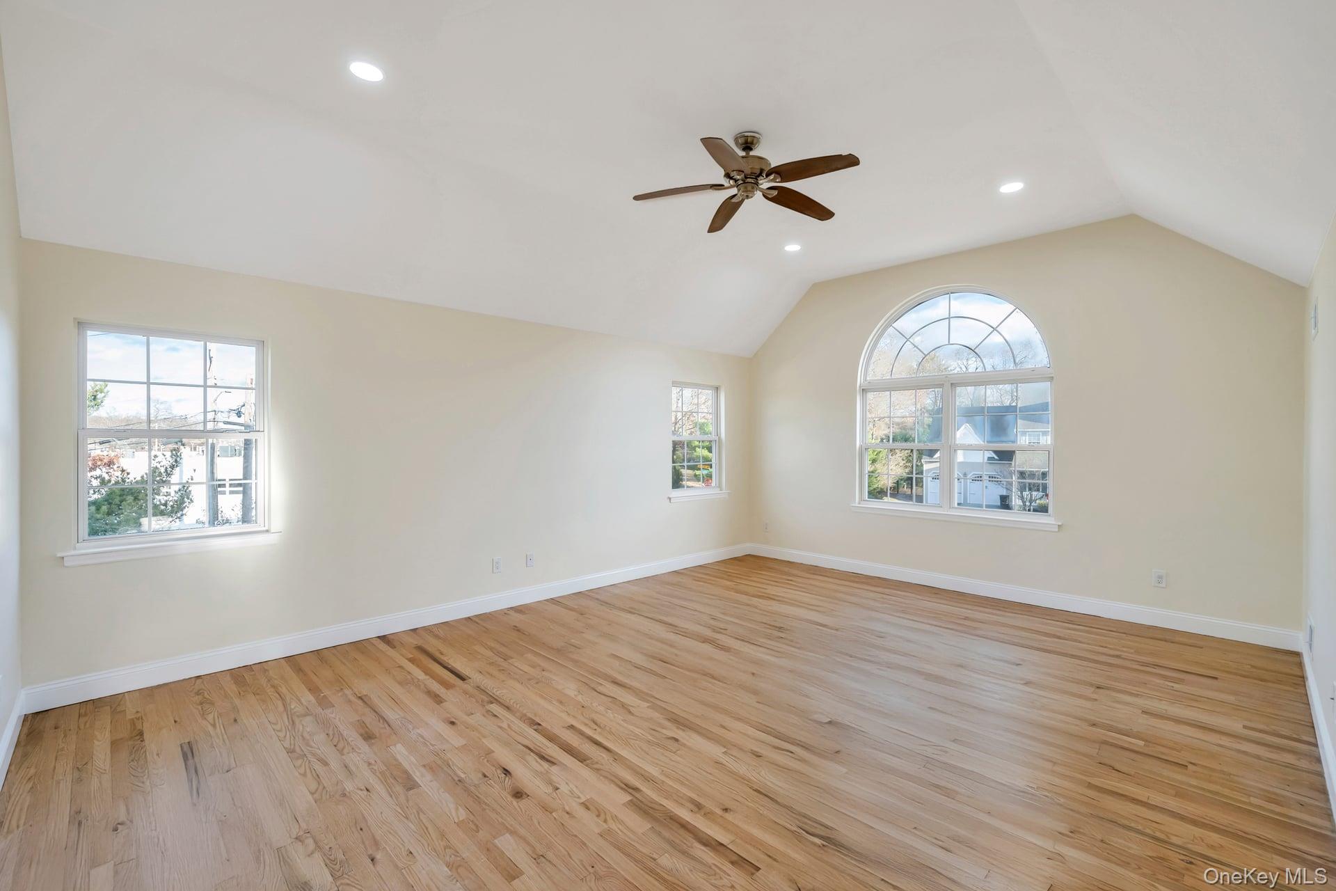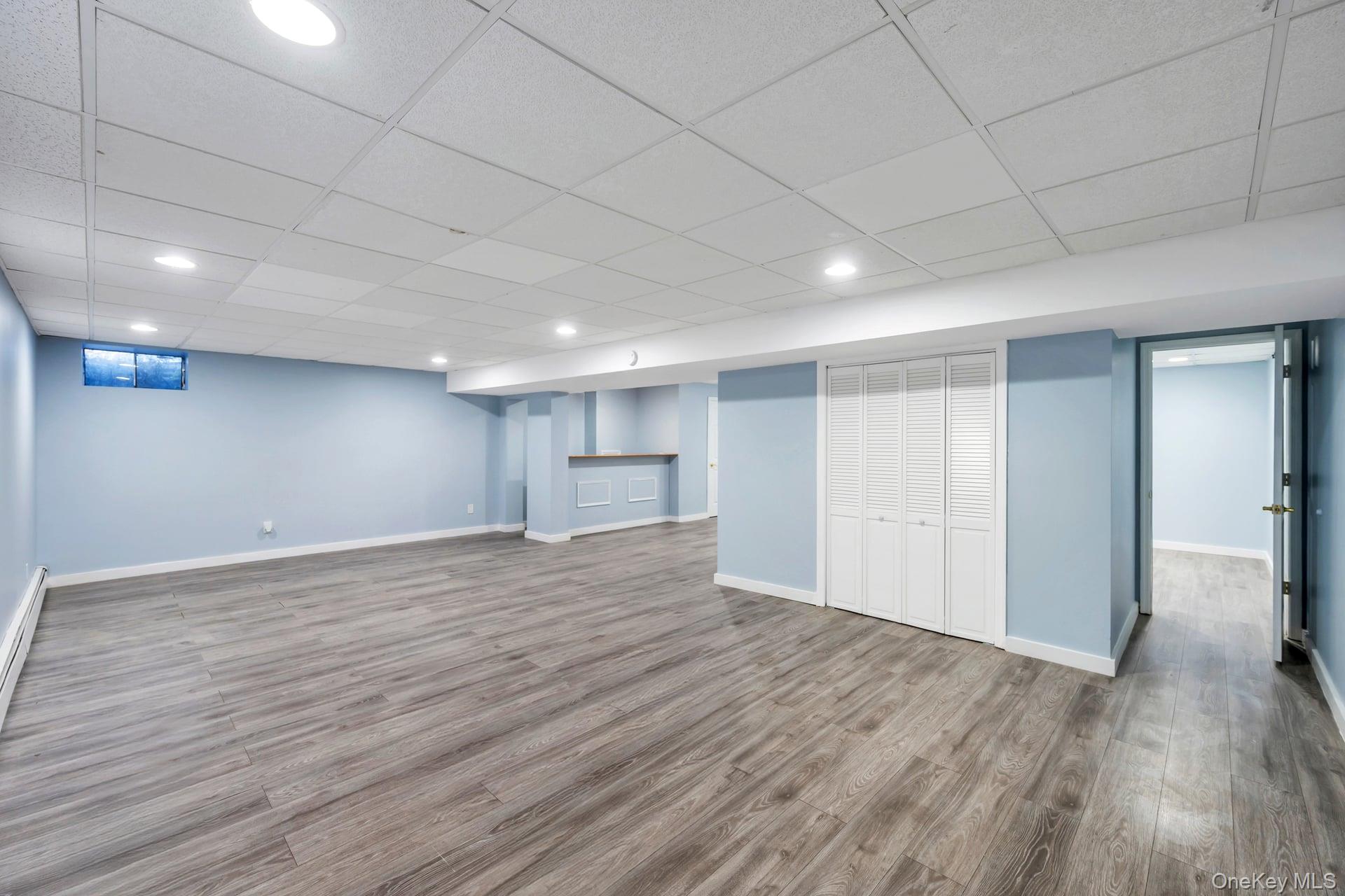 An incredible opportunity to own a magnificent newer-built Colonial tucked away on a quiet cul-de-sac in the highly desirable Smithtown School District, offering the perfect blend of luxury, scale, and lifestyle, highlighted by two brand new Central AC units, a brand new gas boiler and connected to public sewer for total peace of mind; this home commands attention from the moment you arrive with an expanded blacktop driveway framed by Belgium block, additional side parking ideal for a boat or RV, professionally manicured and landscaped grounds, white PVC fencing, stone accents, partial front facade, pristine vinyl siding, and a stunning covered front porch finished with Trex decking, all set on an oversized corner lot that opens to a true resort-style backyard featuring an inground swimming pool with a brand new liner installed in August, an expansive deck built for entertaining, and a rollout awning perfect for summer gatherings. As you enter the grand two-story entry you’re immediately welcomed by a bright, open layout where the entire home has been freshly painted, hardwood floors have been beautifully refinished, recessed lighting and custom moldings elevate every space, and the show-stopping chef’s kitchen anchors the home with white cabinetry accented by gold hardware, black tile backsplash, granite countertops, stainless steel appliances, gas cooking, an LG smart refrigerator with water and ice, an oversized center island crowned by a gold glass chandelier, and a French slider that flows effortlessly to the backyard and into the dramatic den and great room showcasing soaring vaulted ceilings, a wood-burning fireplace with custom tile and white wood mantle, and walls of windows that flood the space with natural light; the first floor is completed by a formal living room with crown molding and recessed lighting, a spacious dining room designed for gatherings, a striking powder room with white vanity, quartz countertop, and smart mirror, plus a functional mudroom with LG front-loading washer and dryer and its own entrance; upstairs, an elegant open catwalk overlooks the den and great room below, creating architectural drama and visual connection, while the enormous primary suite stands on its own with vaulted ceilings, floor-to-ceiling windows, recessed lighting, beautiful hardwood floors, two oversized walk-in closets, and a spa-like primary bath featuring vaulted ceilings, soaking tub, glass shower, brand new double white vanity, smart mirrors, and new flooring, complemented by additional generously sized bedrooms with ceiling fans and abundant closet space and a fully renovated hallway bath offering spa lighting, a tub with glass shower enclosure, new blue vanity, quartz countertop, and smart mirror; the finished basement completes the home with high ceilings, recessed lighting, a freshly painted bar with wood countertops, a modern spa-style half bath with floor-to-ceiling tile, and extensive storage throughout, making this a rare luxury offering that delivers space, design, and lifestyle at every turn.