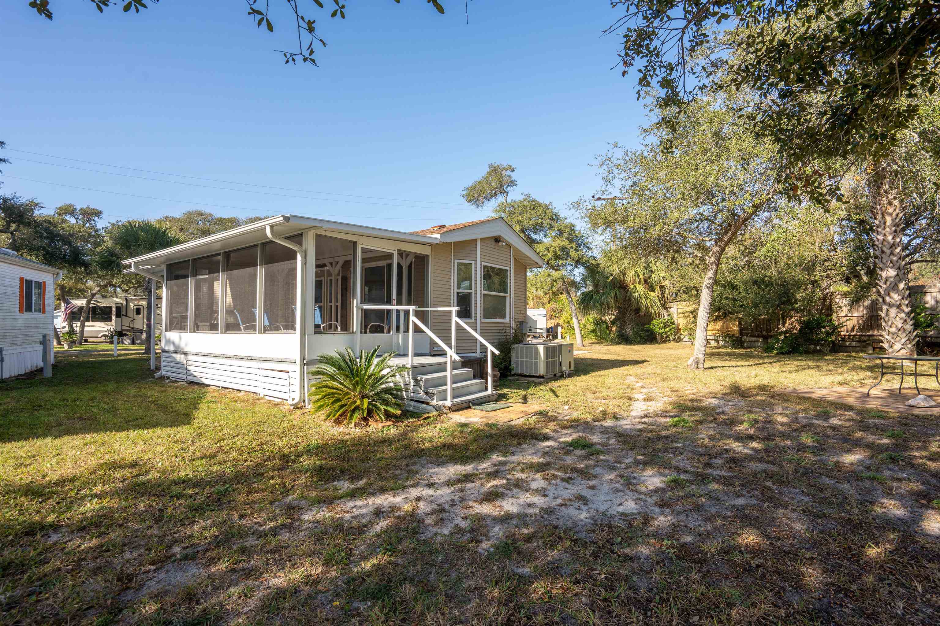 Park Model with 99-year land lease available now in Ocean Grove RV Park! The lease runs through 2107. Located on Site F100, this home is ideally situated just a short walk to the community restaurant and pool. Built in 2008, this park model offers one bedroom, one full bath, and a comfortable kitchen and living area. Enjoy peaceful pond views from the screened porch just off the living room—perfect for relaxing and enjoying the outdoors. Ocean Grove offers exceptional amenities including directIntracoastal access with a private dock and boat ramp, community pool, on-site bar and restaurant, 24-hour gated entry, laundry facilities, and a short stroll to the beach. With no rental restrictions, this property also stands out as an excellent investment for short-term or long-term income.