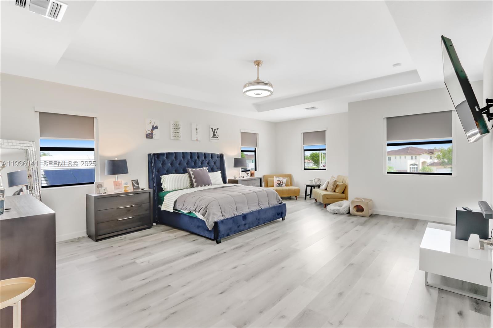 This stunning 2022-built masterpiece boasts 5 expansive bedrooms and 3 bathrooms, 3, 252 square feet of living space. Nestled on a generous almost 10, 000 square foot lot, with a two car garage. One bedroom & full bathroom is conveniently located downstairs. Kitchen features sleek quartz countertops and top-of-the-line stainless steel appliances, Italian porcelain floors downstairs, and wood tile floors upstairs. Immense yard with room to build your dream pool, and park your toys, boat and RV. Enjoy delicious fruit trees like, mango, avocado, lychee and Logan. With every detail meticulously designed and move-in ready, your dream home is just a doorstep away! Community has pool & gym ! Contact listing agents for VIDEO TOUR!