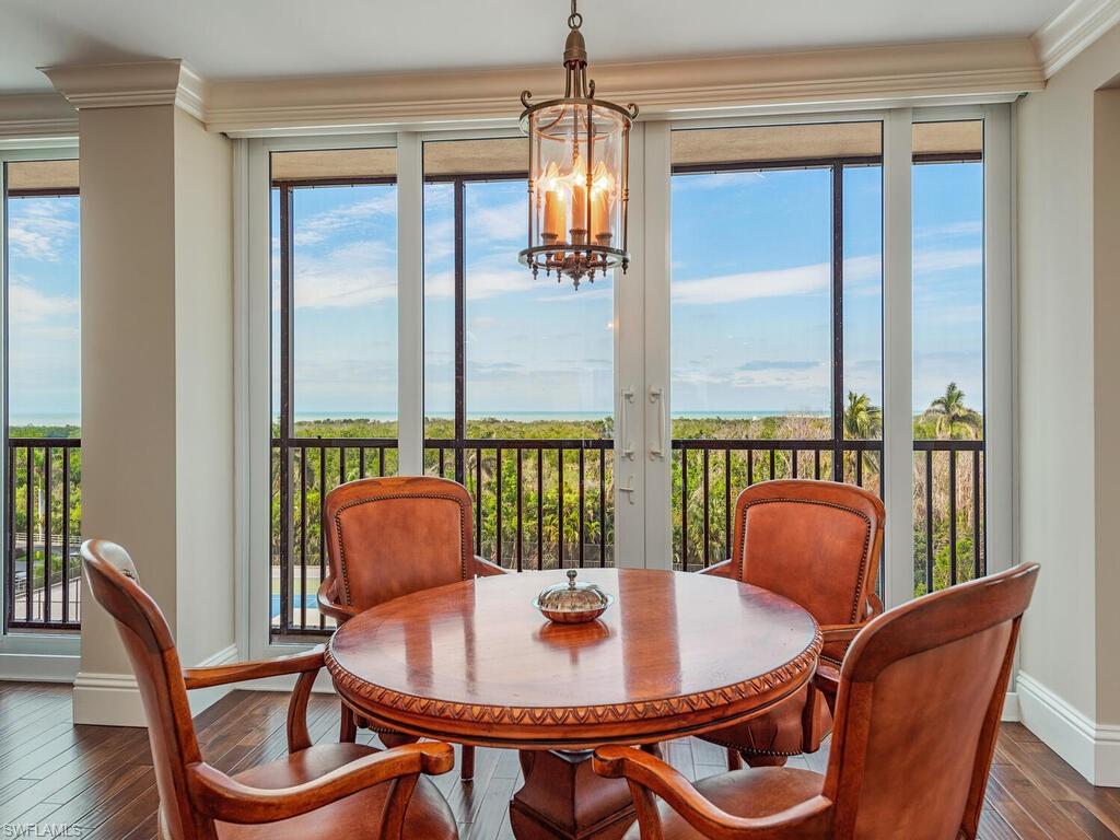 This spacious and beautifully renovated residence offers comfort and privacy, with over 3, 100 air-conditioned square feet of living space. A pleasant surprise to see that the 4th floor is a 6th FLOOR VIEW, due to the unique ELEVATED design of the building. Bask in breathtaking SUNRISE and SUNSET GULF views from every room, thanks to west, north, and east exposures. The heart of the home is the true GOURMET kitchen equipped with a Sub-Zero refrigerator, induction cooktop, built-in wine/beverage refrigerators and exquisitely HANDCRAFTED cabinetry. Warm wood flooring flows throughout the main living areas, which include three generously sized bedrooms with generous closet and storage space, a versatile den, and a cozy family/TV room. The home is outfitted with ALL IMPACT-RATED FLOOR to CEILING SLIDERS and WINDOWS for safety and peace of mind. The Stratford is Boutique Tower with only 81 residences, tucked away off the main thoroughfare, but with IMMEDIATE BERM TO BEACH ACCESS. Celebrated for its sophisticated style and amenities, including a large pool and spa, summer kitchen, fire pit, pickleball and tennis courts, a state-of-the-art fitness facility, and chic social room for gatherings. As a resident of Pelican Bay, you’ll enjoy exclusive DIRECT access to all its premier amenities, including two private BEACHFRONT restaurants and bars, attended beach service, kayaks, paddle boards, 18 Har-Tru tennis courts, Pickleball, an advanced fitness center, and scenic nature trails for walking and biking. Perfectly situated near Artis Naples, Waterside Shops, and Mercato, this residence provides unparalleled convenience to world-class shopping, dining, and entertainment options.