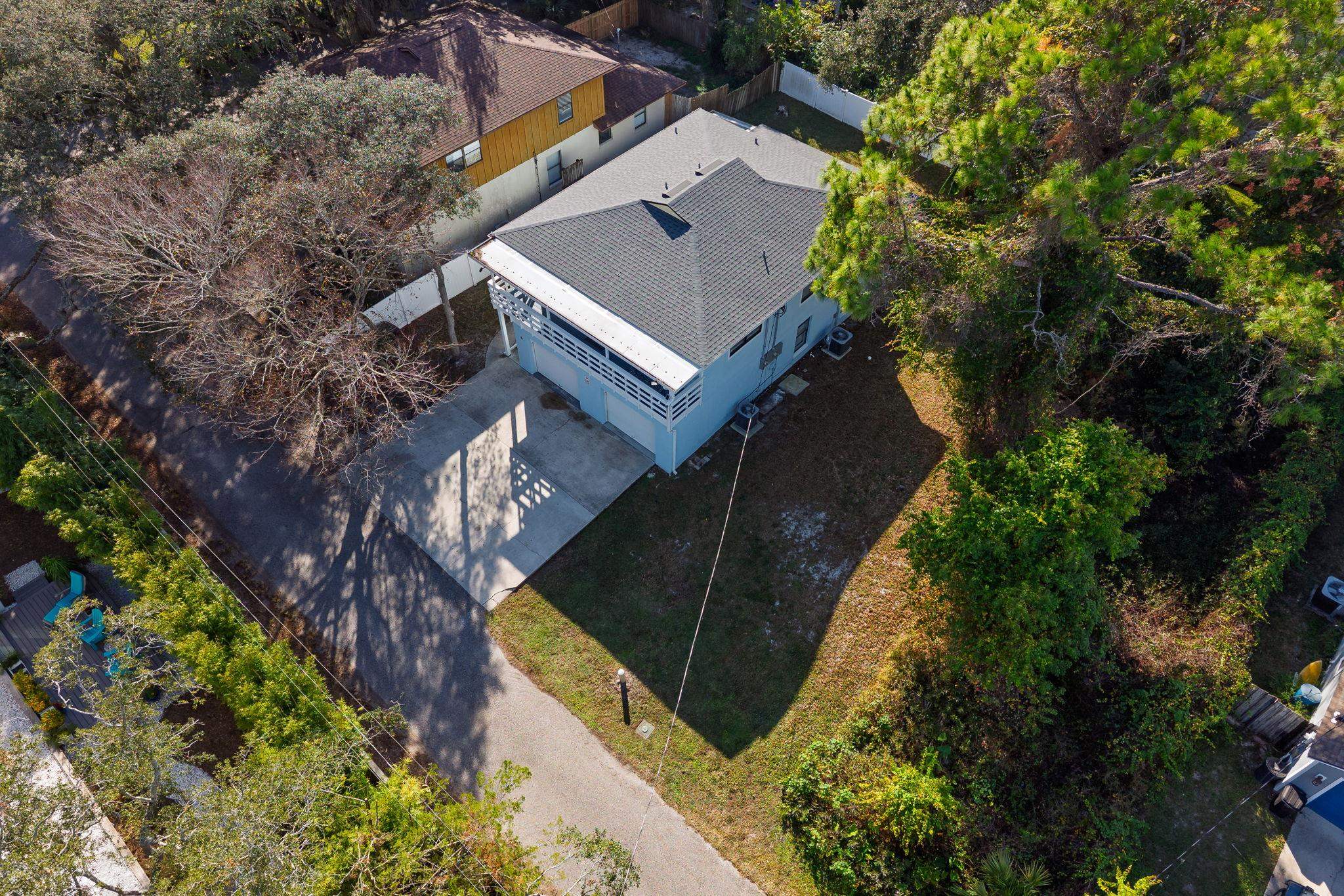 Rare St. Augustine Beach opportunity offering a fully renovated coastal DUPLEX plus an additional sub-dividable lot with the potential to build another home or create immediate equity. Just a short walk to the beach and under 10 minutes to historic downtown, this property features a 3BR/2BA unit upstairs and a 3BR/2BA unit downstairs, each with its own 1-car garage and private washer and dryer. Beautifully refreshed throughout with new Hardie Board siding, new roof, new HVAC systems with Nest thermostats, new electrical panels, repiped plumbing, new water heaters, updated lighting, new interior doors, keyless entries, and new LVP flooring. Both kitchens offer white shaker cabinets, granite countertops, stainless steel appliances, and coastal blue backsplash accents. All bathrooms have been fully updated with new tile, vanities, and fixtures. The downstairs unit has a screened lanai and fenced yard, while the upstairs unit offers a spacious balcony for sunrise views. Property is sold fully furnished and fully stocked for immediate use. Ideal for multigenerational living, snowbird or mid-term rentals (30-day minimum), or for anyone wishing to live in one unit and rent the other while leveraging the extra lot for additional value.